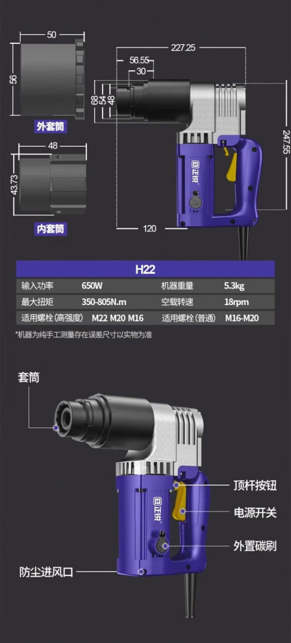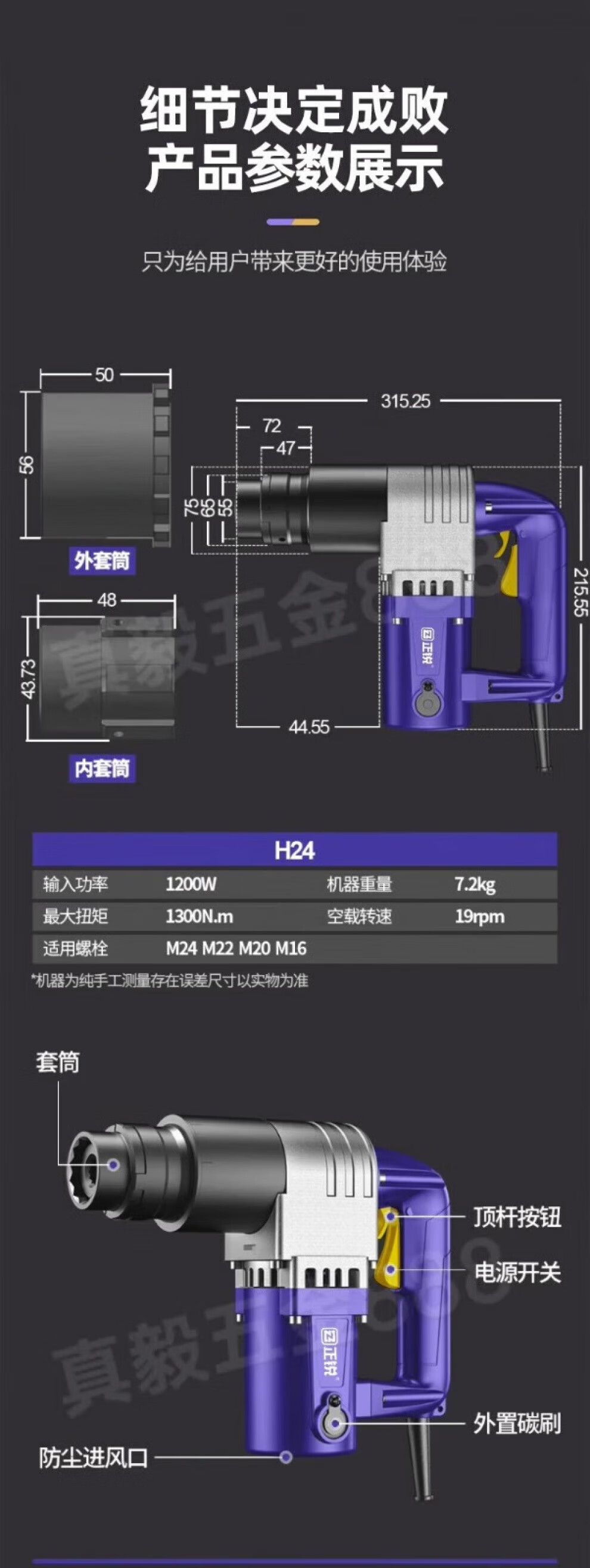 Zhengrui electric torsion shear wrench H22/H24H30 steel structure 10.9 grade high strength plum blossom bolt torsion shear type torsion shear gun H30 with M27/M30 sleeve