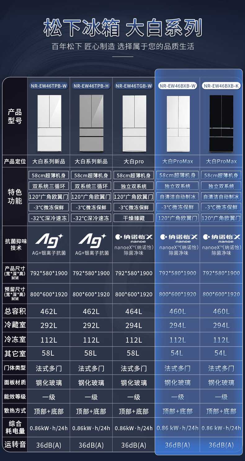 Panasonic 460-liter French-style multi-door five-door refrigerator 58CM deep ultra-thin zero-embedded first-level energy-efficiency dual-cycle dual-system automatic ice making home NR-EW46BXB-W hot model Dabai ProMax