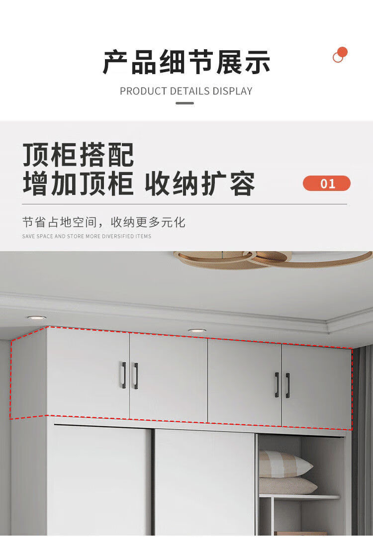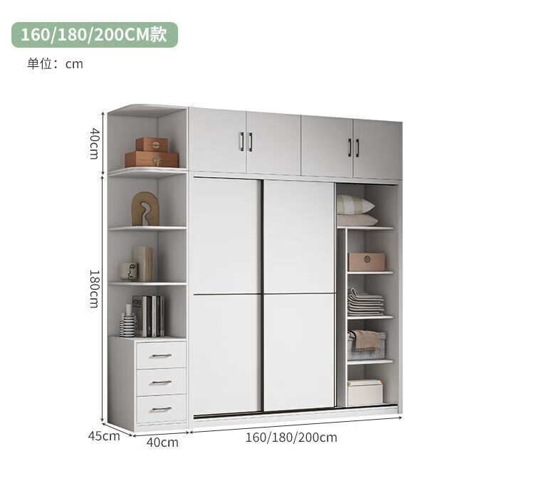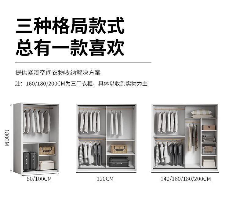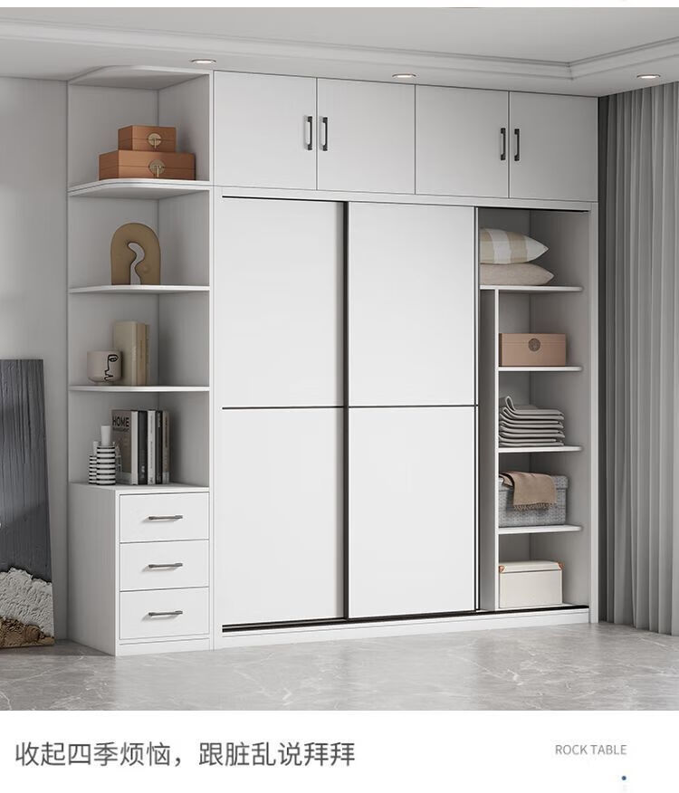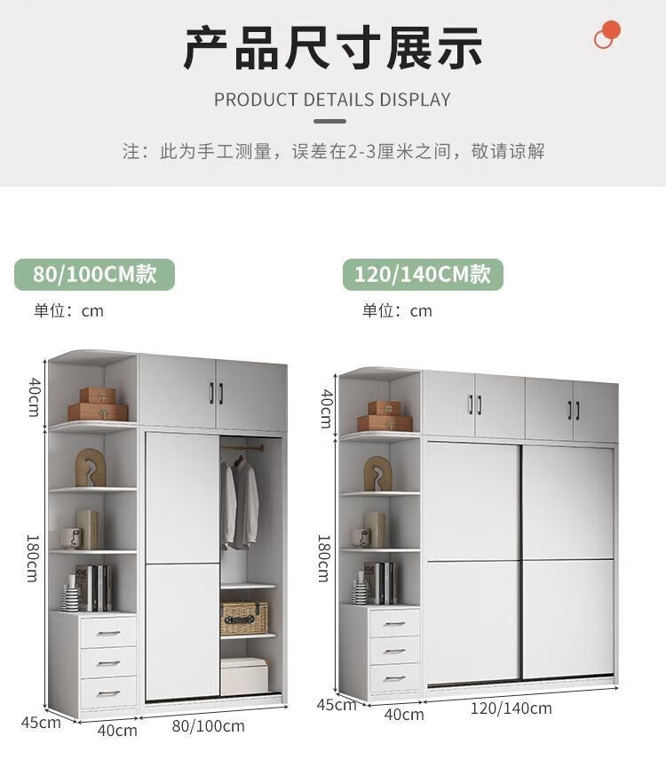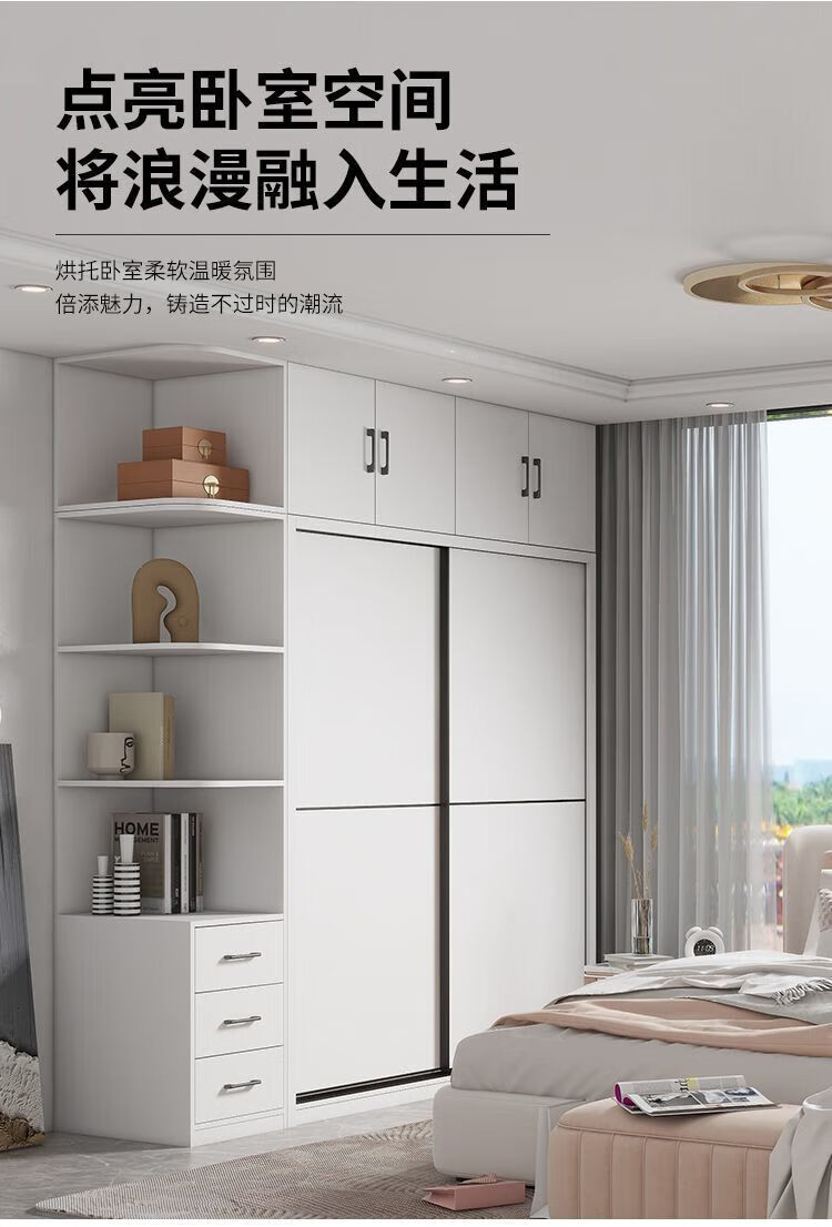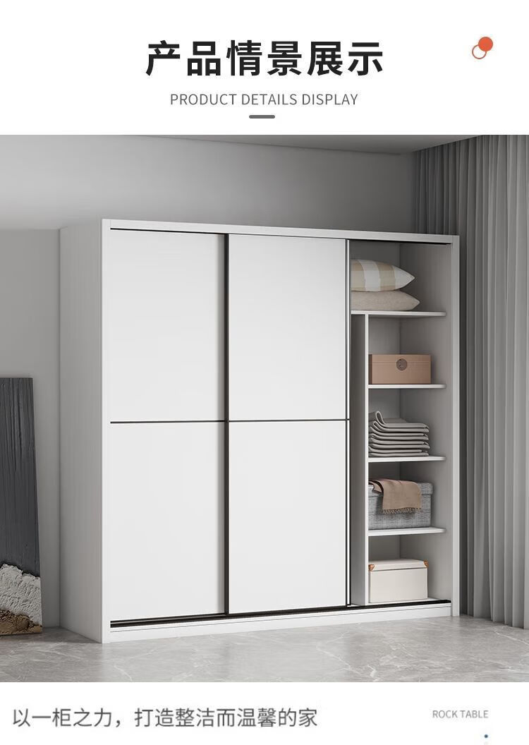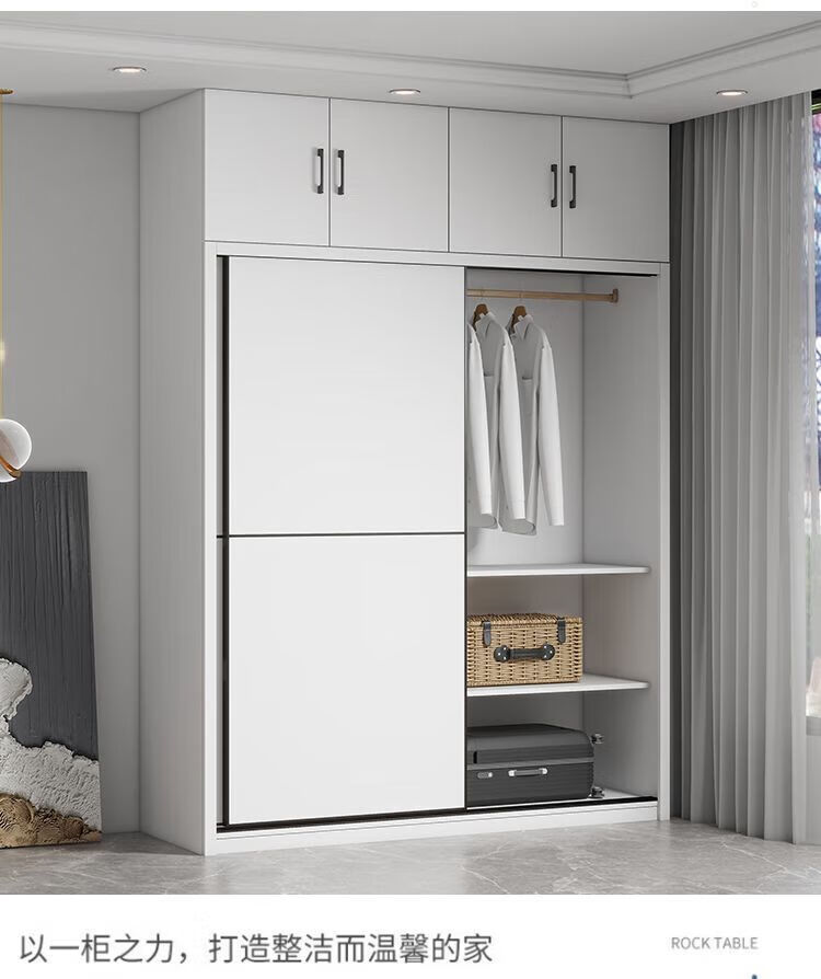 Sliding door wardrobe home bedroom simple assembly rental wardrobe sturdy and durable small wooden children's cabinet warm white 120cm long main cabinet reinforced and thickened assembly self-installation delivered to downstairs