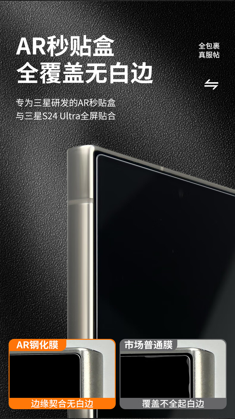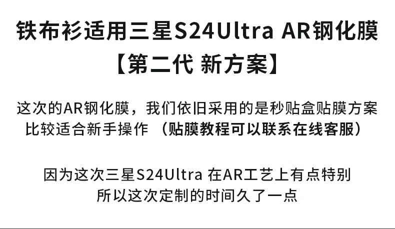 Iron cloth shirt second generation AR second patch box Samsung s24ultraAR tempered film new galaxys24U mobile phone film high definition anti-reflective film S24u film anti-reflective anti-fall fingerprint second generation new technology AR no black edge second patch box model-shoot one and two Samsung Galaxy S24ultra