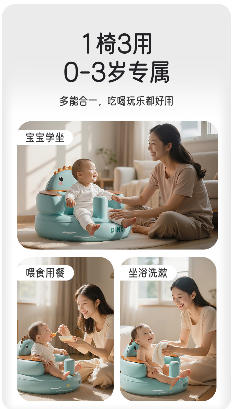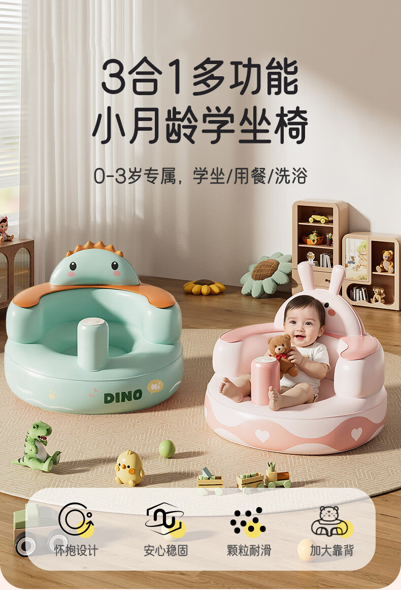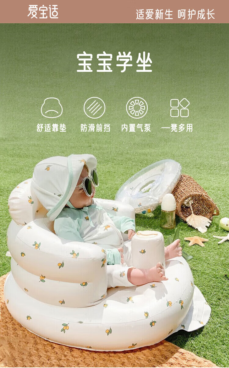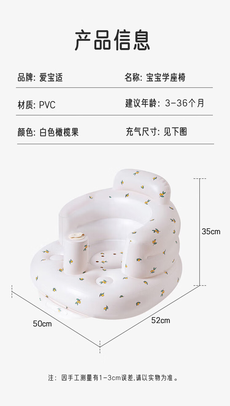 Aibo learning chair, baby learning chair, dining chair, baby inflatable learning seat sofa, olive fruit built-in air pump, double layer with enlarged backrest