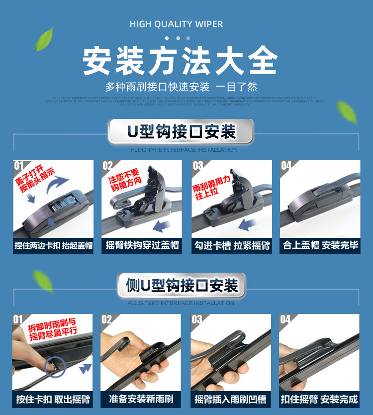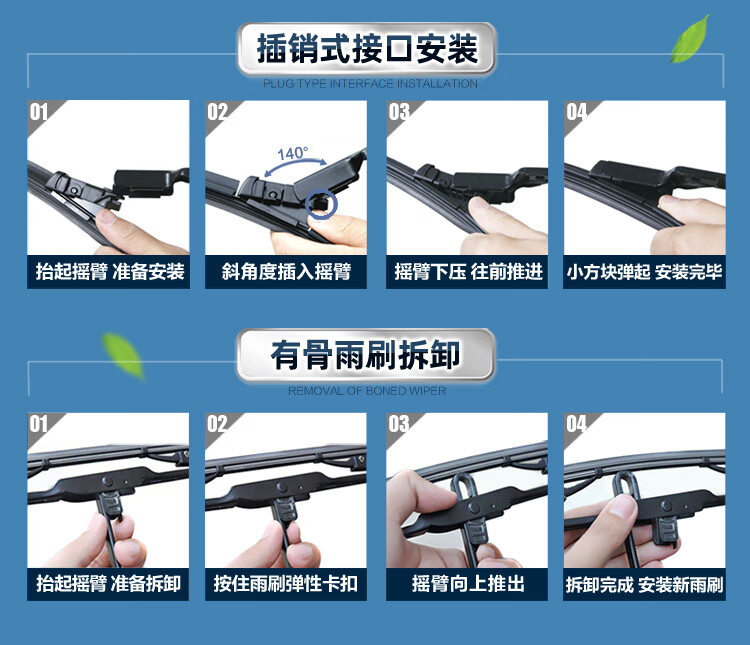 Aoye boneless wipers, one pair for front windows, suitable for 99% of car models, suitable for 99% of car models - leave a message for model year, one pair