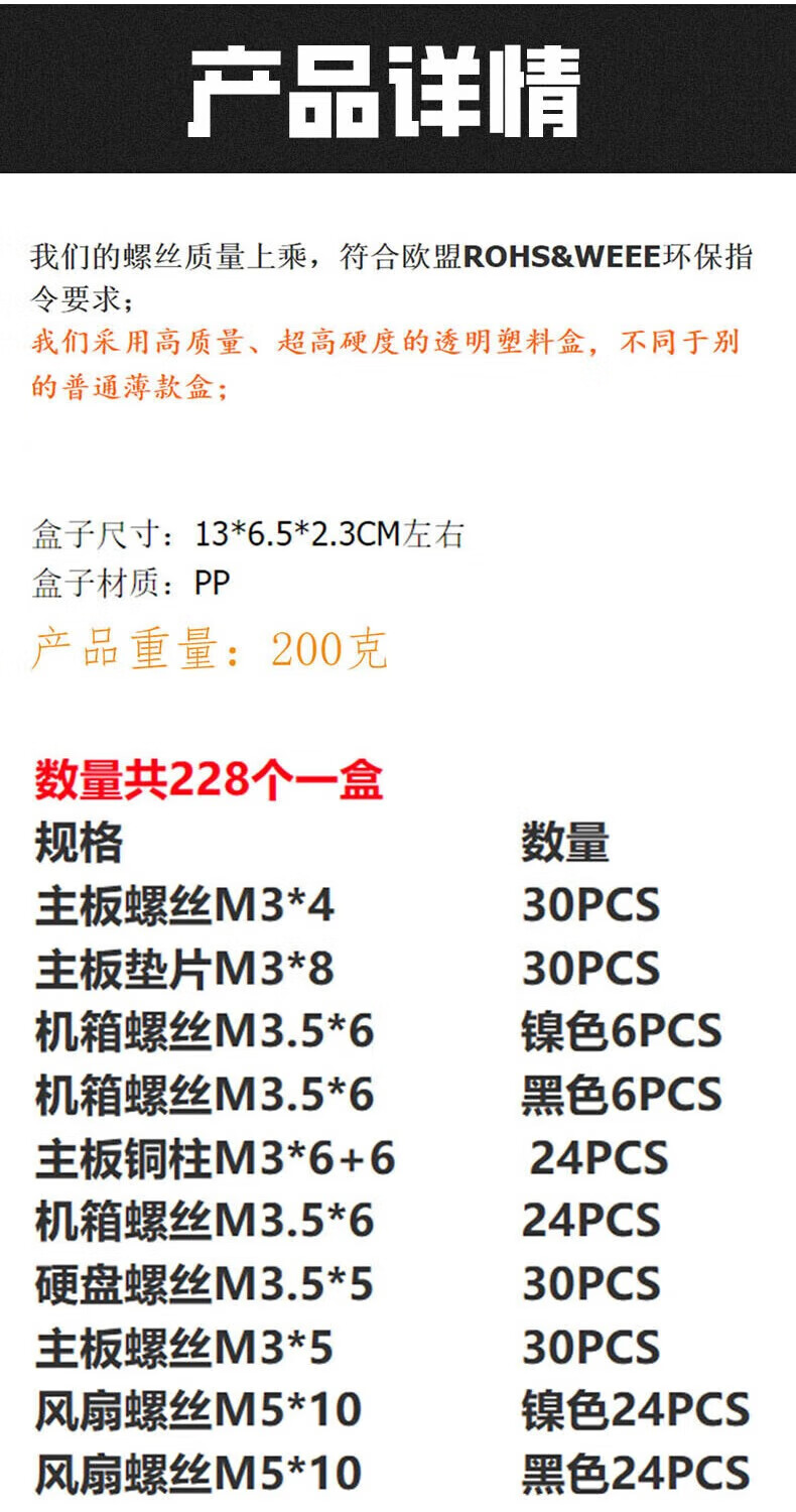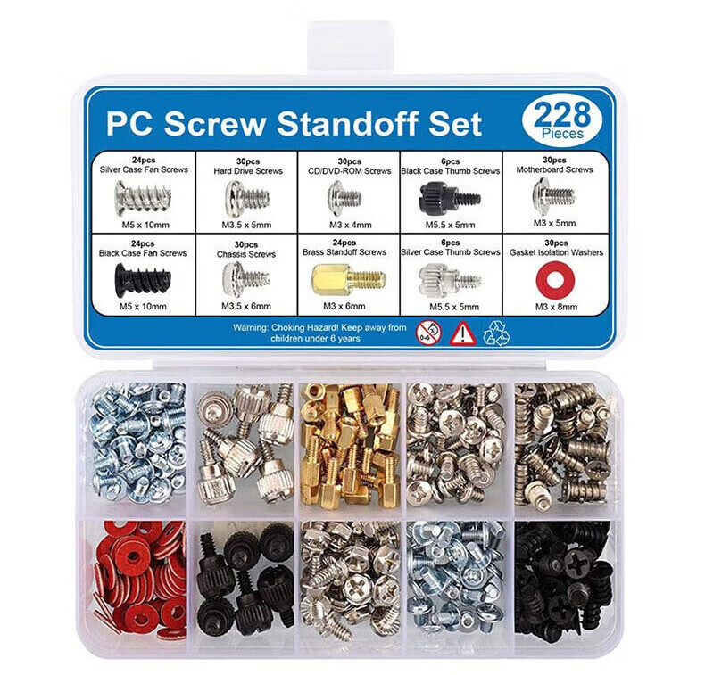 Janes Desktop Computer Host Installation Screw Set DIY Chassis Motherboard Optical Drive Mechanical Hard Drive Power Supply Fan Screw Host Screw Set 228PCS Desktop Computer Laptop Installation Repair Screw Kit