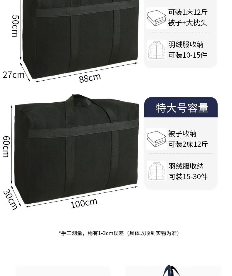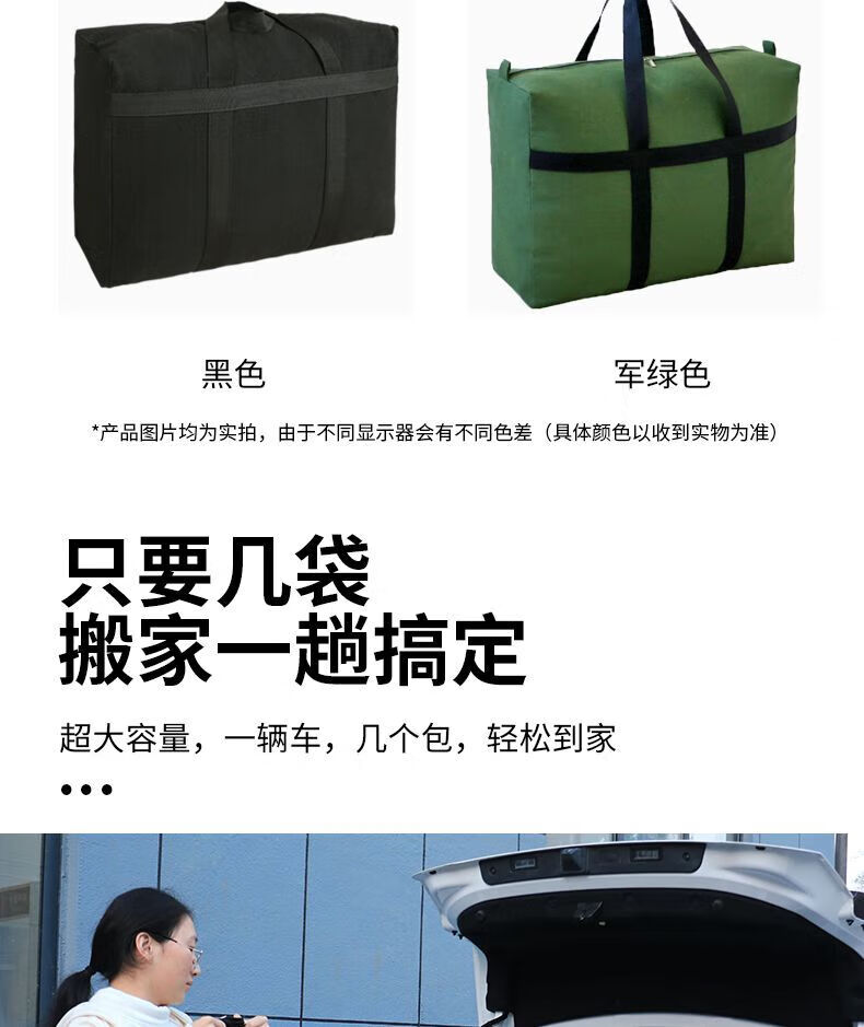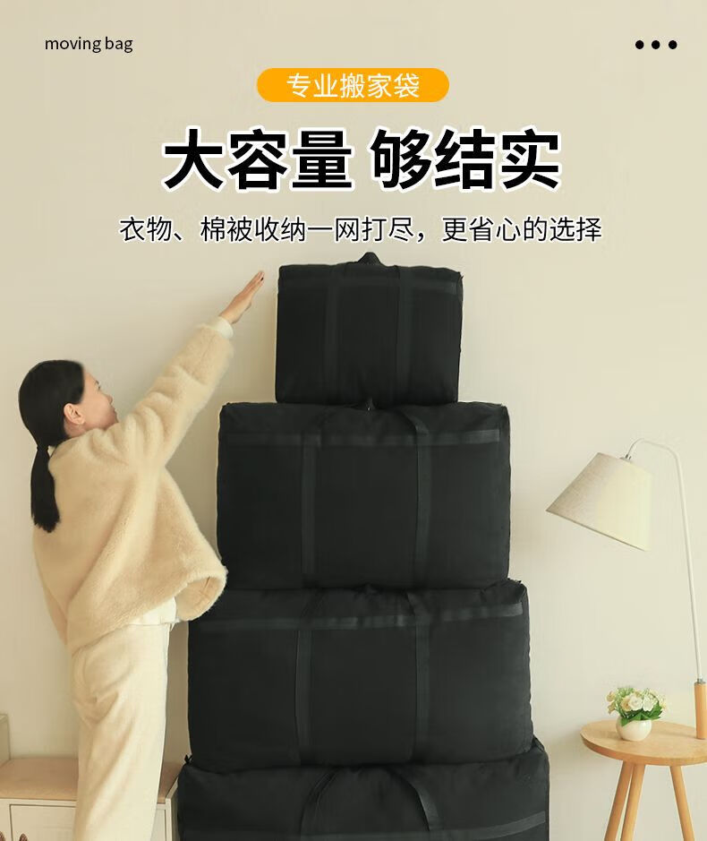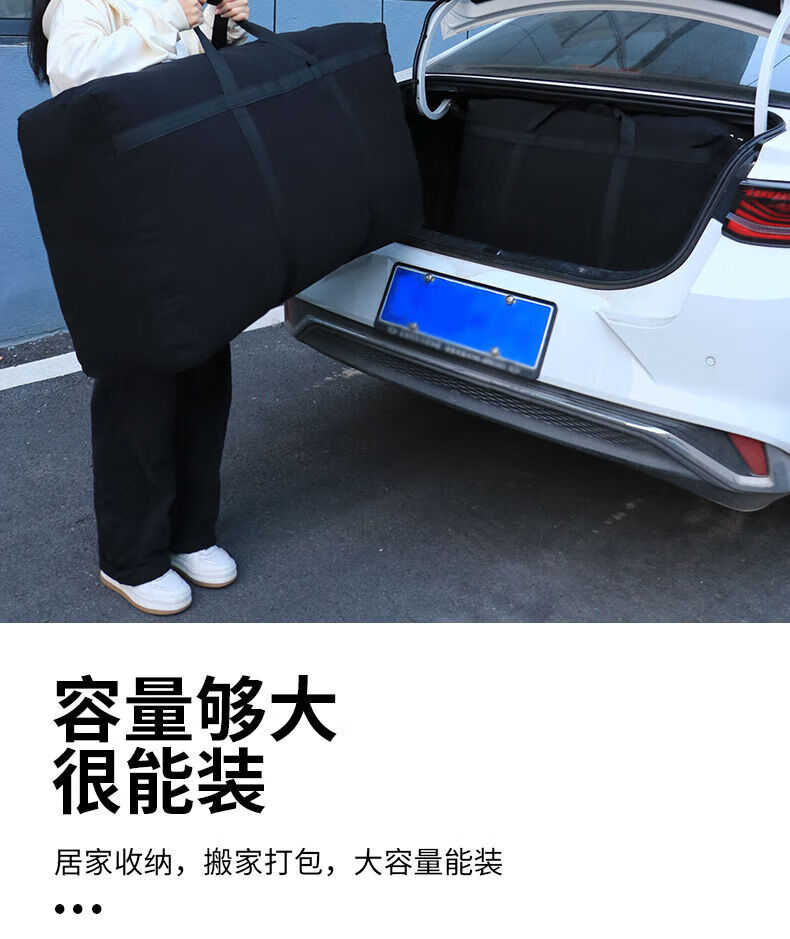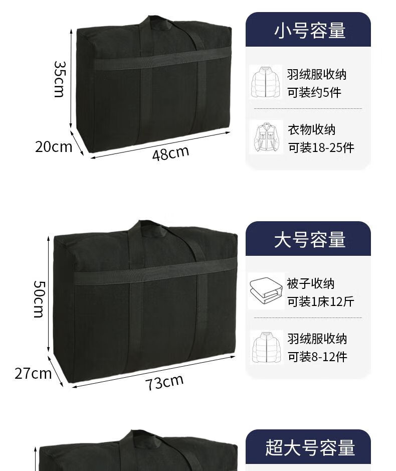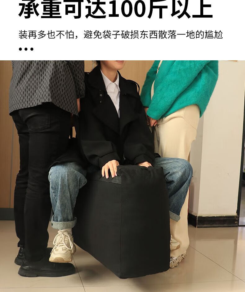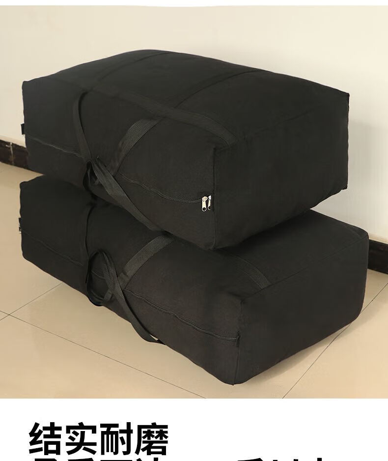 Large-capacity canvas bag, thickened clothes and bedding storage bag, moving packing bag, canvas luggage bag, durable storage bag, black reinforced large size 73*50*27cm