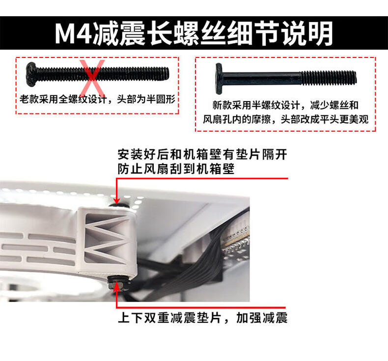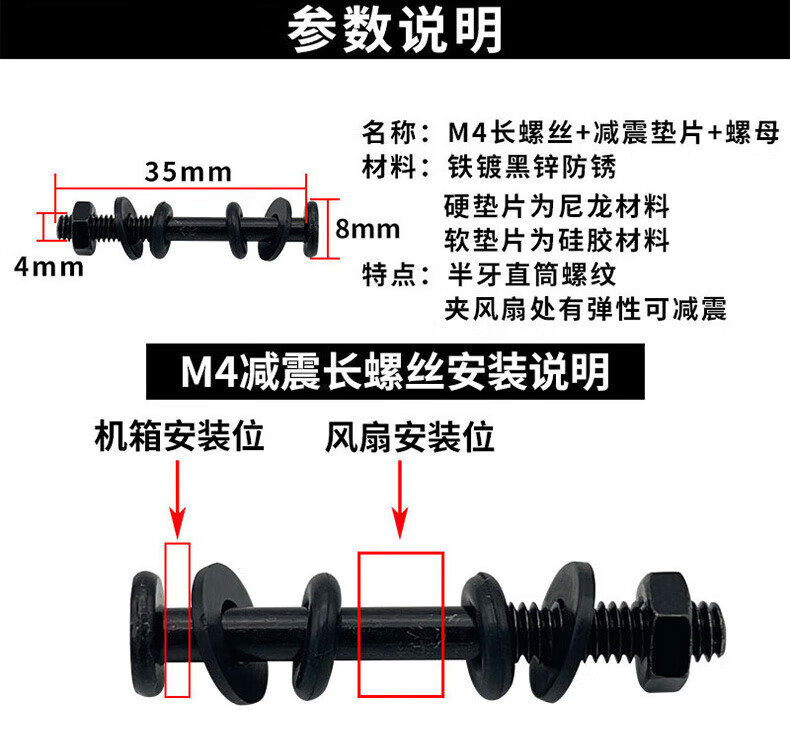 Janes computer case fan m4 long screw with nut suitable for cooling exhaust fan installation extended fixing screw M4 long screw + shock absorber + nut 8 sets