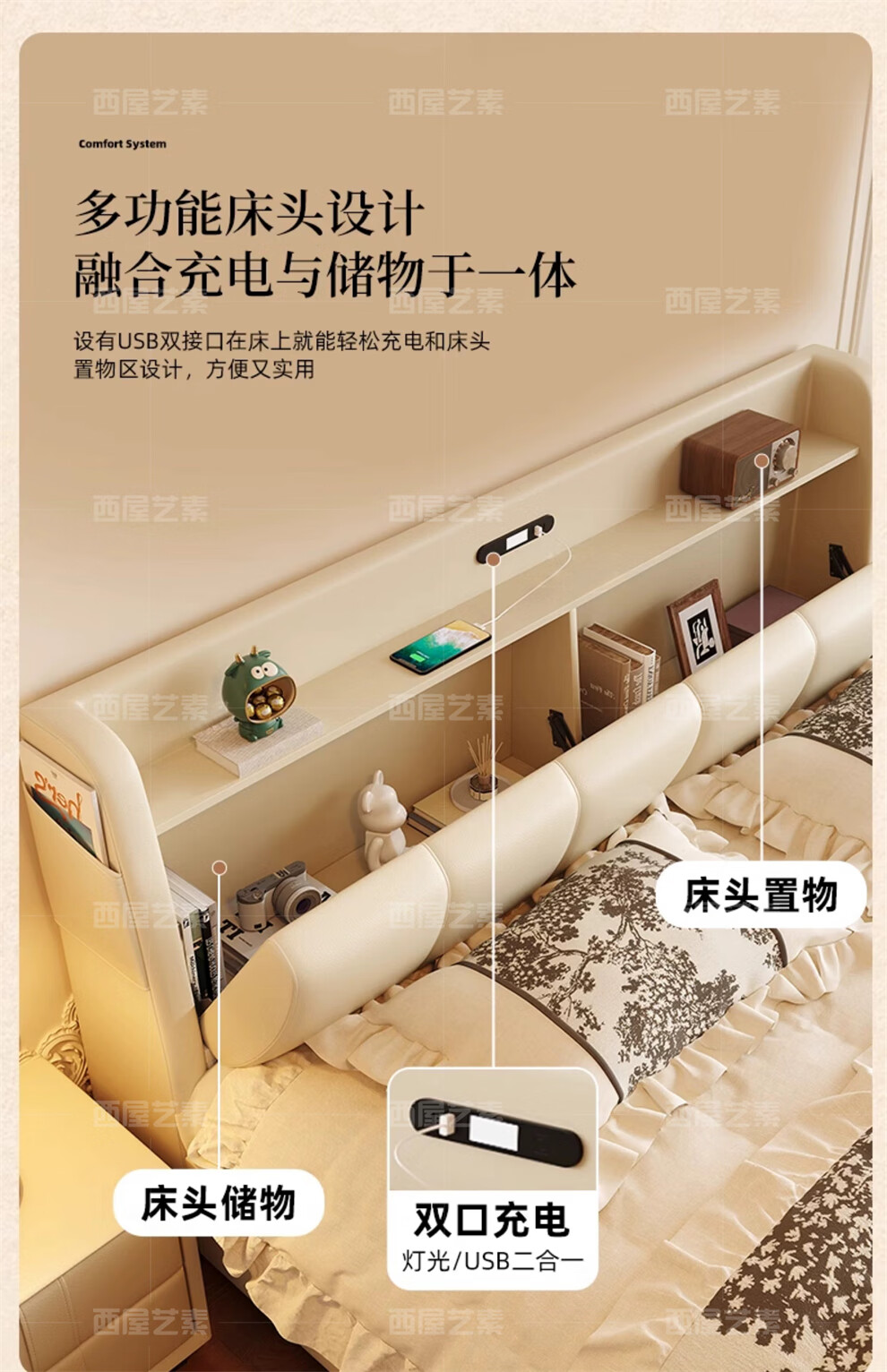 Westinghouse Artisan bedside storage rechargeable cream-style master bedroom king-size double bed 1.8m