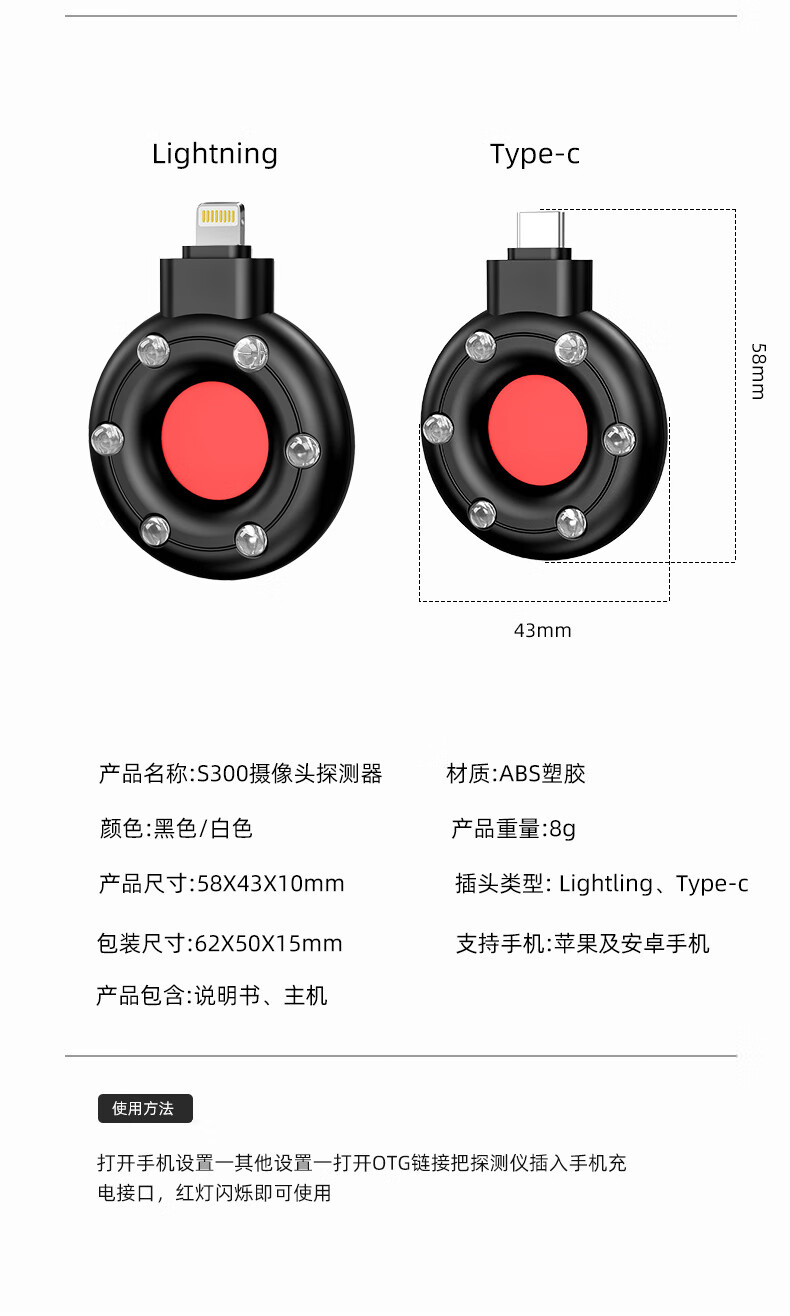 Shixin multifunctional infrared detector camera smart detector hotel anti-peep artifact anti-eavesdropping anti-candid camera K88 special probe hole design 3D smart chip 360