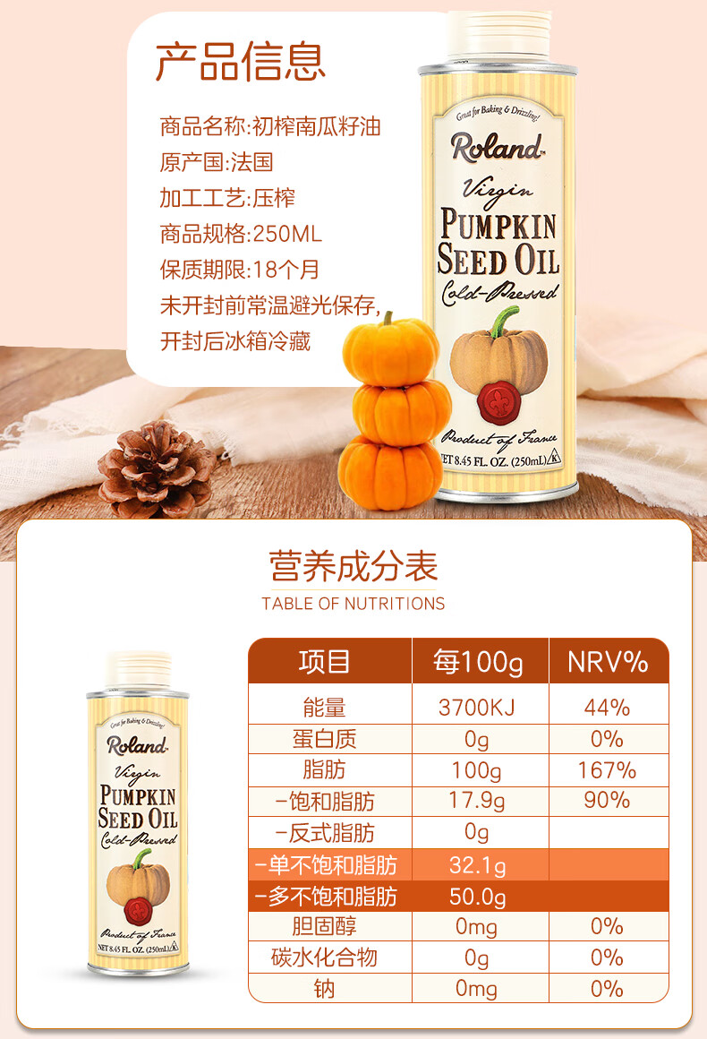 Rolande virgin pumpkin seed oil 250ml baby hot frying oil children's edible oil vegetable oil