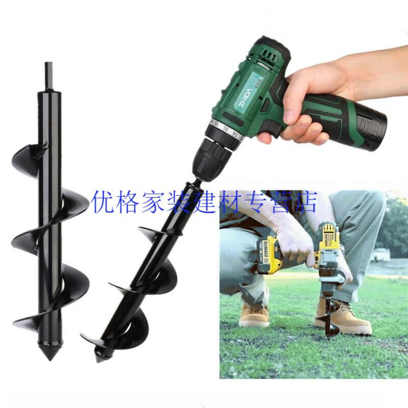 Longying ground drill supporting rechargeable electric hand drill auger drill bit garden vegetable planting flower soil drilling machine ground drilling drill bit diameter 3 cm x length 55 cm double-leaf drill bit