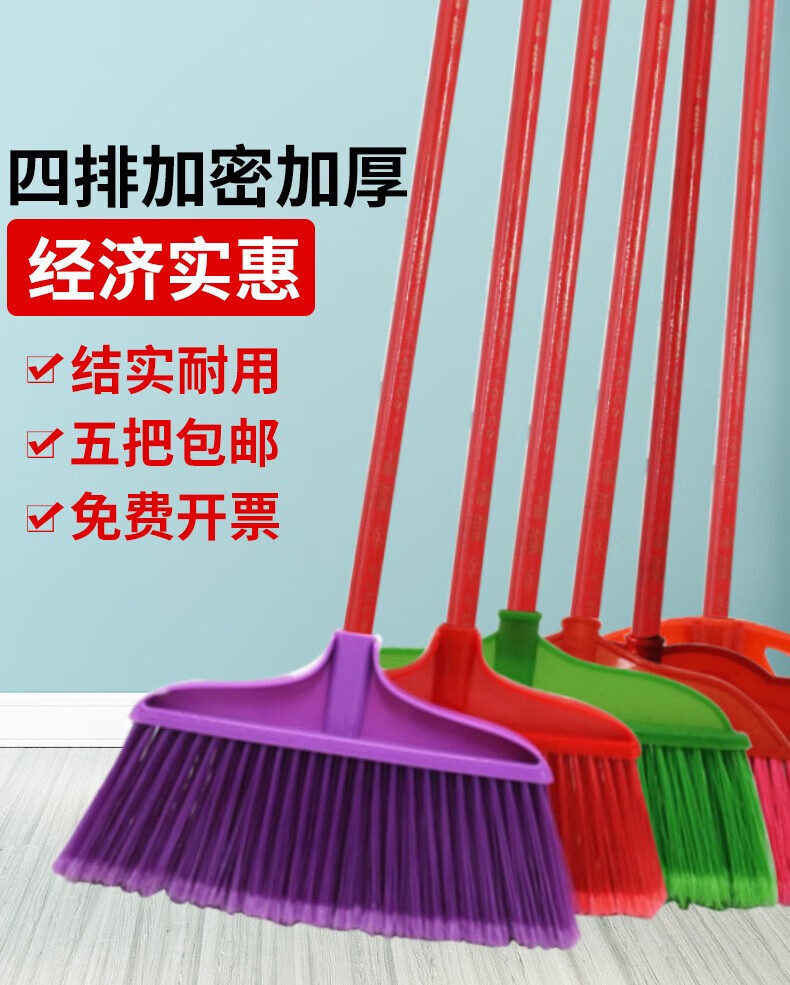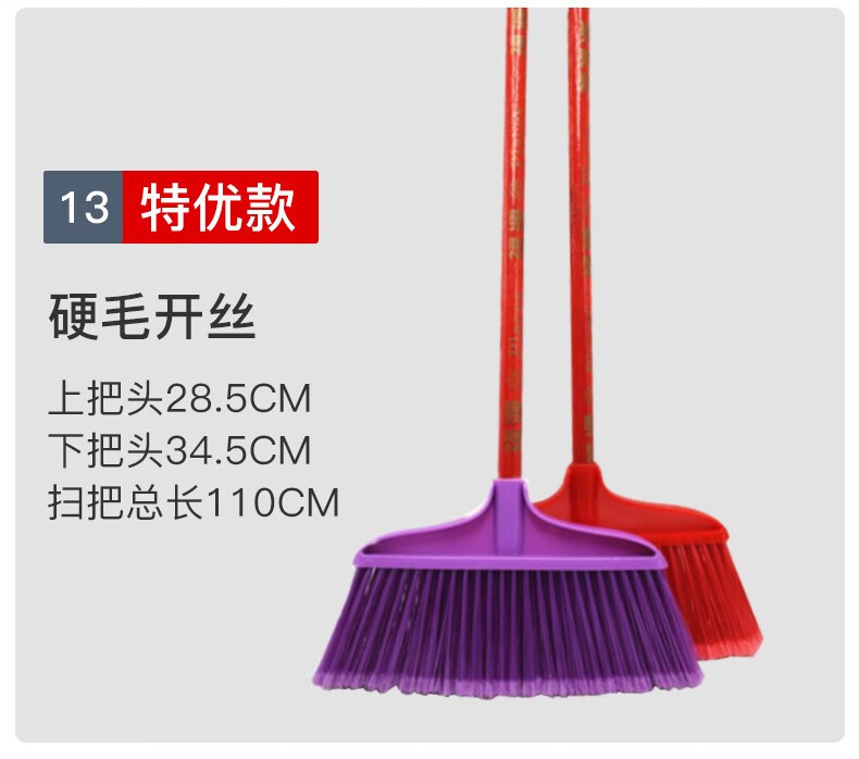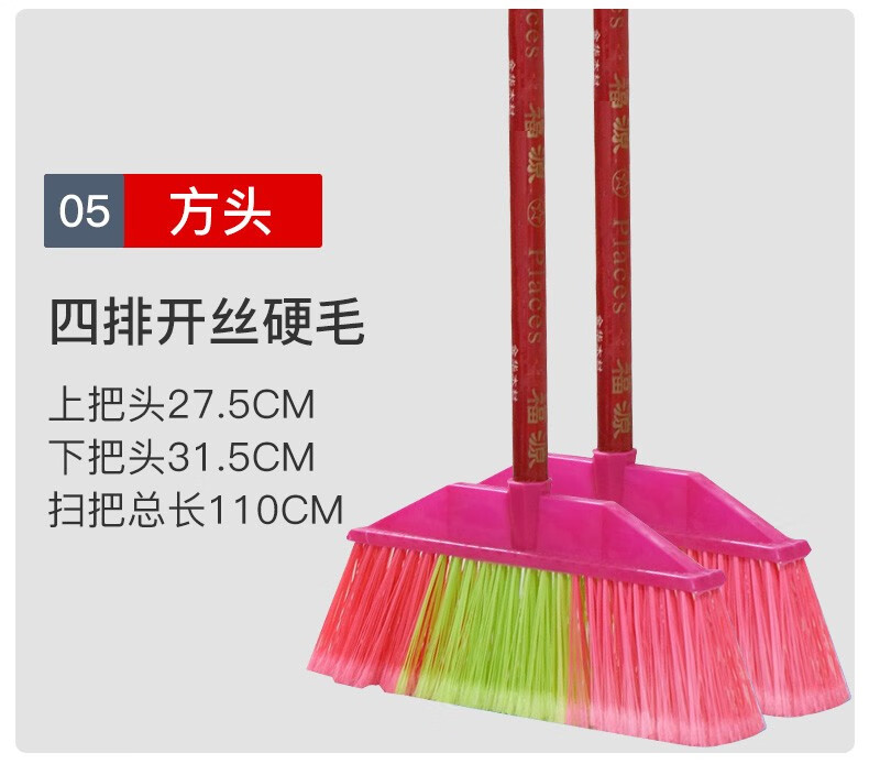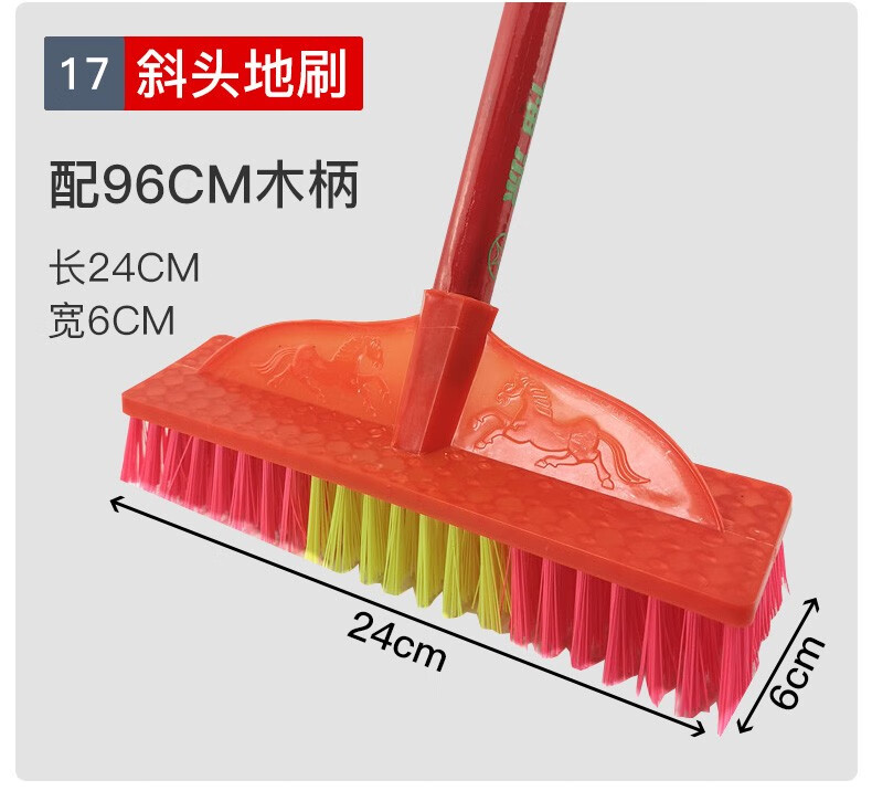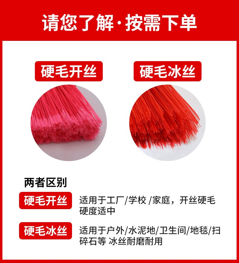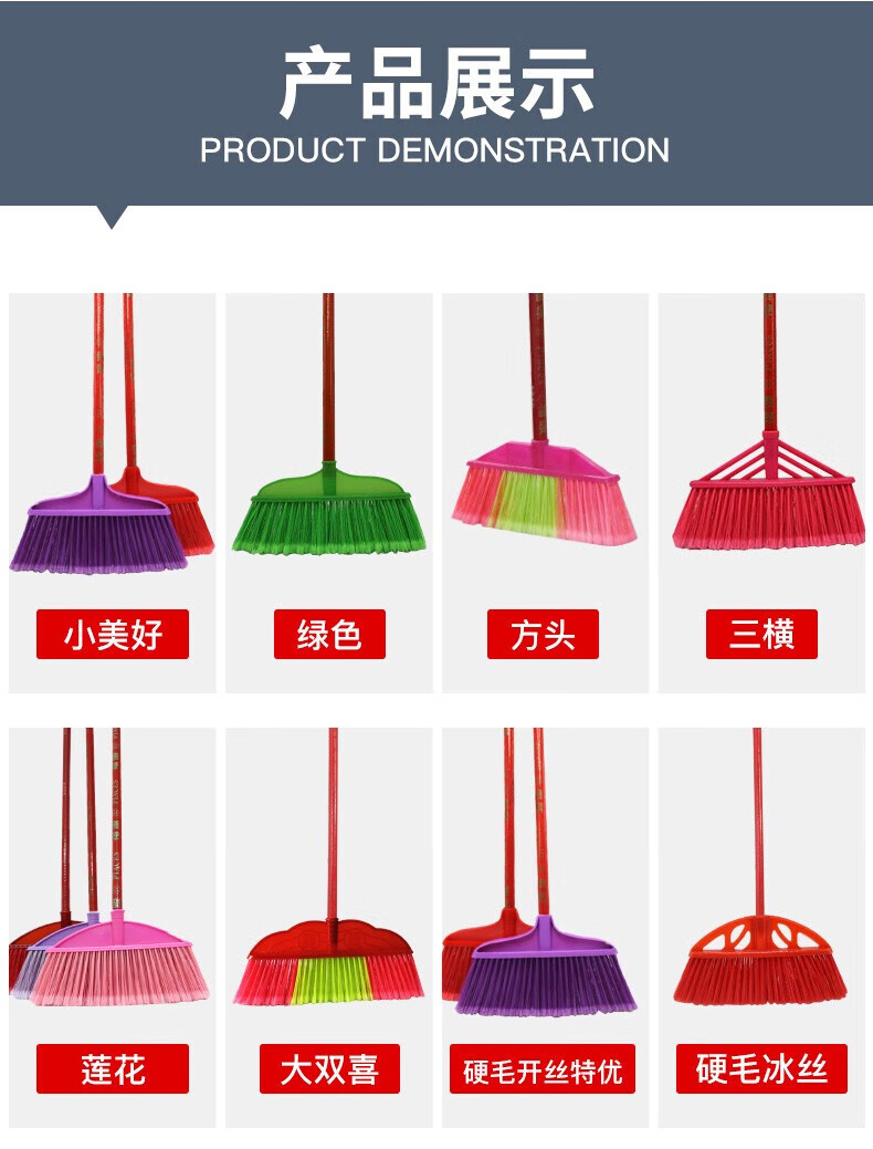 Plastic broom, hard-bristled broom, factory broom, single cleaning tool, wooden handle, workshop floor brush with wooden handle, random color, hard-bristled silk (big beautiful) with wooden handle