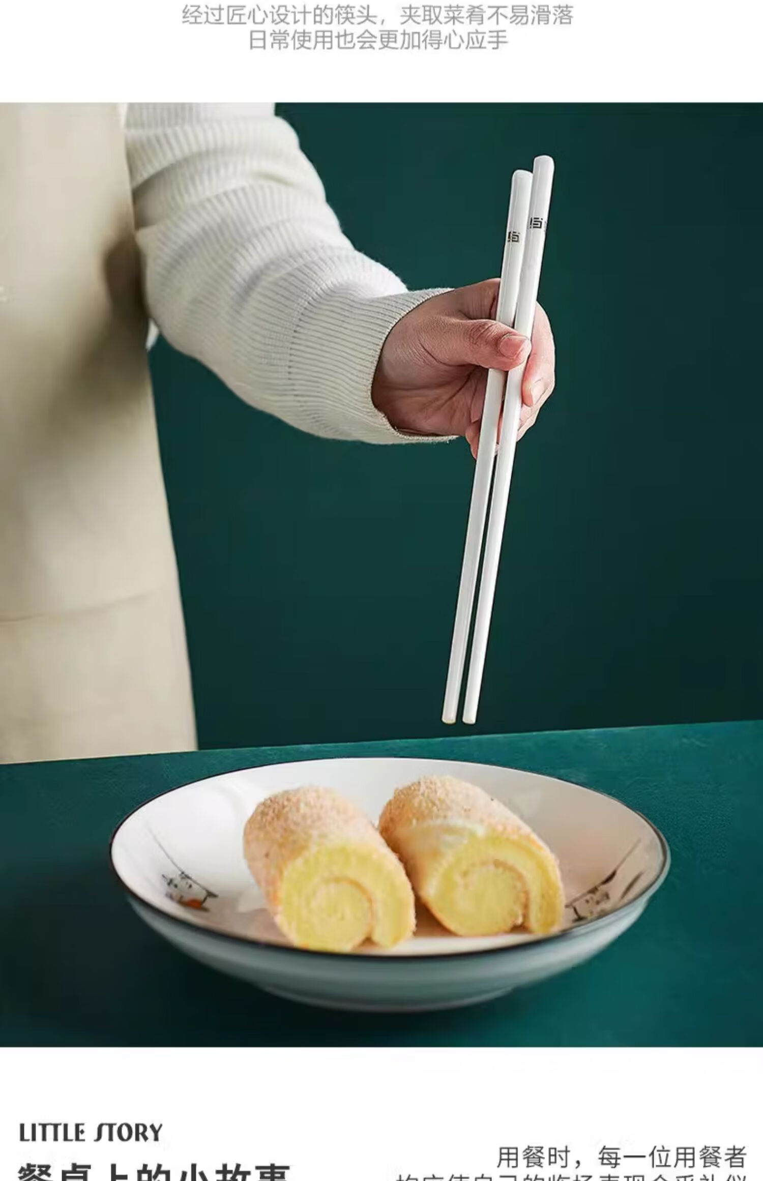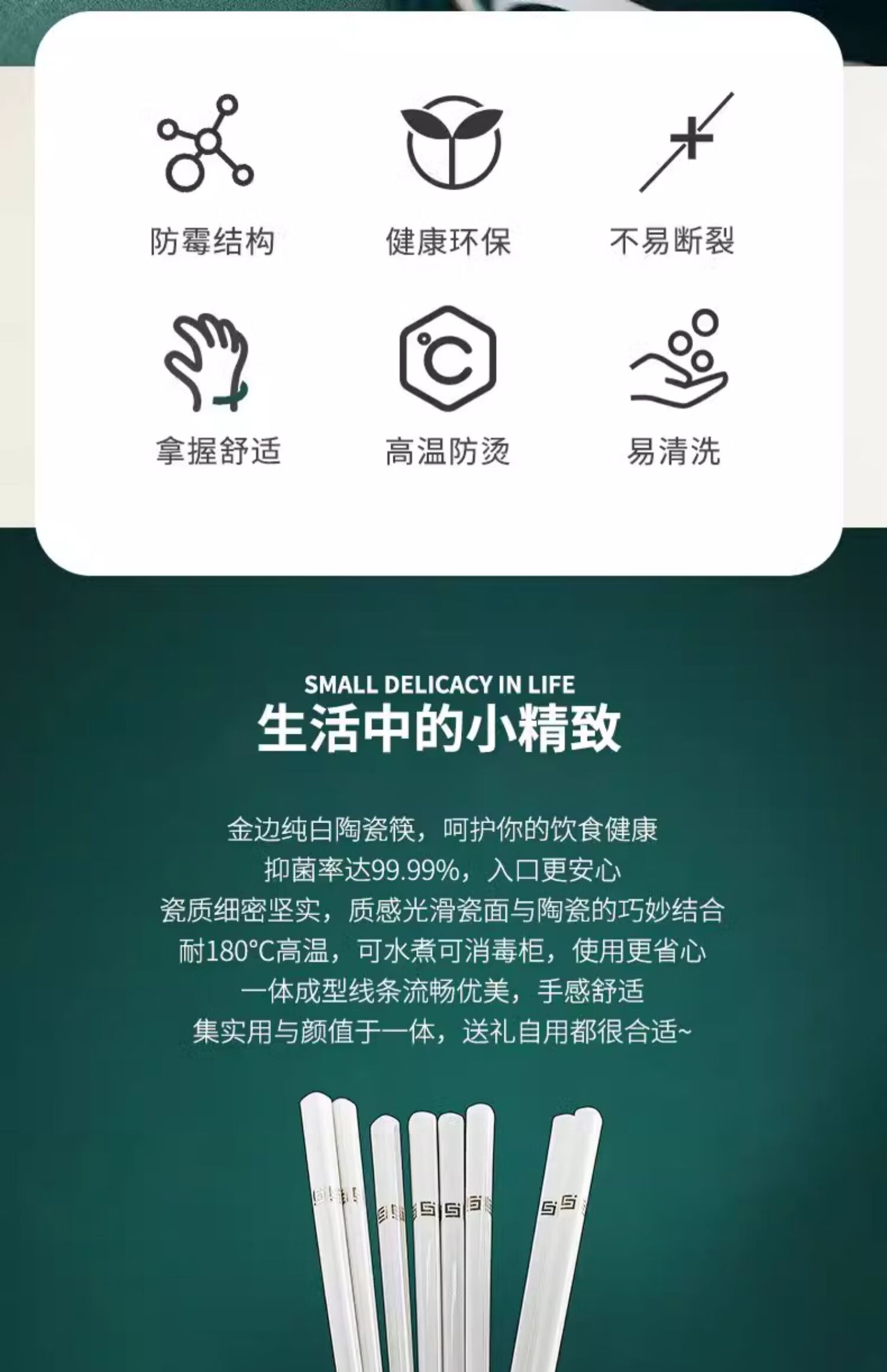 Suoyoute Jingdezhen ceramic chopsticks with gold markings for household tableware, high temperature resistant, easy to clean, non-deformable, mildew-proof, high-end gift-giving tableware, 10 pairs - Ceramic Chopsticks with Gold Ruyi