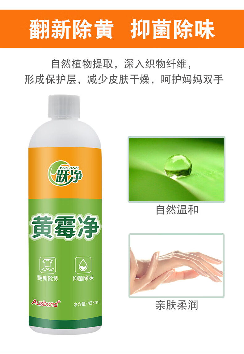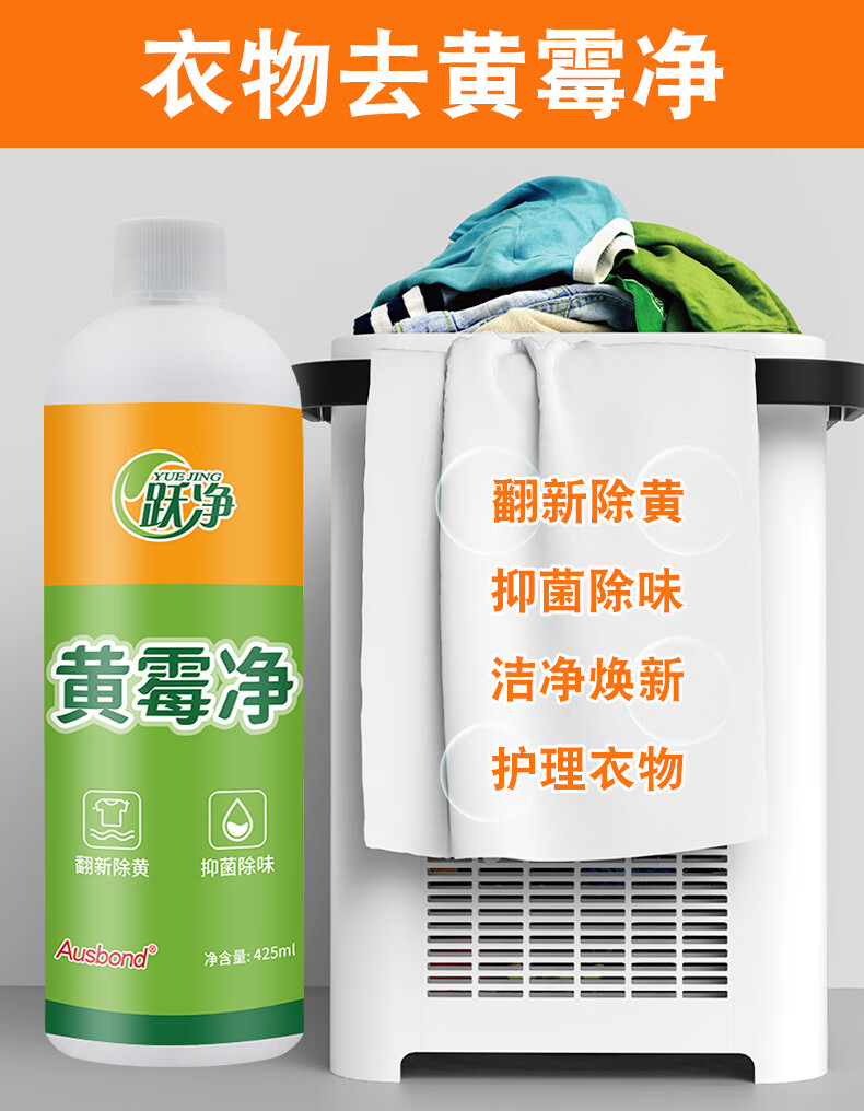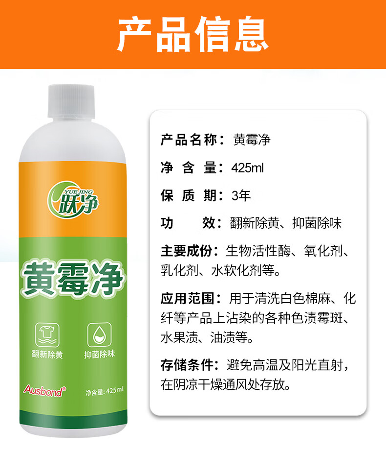 Yuejing Yellow Mold Cleaner removes mildew spots and mildew stains, laundry collars, clothes, strong decontamination, yellowing and whitening colored clothes laundry detergent, moldy black spots and mildew removal cleaning agent Lazy Huangmeijing Huang Mewjing 425ML