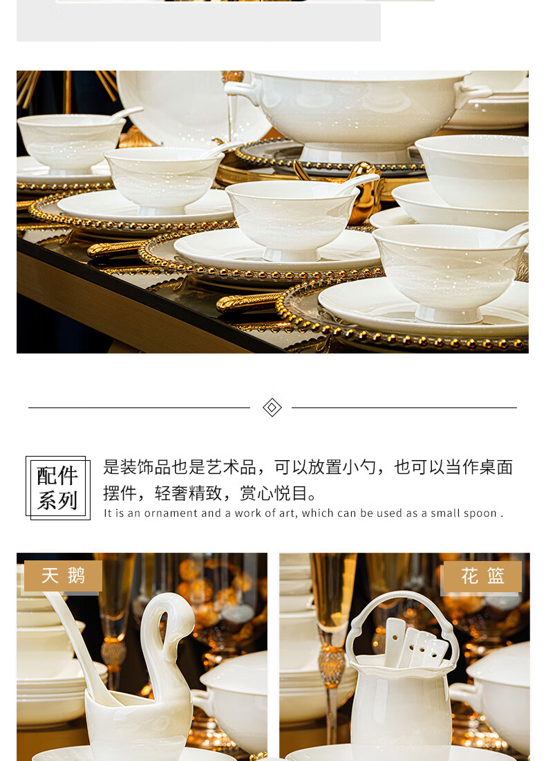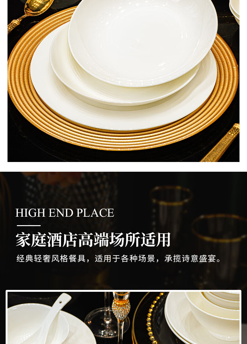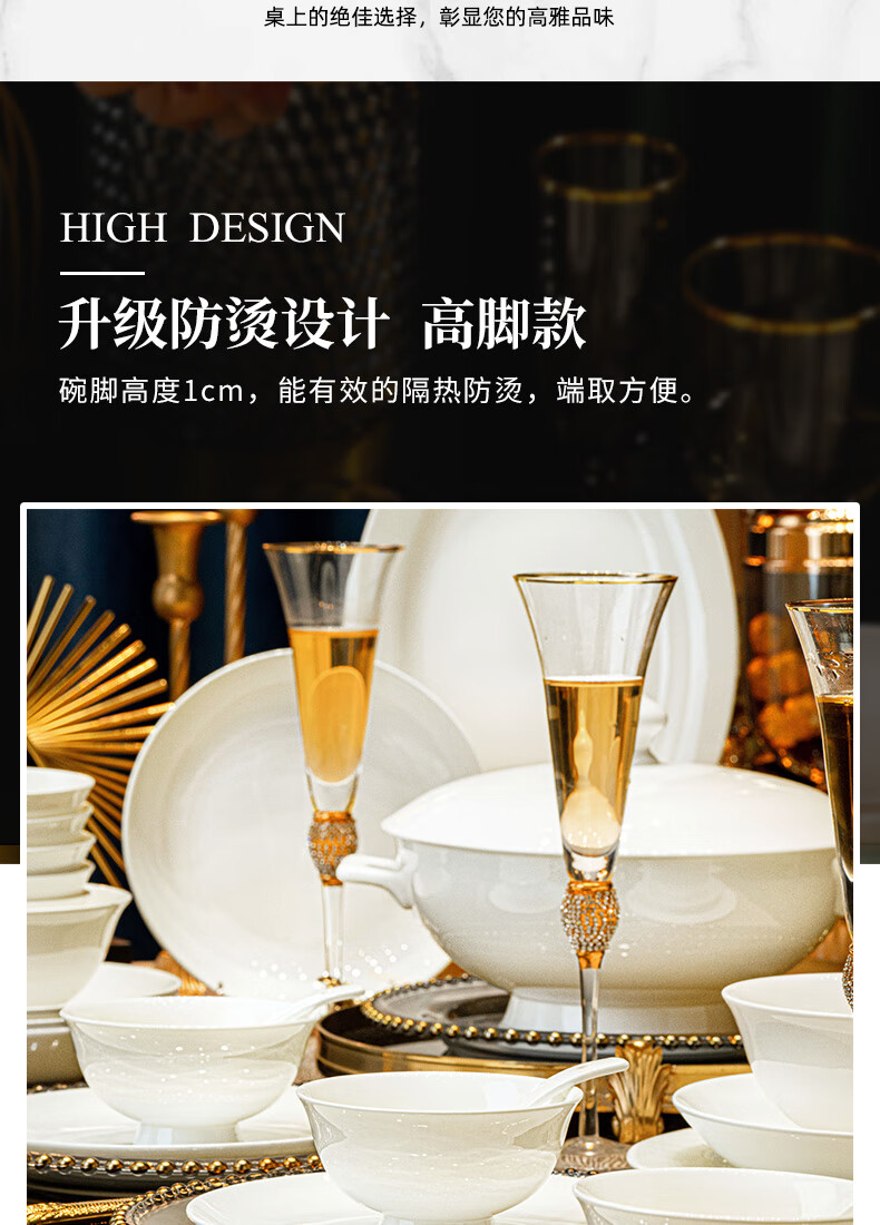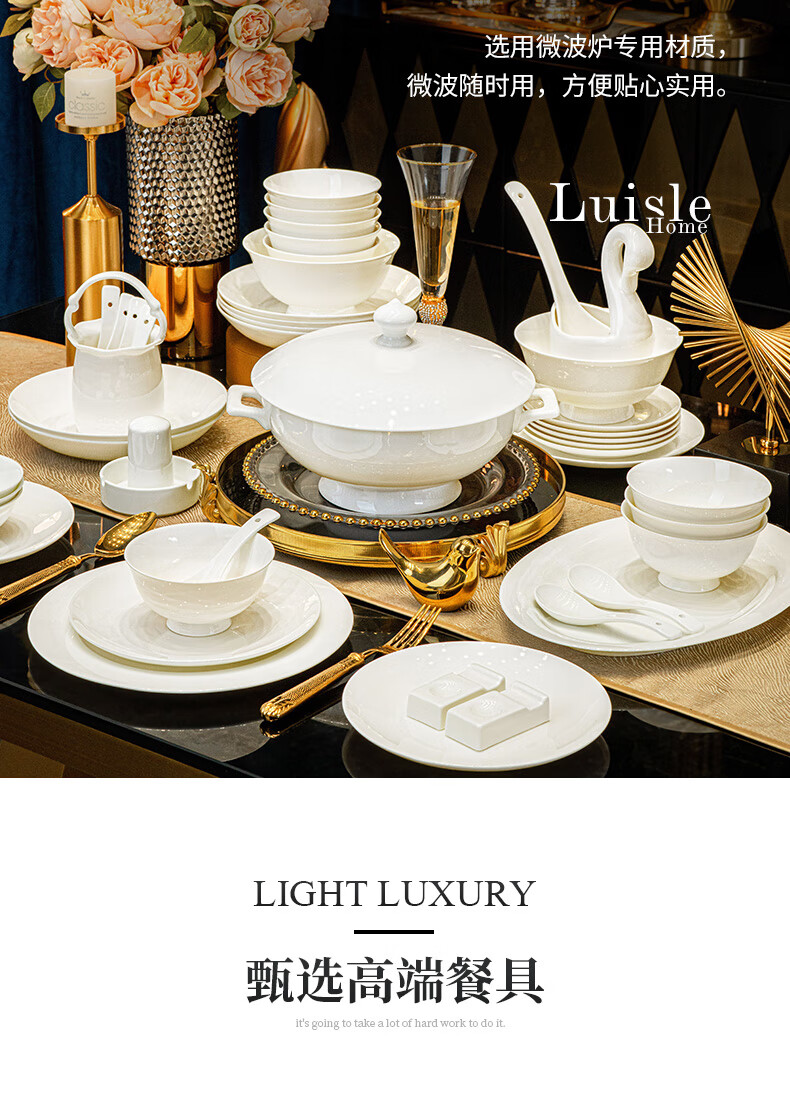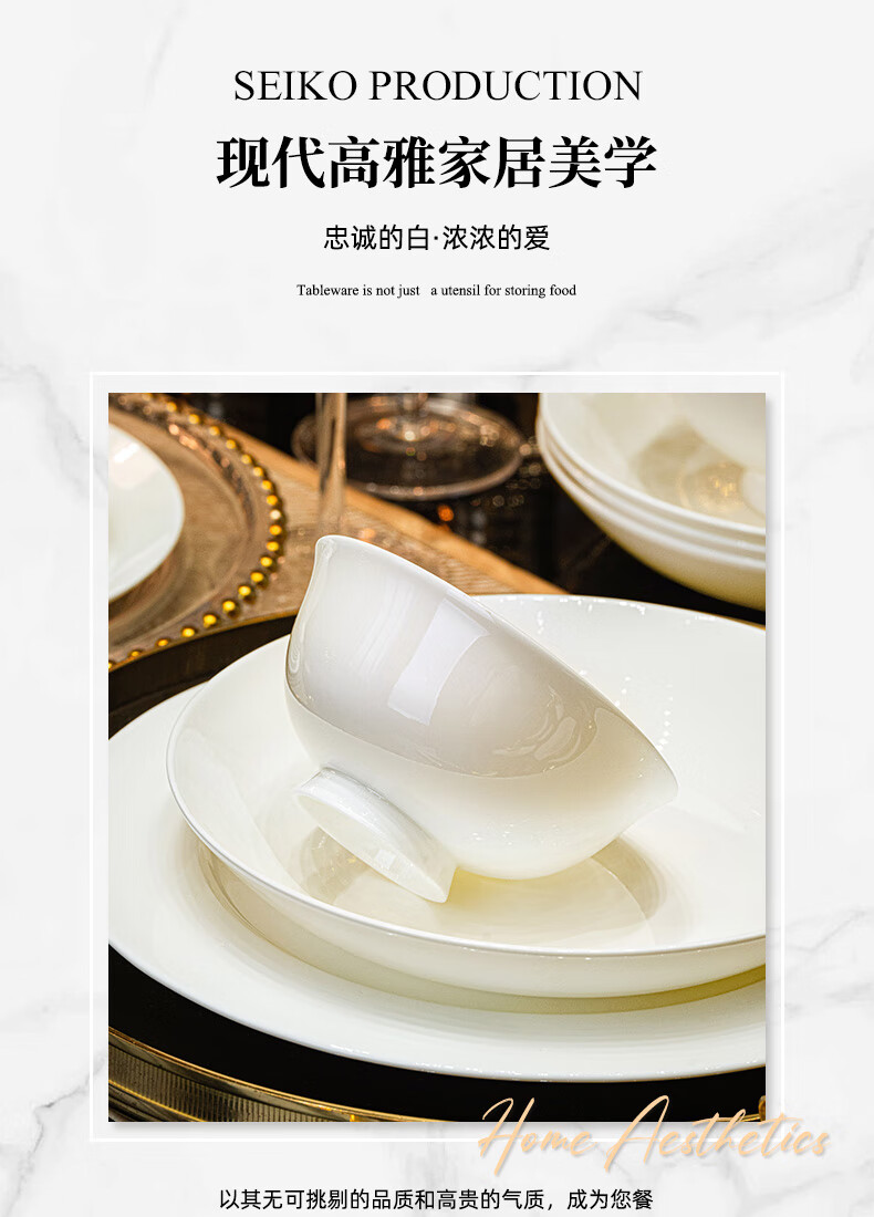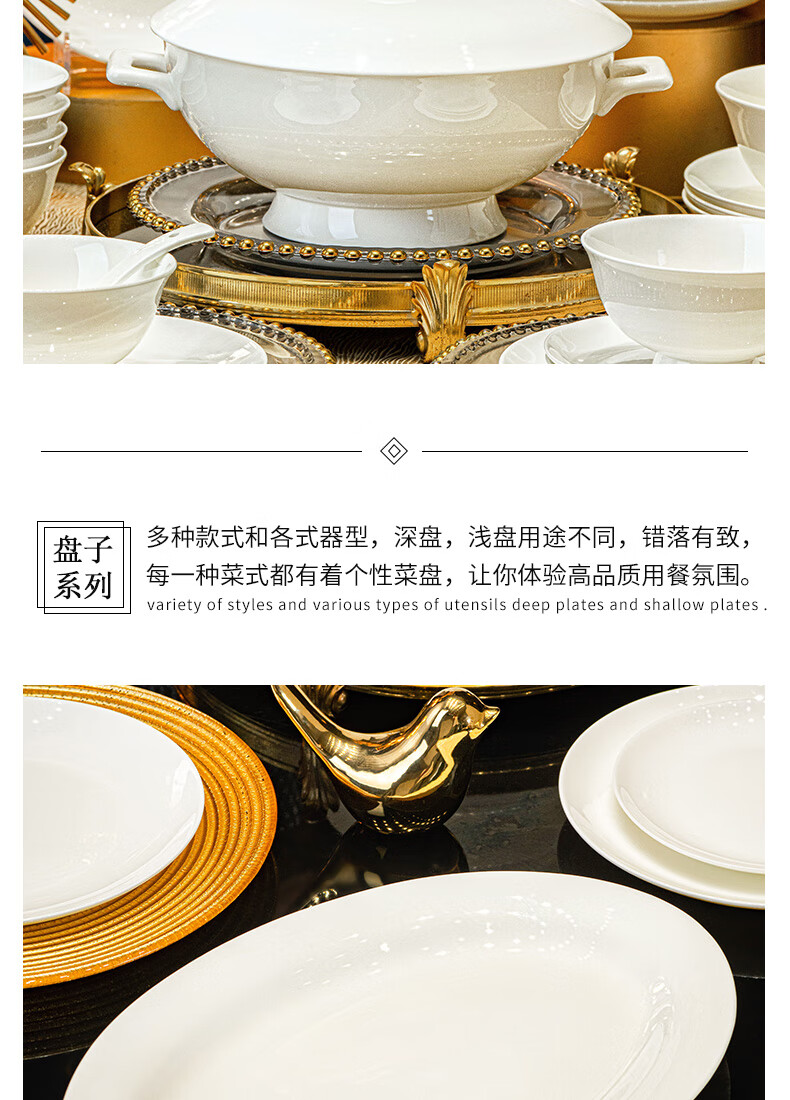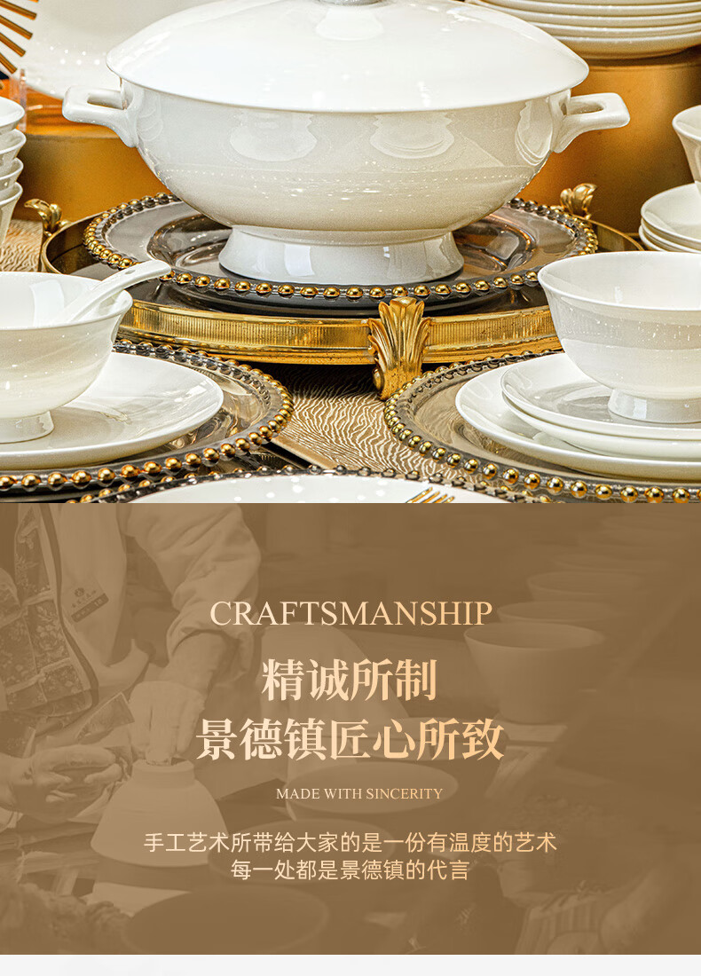 NINE CRANES high-end bowl set bone china household pure white Jingdezhen ceramic bowls and plates tableware high-end housewarming gift set first-class bone china | brocade box packaging | with lucky pot 70-piece set