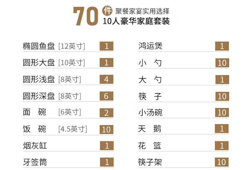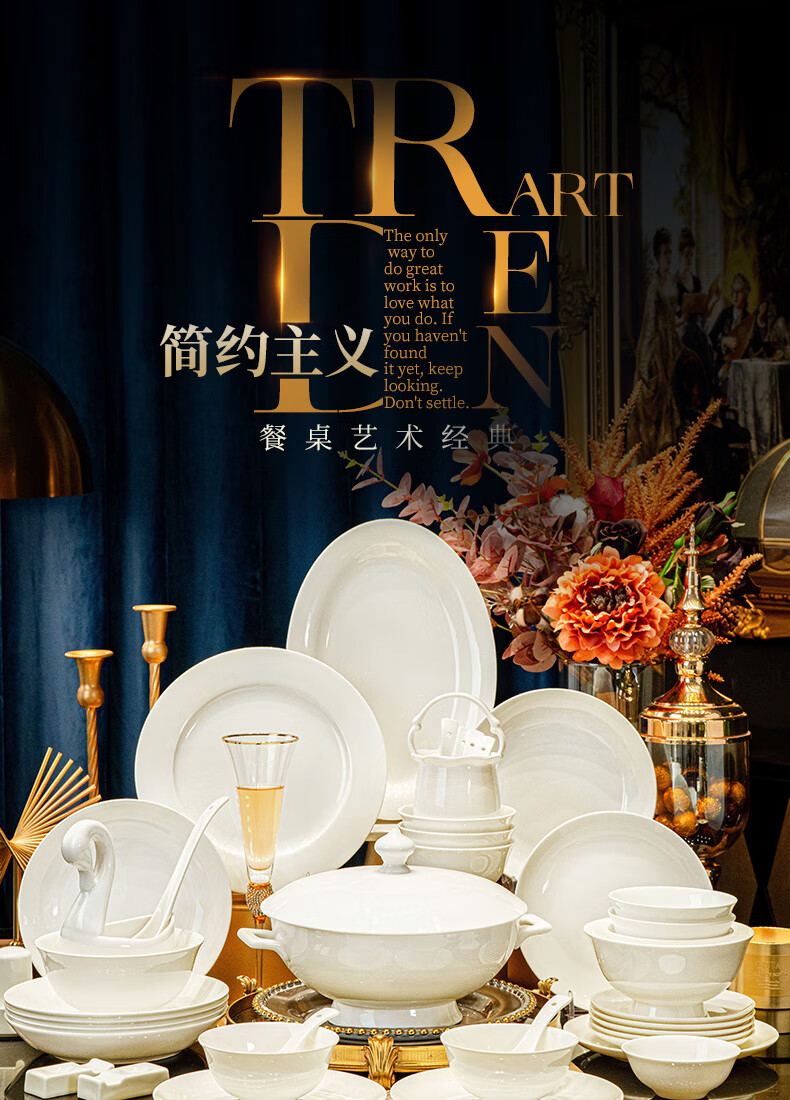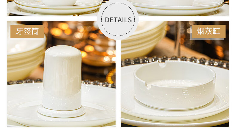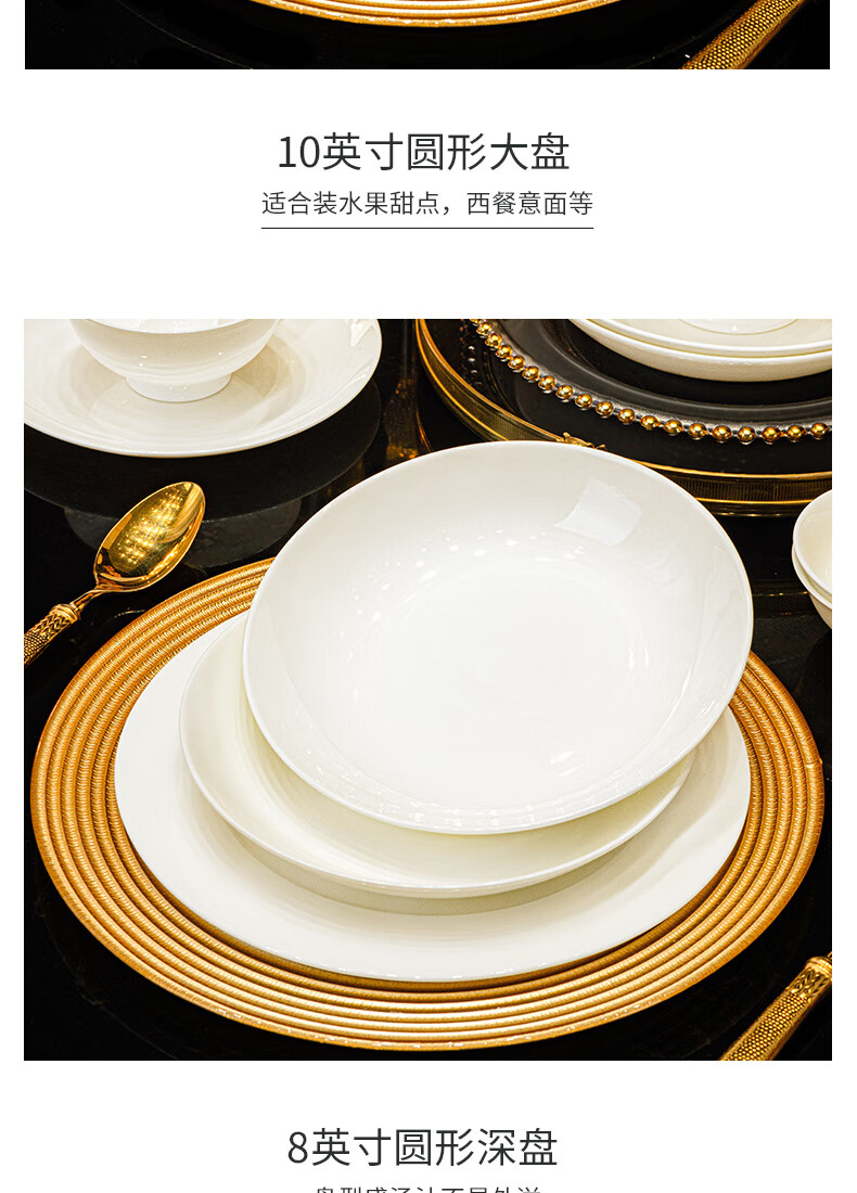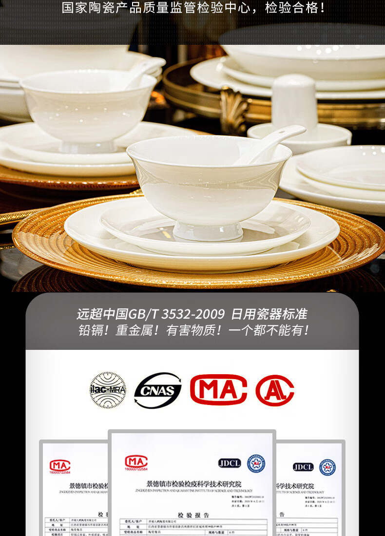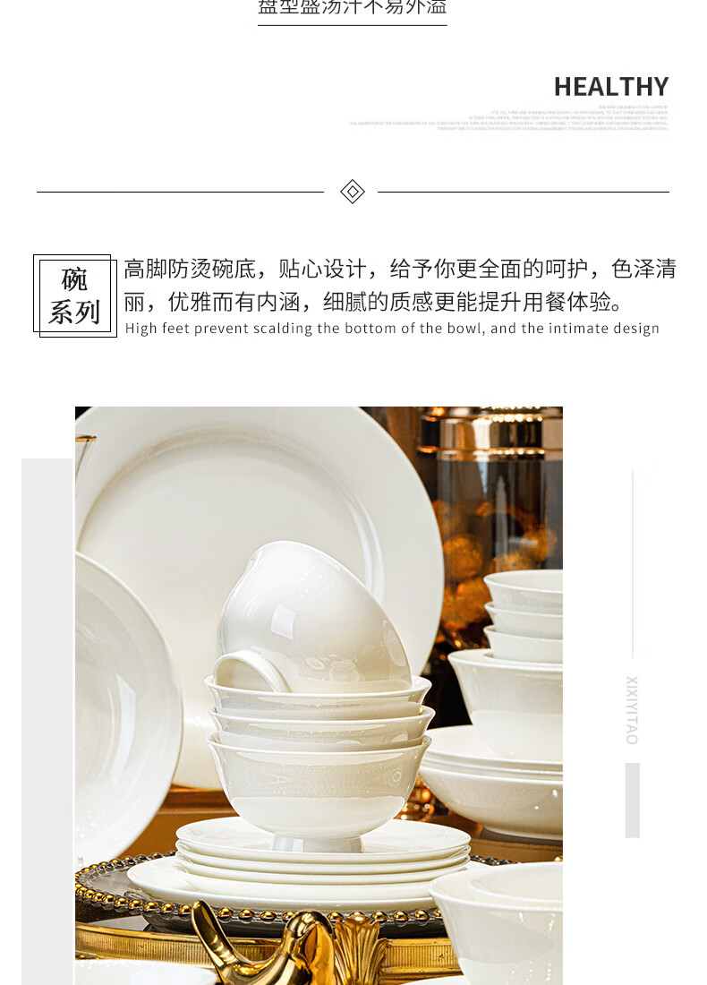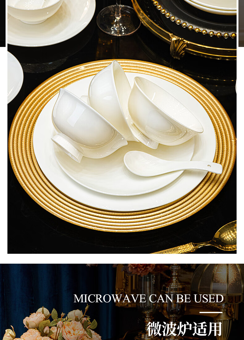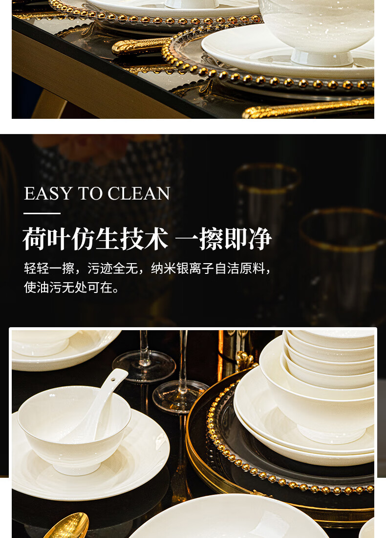 NINE CRANES high-end bowl set bone china household pure white Jingdezhen ceramic bowls and plates tableware high-end housewarming gift set first-class bone china | brocade box packaging | with lucky pot 70-piece set