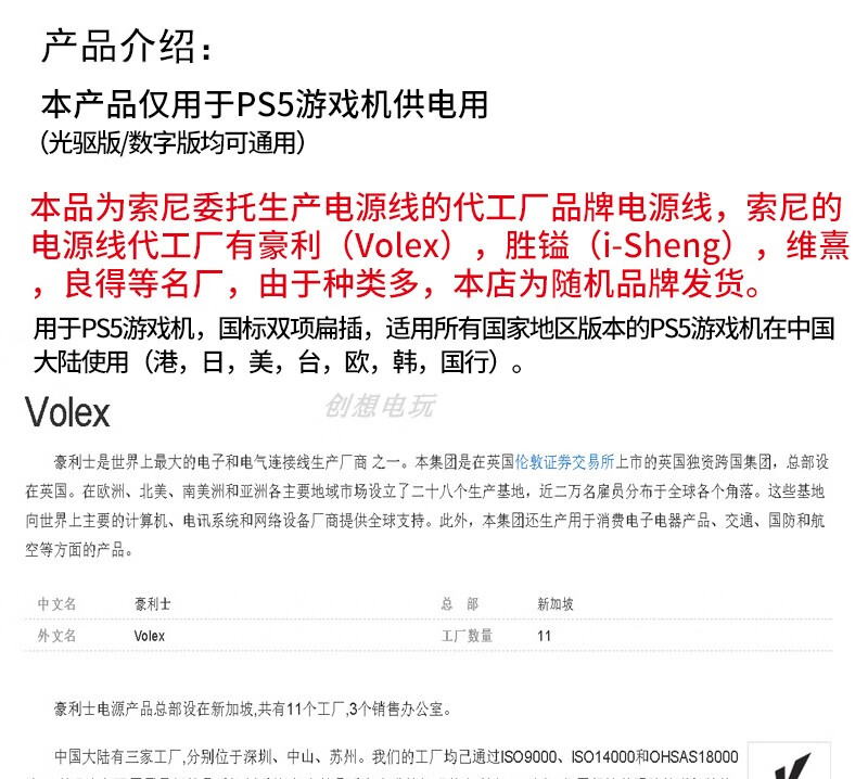 PlayStation Sony ps5 host original power cord national standard plug 8-character double hole original factory designated original power cable PS5 host power cord 1.5m