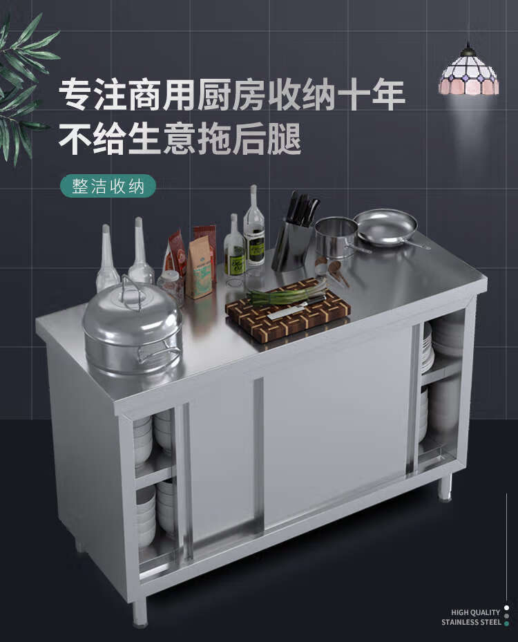 Huili 304 stainless steel workbench kitchen special operation table commercial stove cupboard thickened sliding door cabinet household 100*60*80cm single pass 304 assembly model non-standard