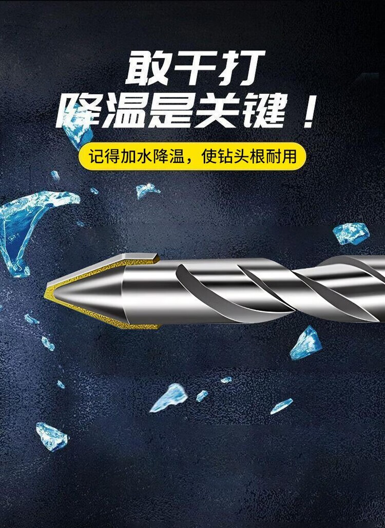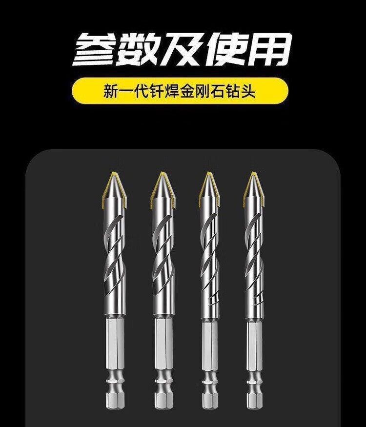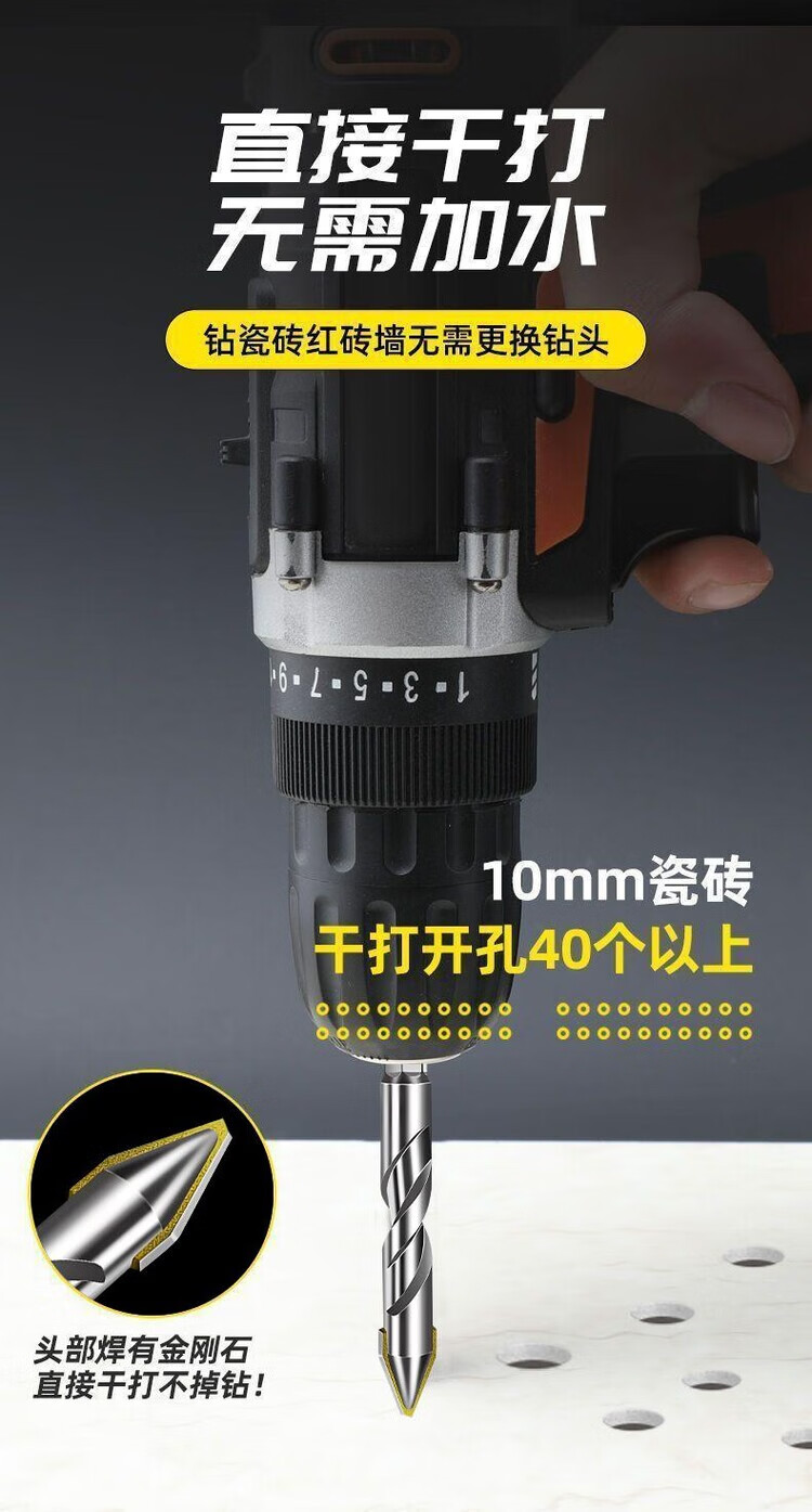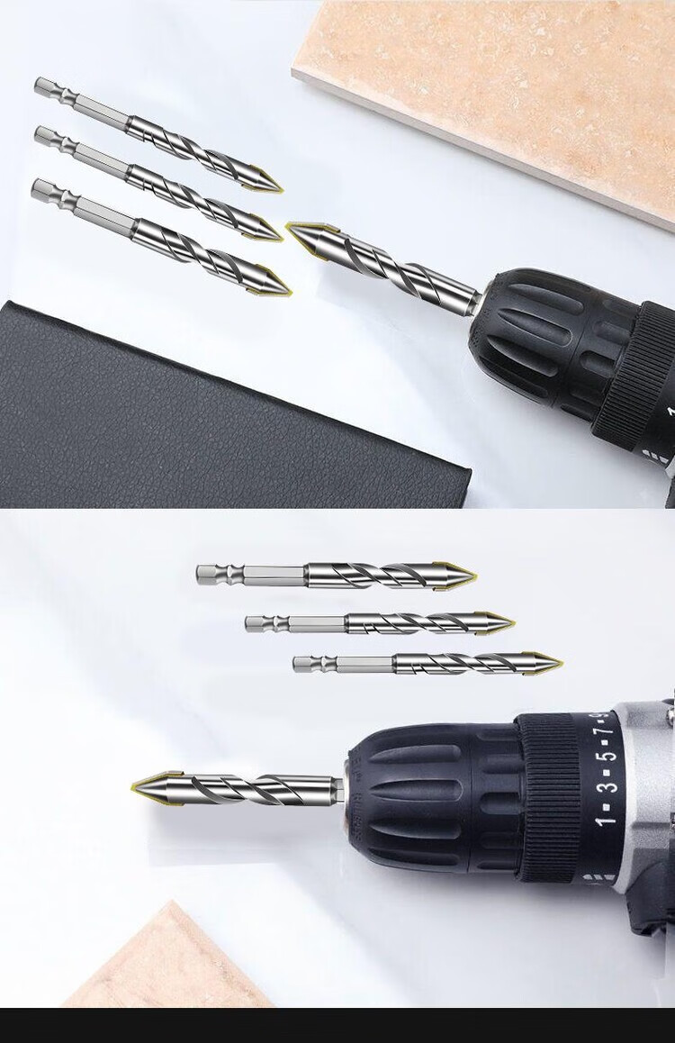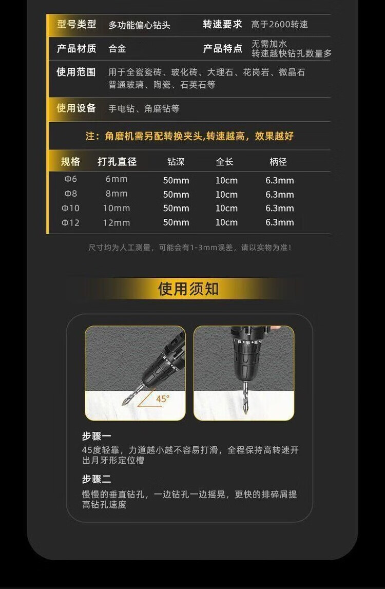 Ceramic tilted head eccentric drill bit, special tile drilling artifact for dry drilling of ceramic tiles, glass triangle drill, hexagonal electric rotor, eccentric drill 6+8+10+12, 1 each