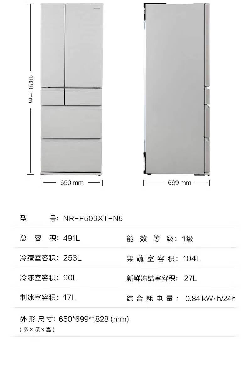 Panasonic Japan original imported multi-door refrigerator 491 liters automatic ice making independent fruit and vegetable room -3 micro-freeze preservation Nanoyi X Black Technology NR-F509XT-N5 Khaki Gray