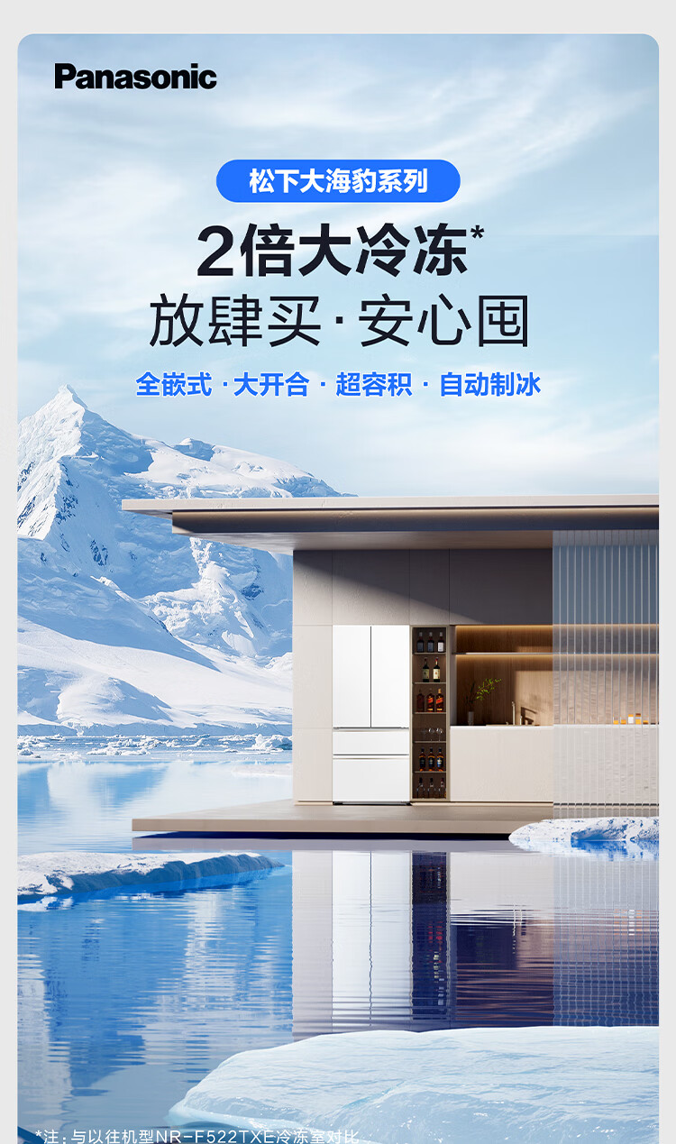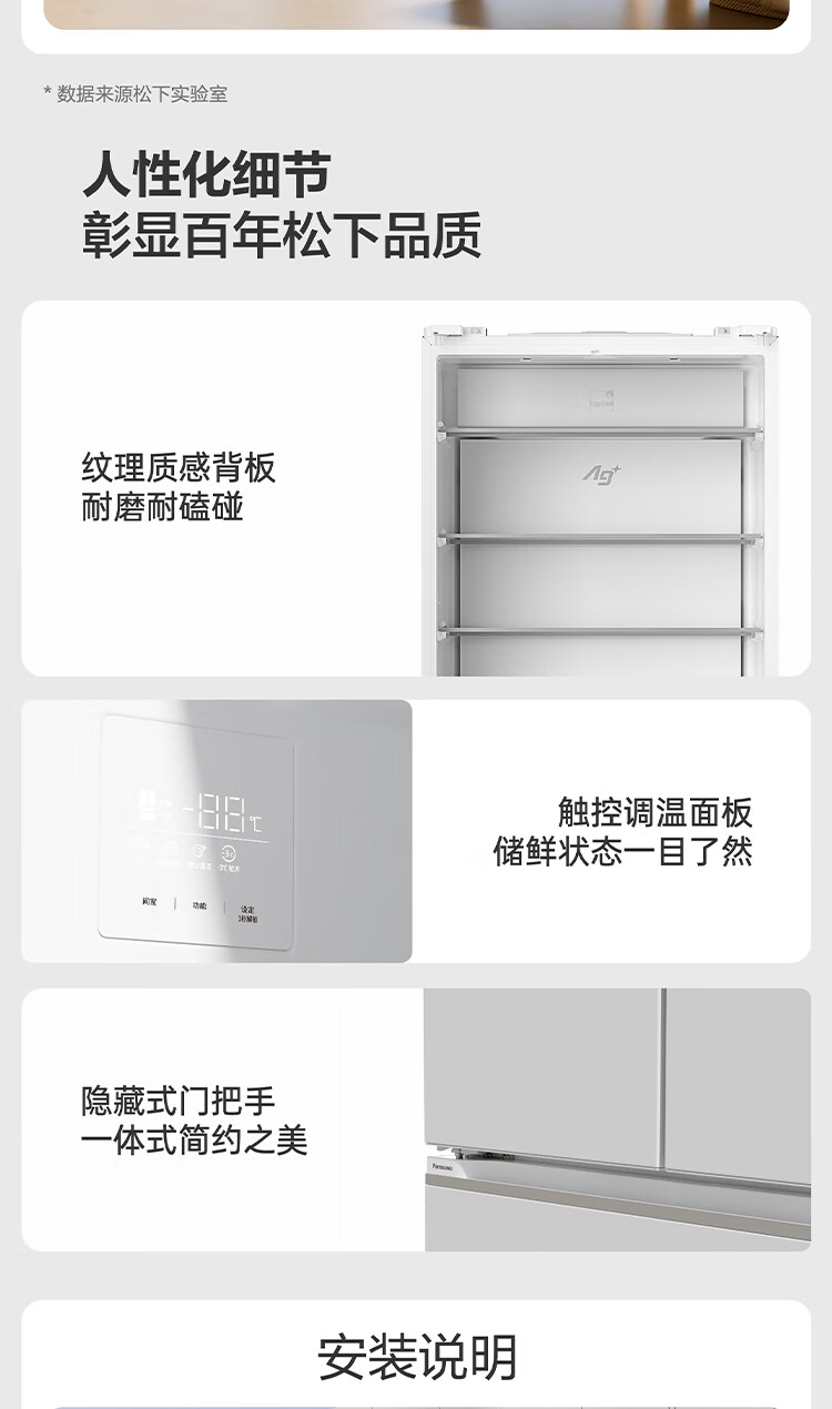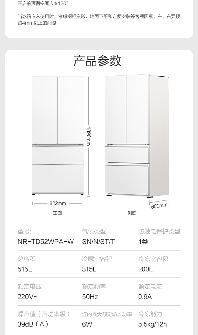 Panasonic French-style 515L four-door refrigerator large seal ultra-thin zero-embedded self-cleaning automatic ice making NR-TD52WPA-W