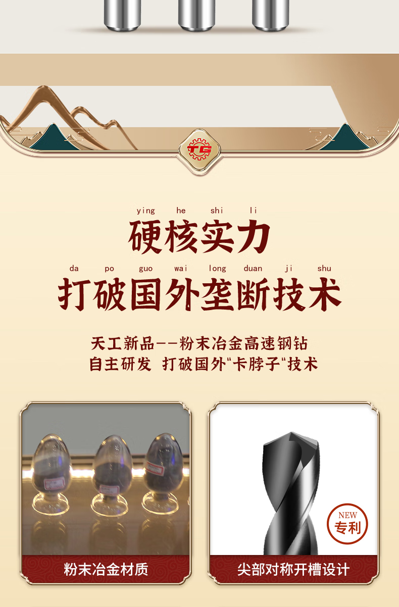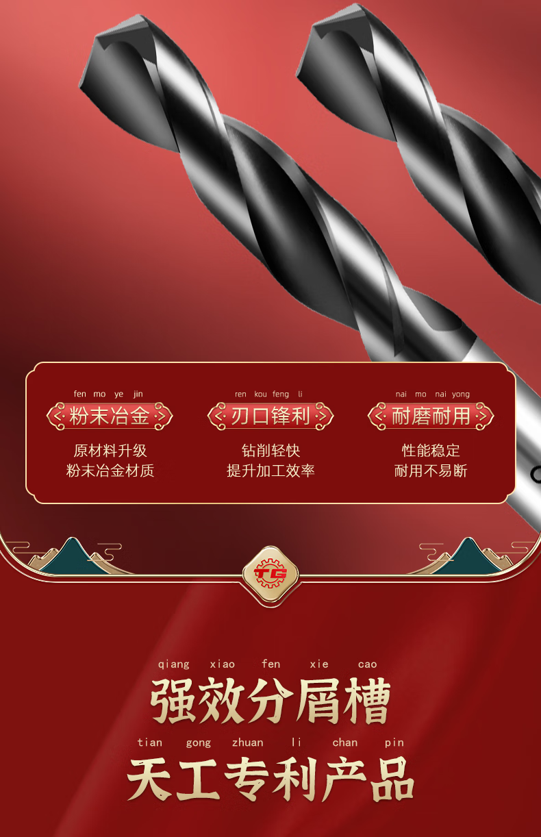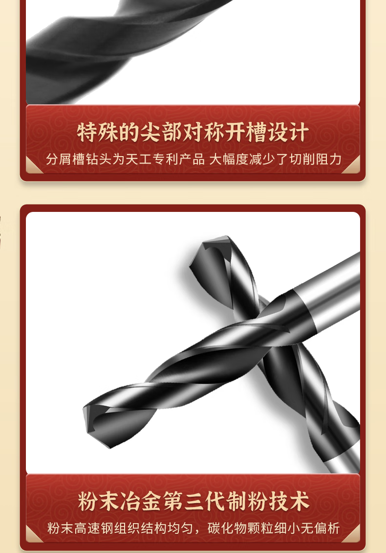 TIANGONG powder metallurgy fixed shank twist drill bit powder high speed steel strong coating chip splitter drill stainless steel drilling 3.3mm