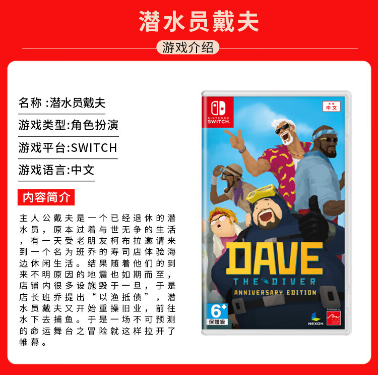 Nintendo Switch cartridge, new NS1 game software, overseas version, Diver Dave (Chinese)