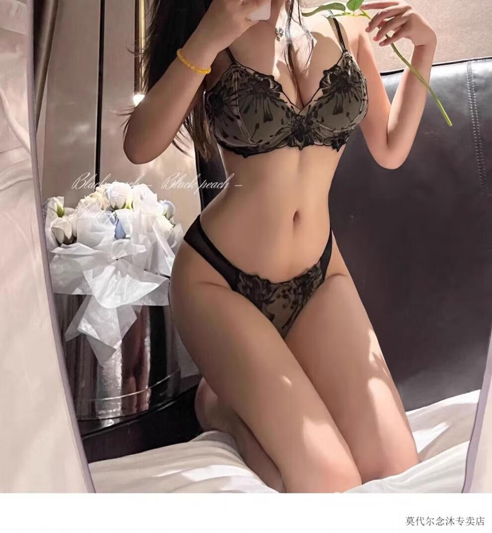 Modal New Pure Desire Sexy Embroidered Lace Underwear No Wires Big Breast Reduction Comfortable Breathable Bra Set Black Set Pure Desire Sexy 75B/34 Gift Box