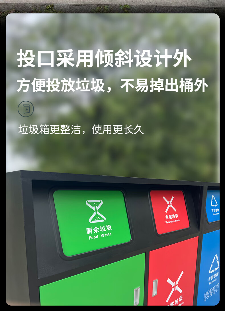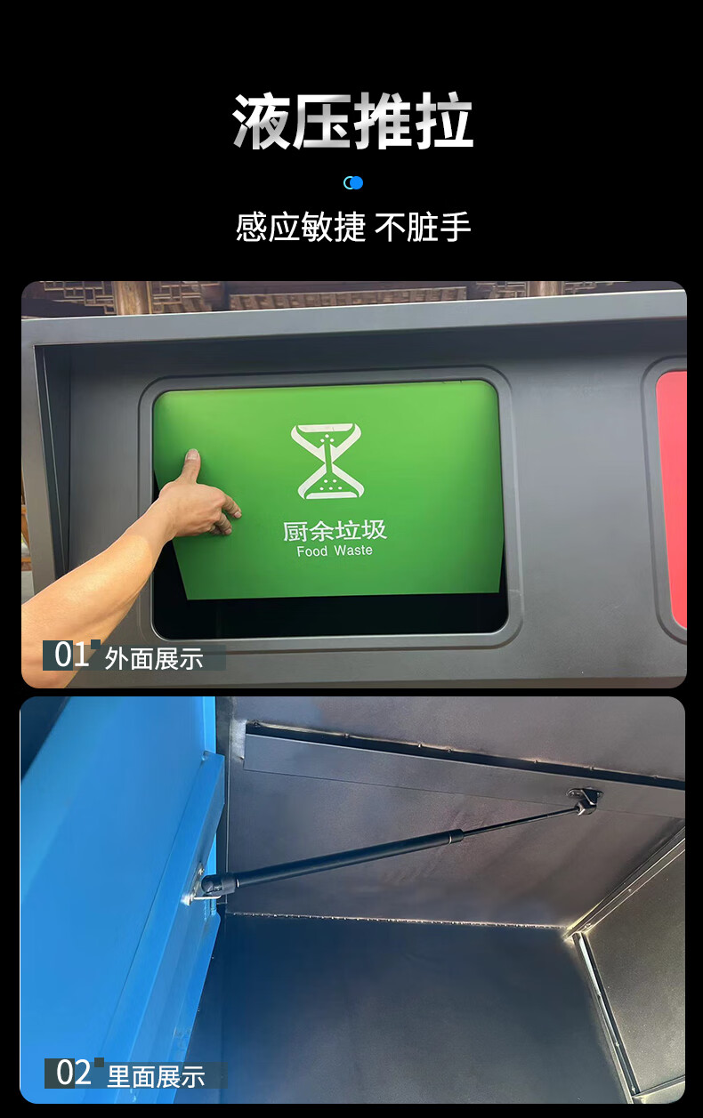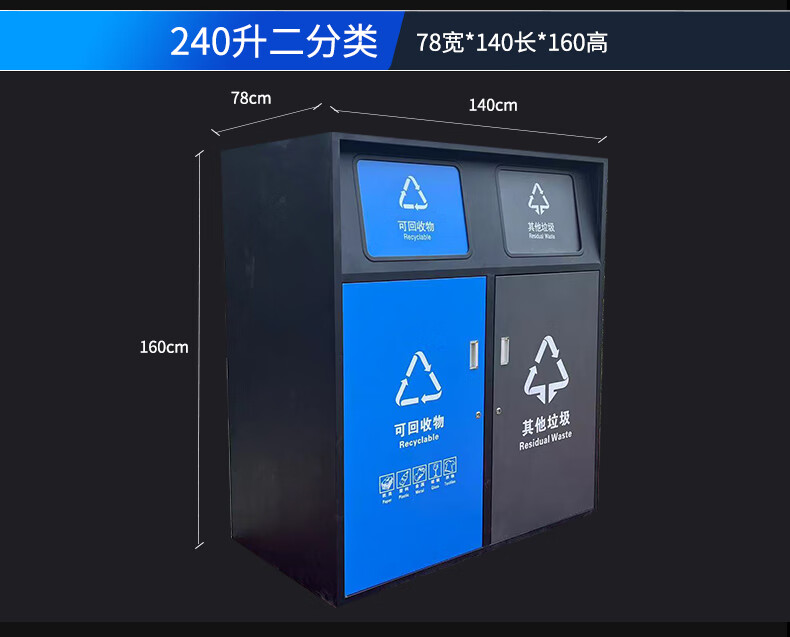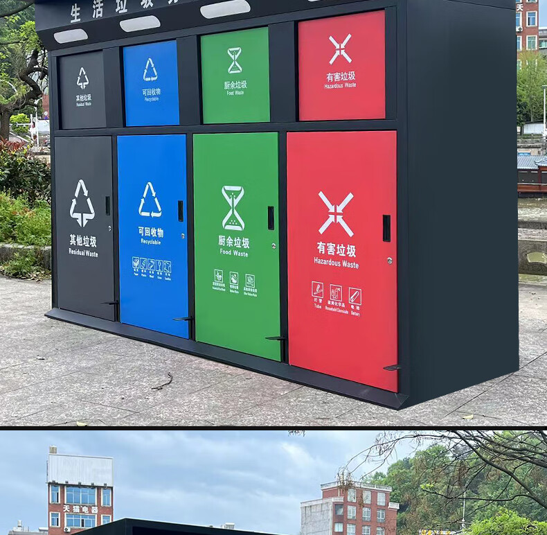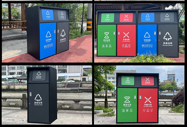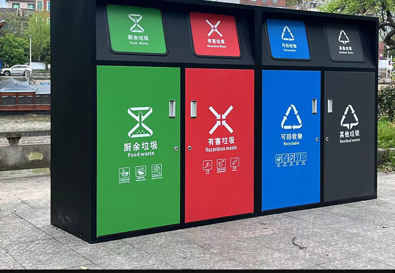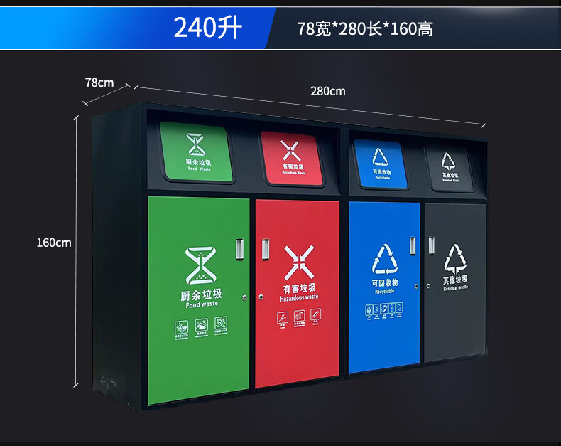 Large-capacity intelligent induction garbage sorting box outdoor four-category garbage bin foot pedal built-in 240 liter plastic bucket A type red, blue, green and gray 120 liter four categories including inner bucket 60*140*2