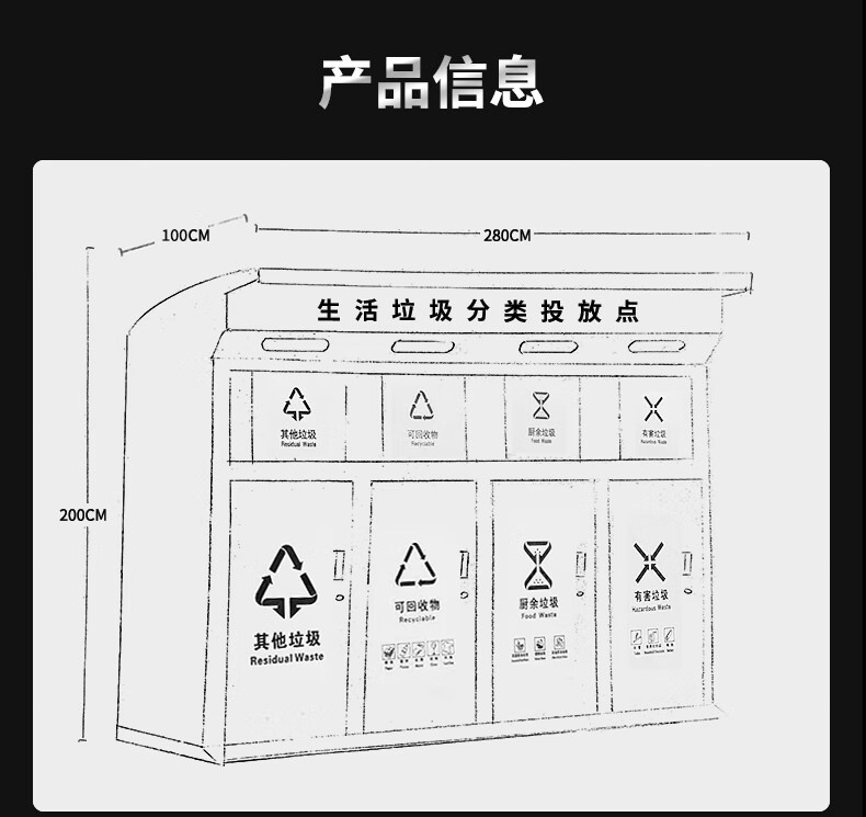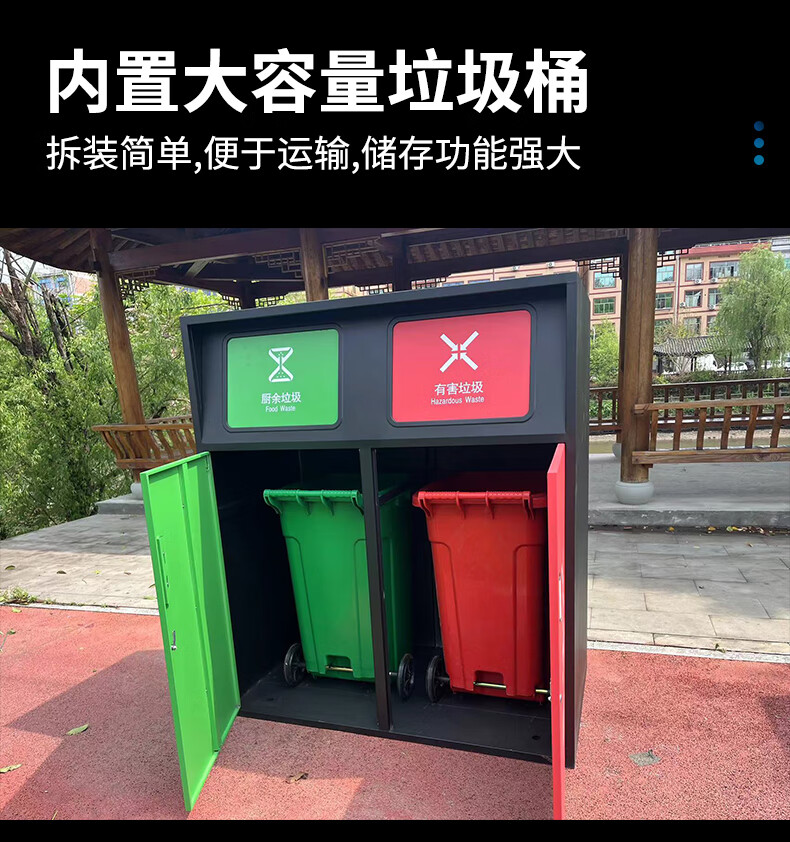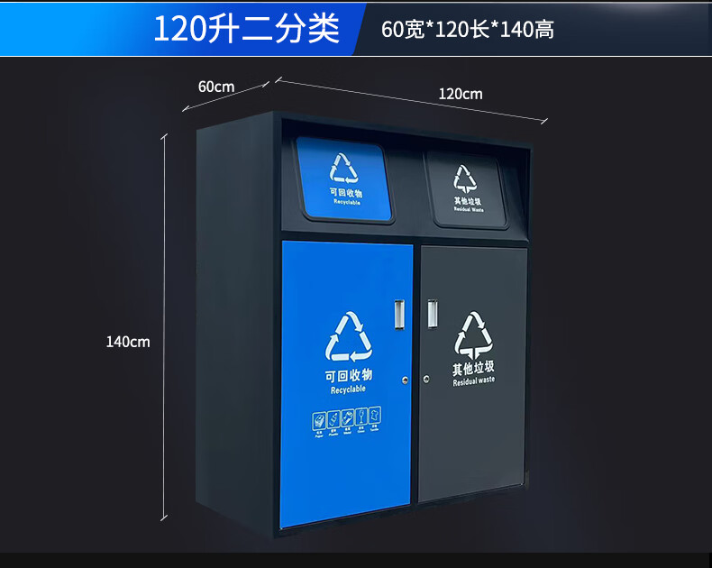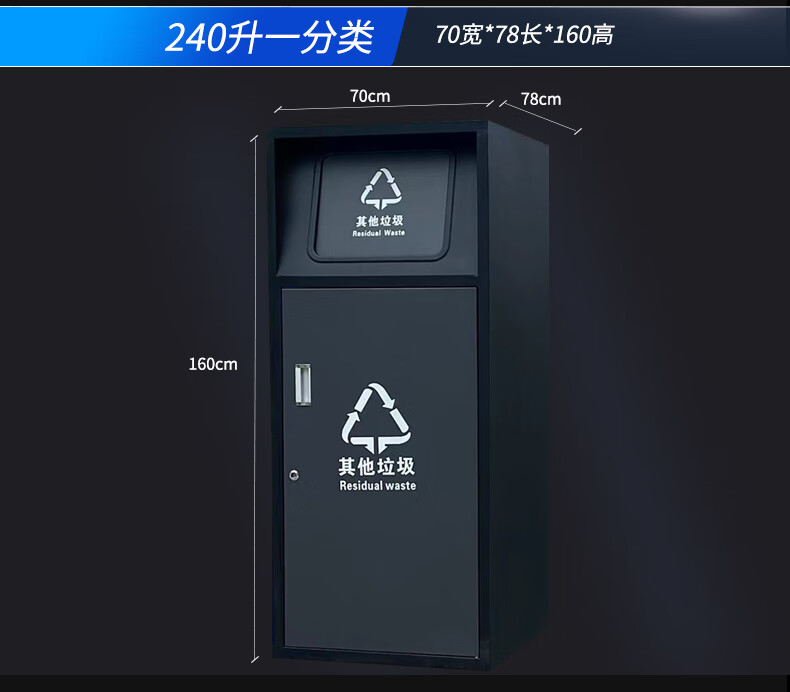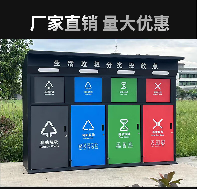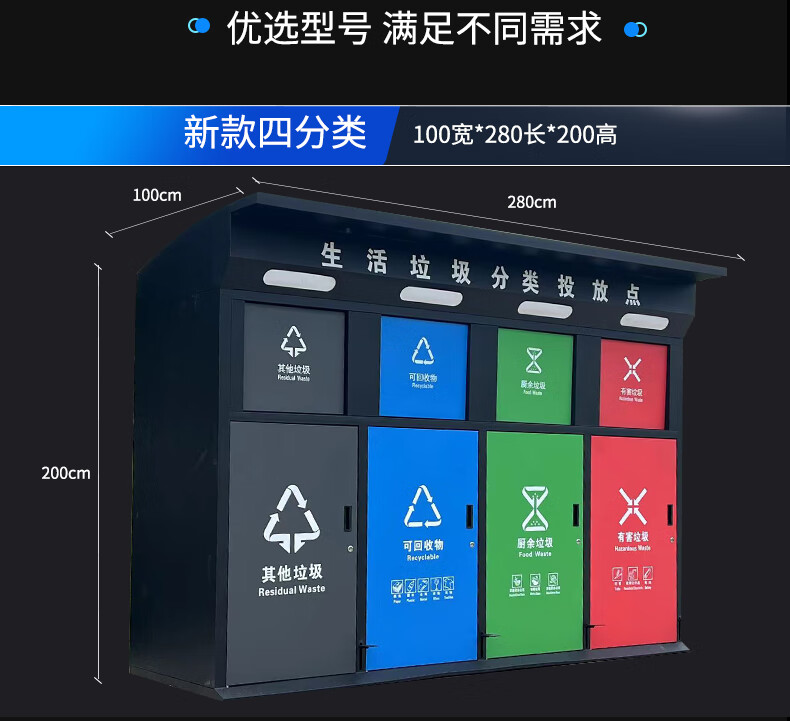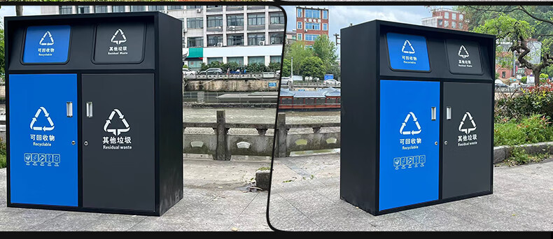 Large-capacity intelligent induction garbage sorting box outdoor four-category garbage bin foot pedal built-in 240 liter plastic bucket A type red, blue, green and gray 120 liter four categories including inner bucket 60*140*2
