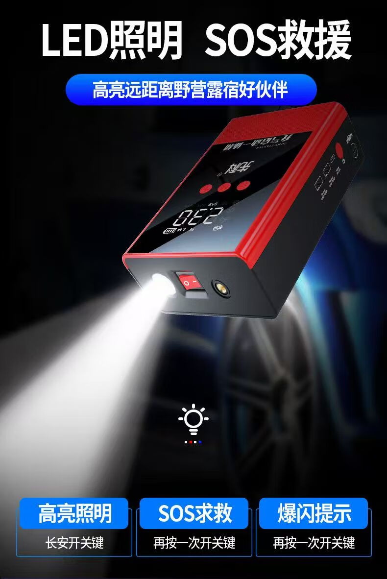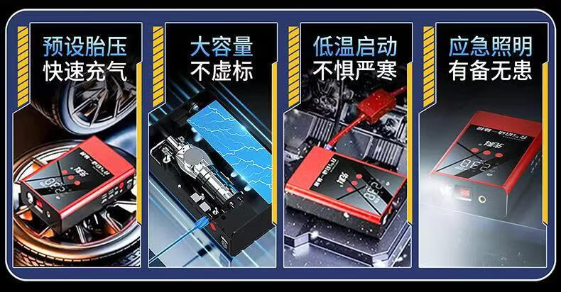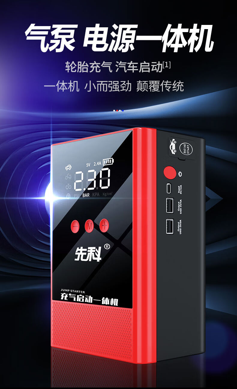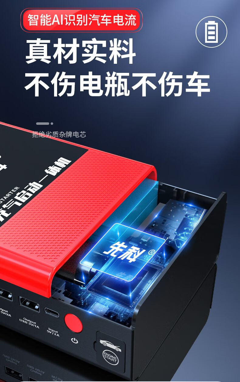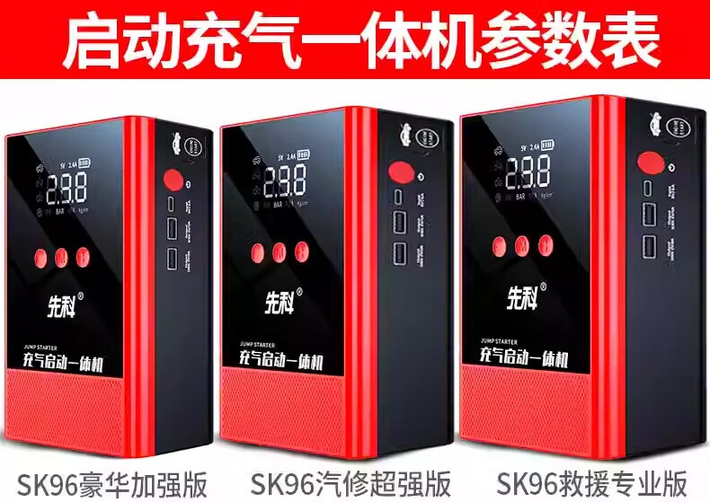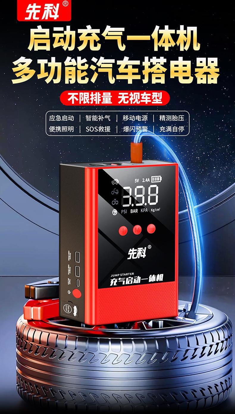 XIANKE 3C certified car emergency starting power supply 12V air pump all-in-one machine large capacity battery ignition artifact battery starter emergency battery starter rescue version super large capacity can be started 30 times