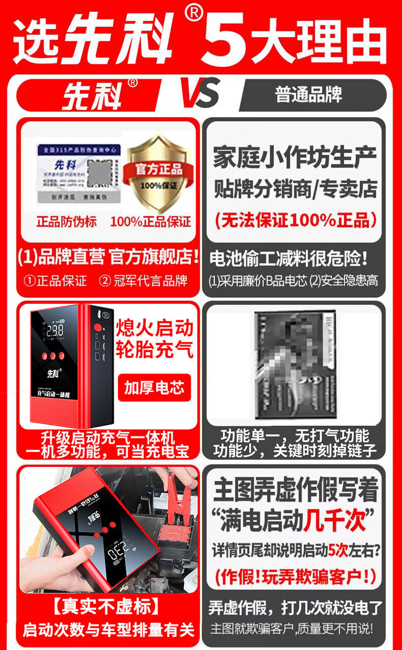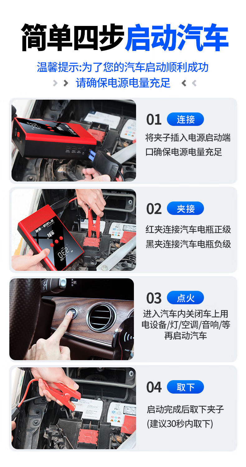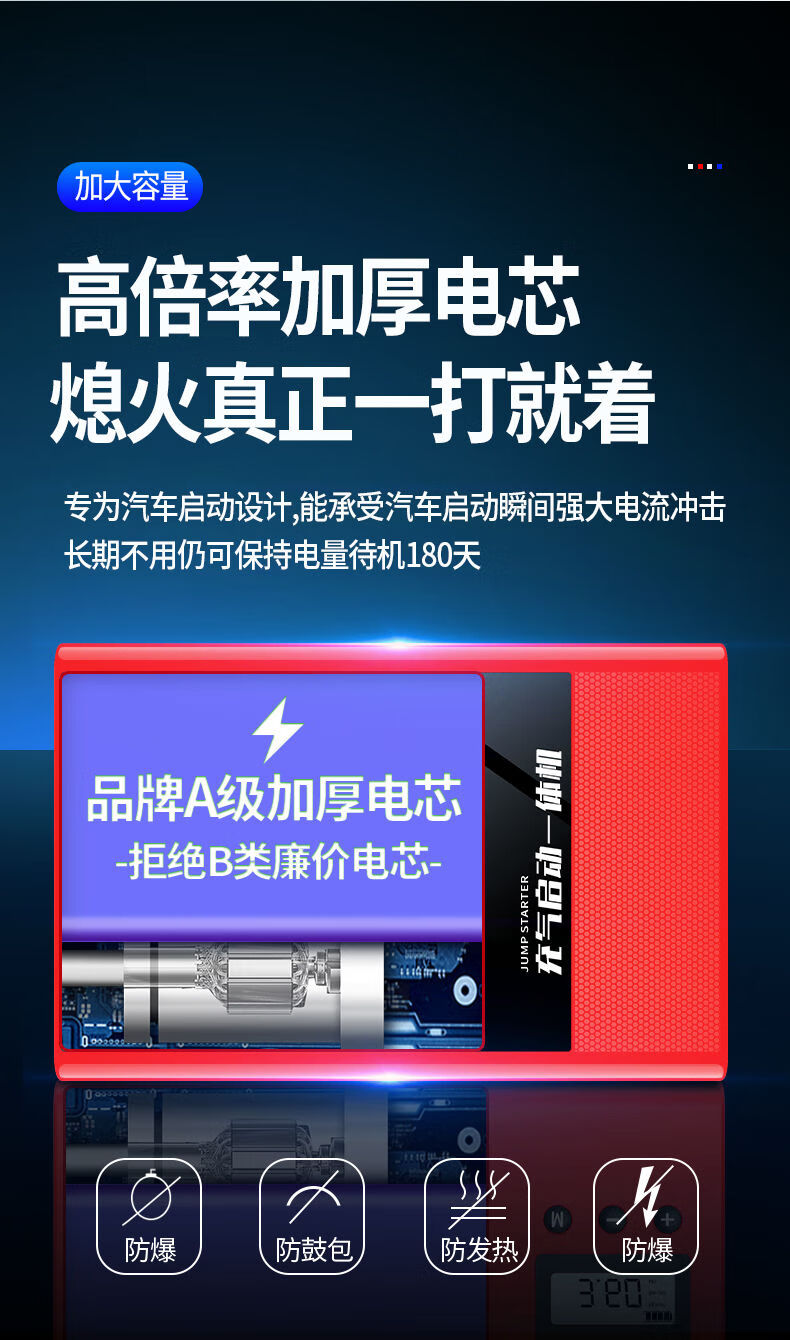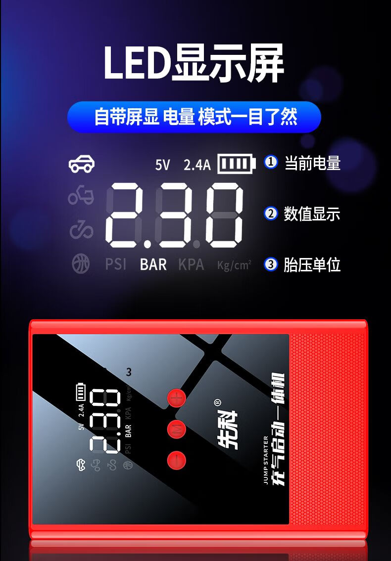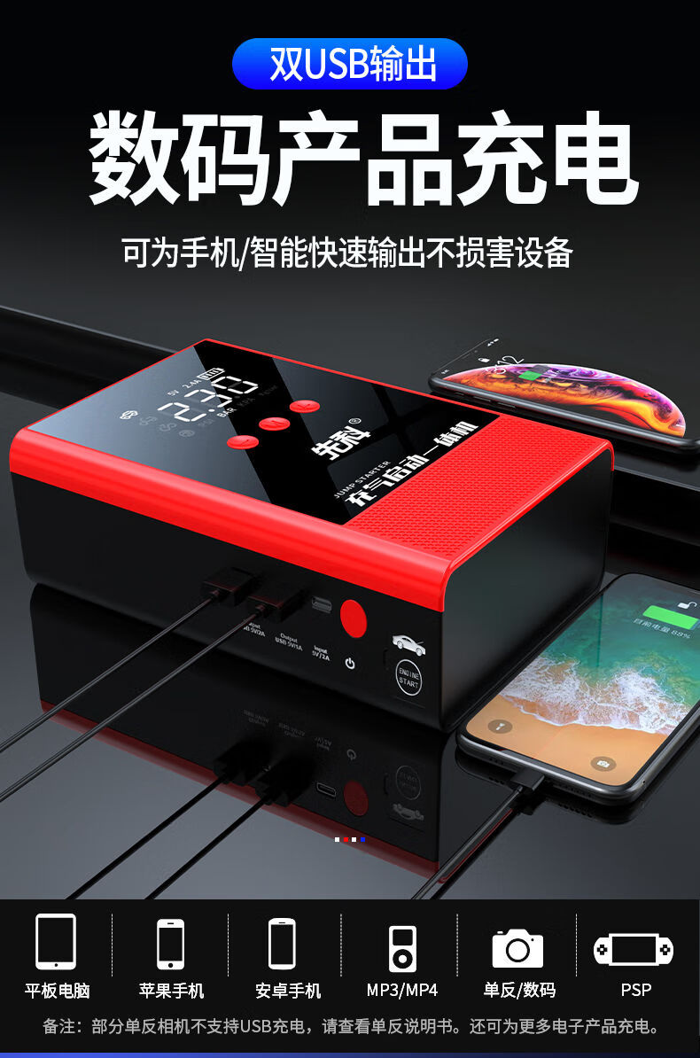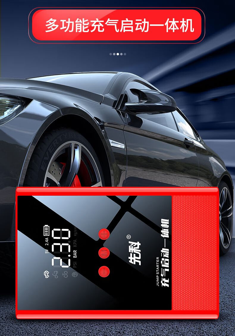 XIANKE 3C certified car emergency starting power supply 12V air pump all-in-one machine large capacity battery ignition artifact battery starter emergency battery starter rescue version super large capacity can be started 30 times