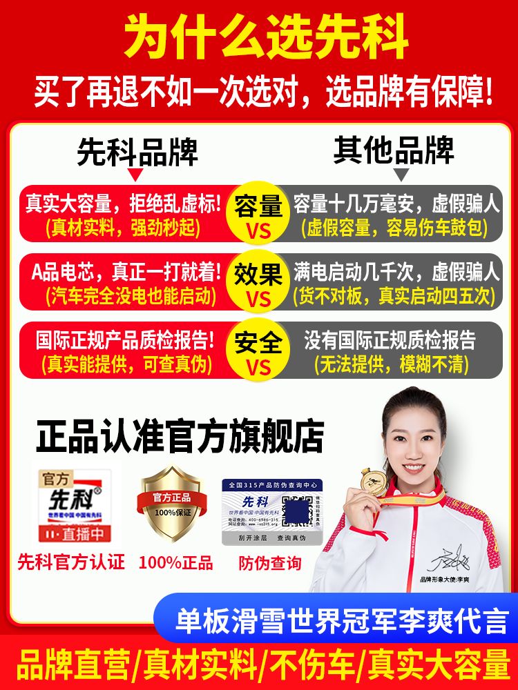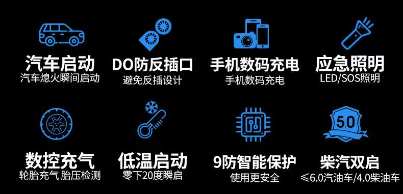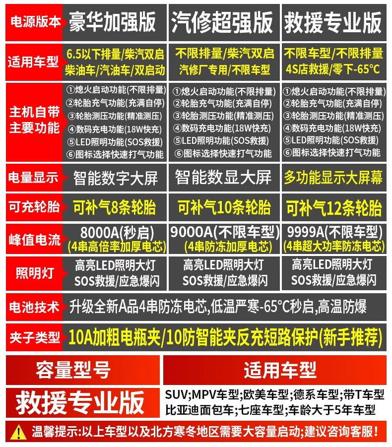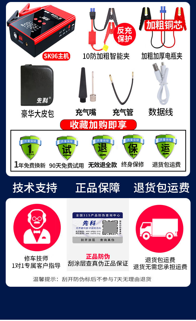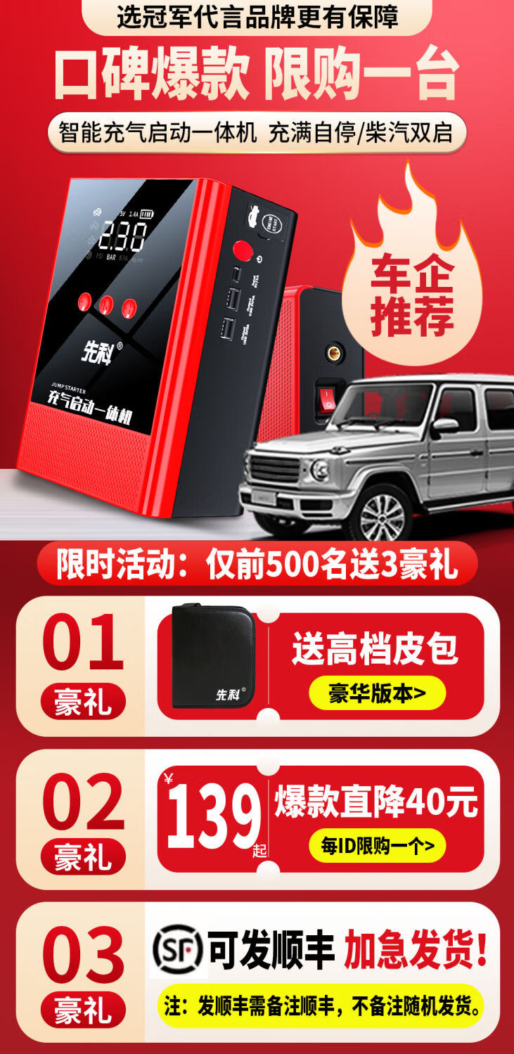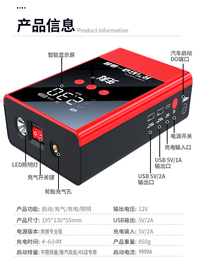 XIANKE 3C certified car emergency starting power supply 12V air pump all-in-one machine large capacity battery ignition artifact battery starter emergency battery starter rescue version super large capacity can be started 30 times