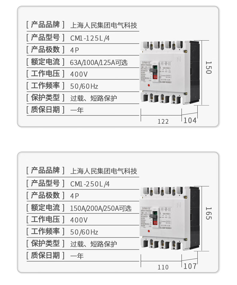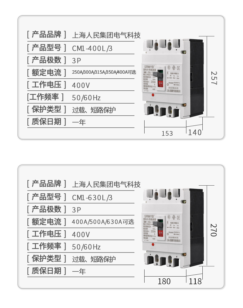 Shanghai People's CM1 plastic case circuit breaker air switch three-phase 100A 160A 250A 630A 3 125A
