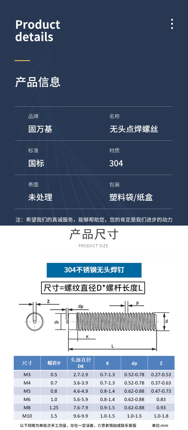 Guwanji 304 stainless steel headless spot welding screw stepless welding stud B type welding screw large national standard fastener M4x12 (50 pieces)