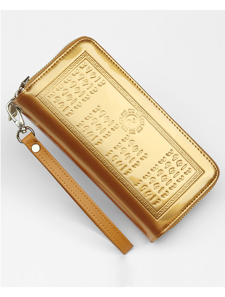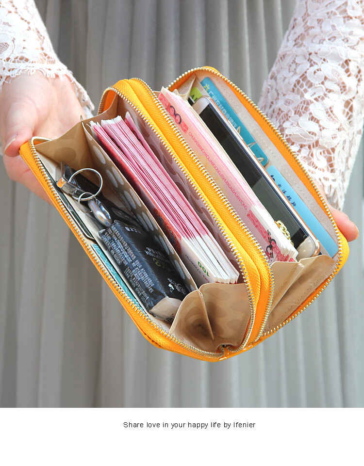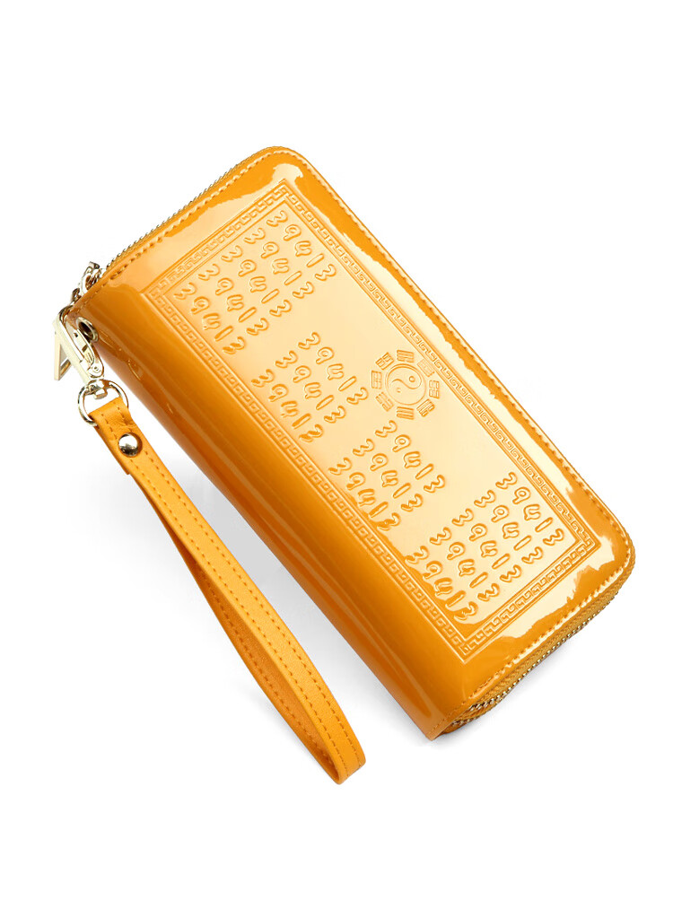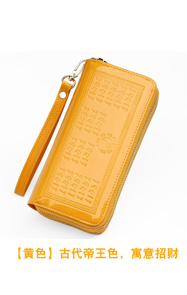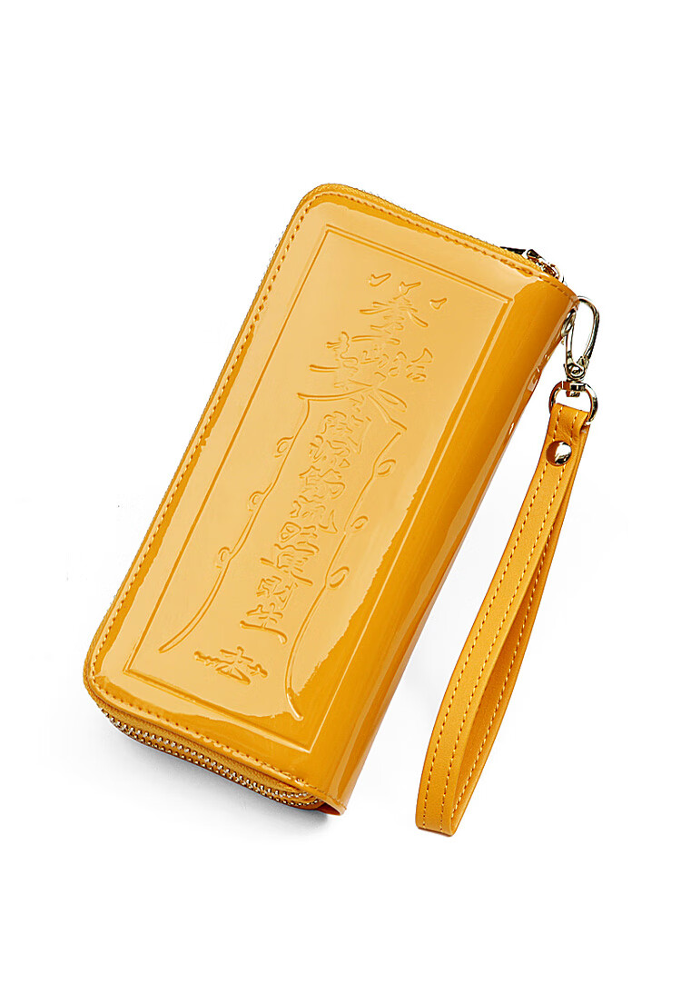 SHARELOVE gold wallet for women, yellow long mobile phone bag, card holder, all-in-one men's new transfer transport, mother's fortune, double zipper bright leather, yellow character bag, front