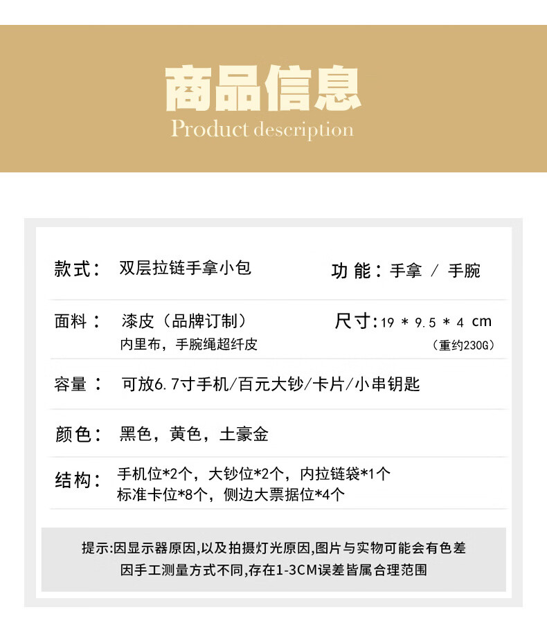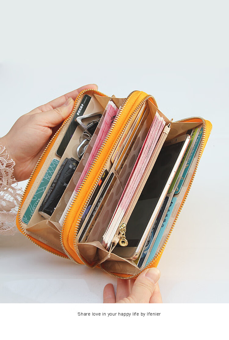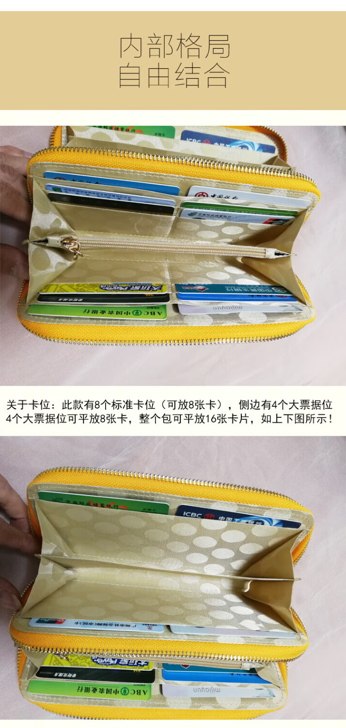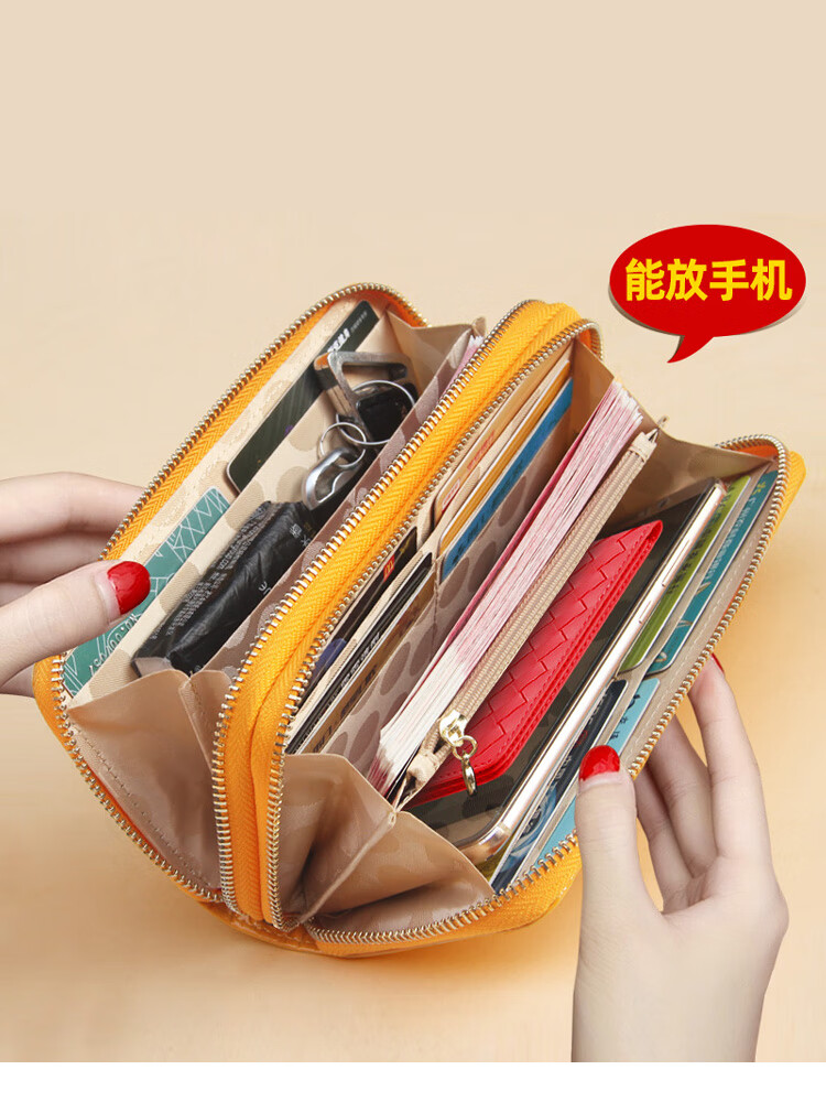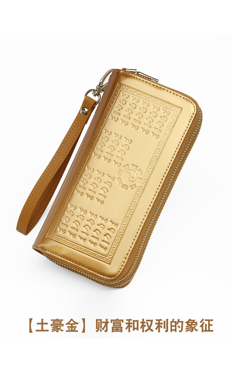 SHARELOVE gold wallet for women, yellow long mobile phone bag, card holder, all-in-one men's new transfer transport, mother's fortune, double zipper bright leather, yellow character bag, front