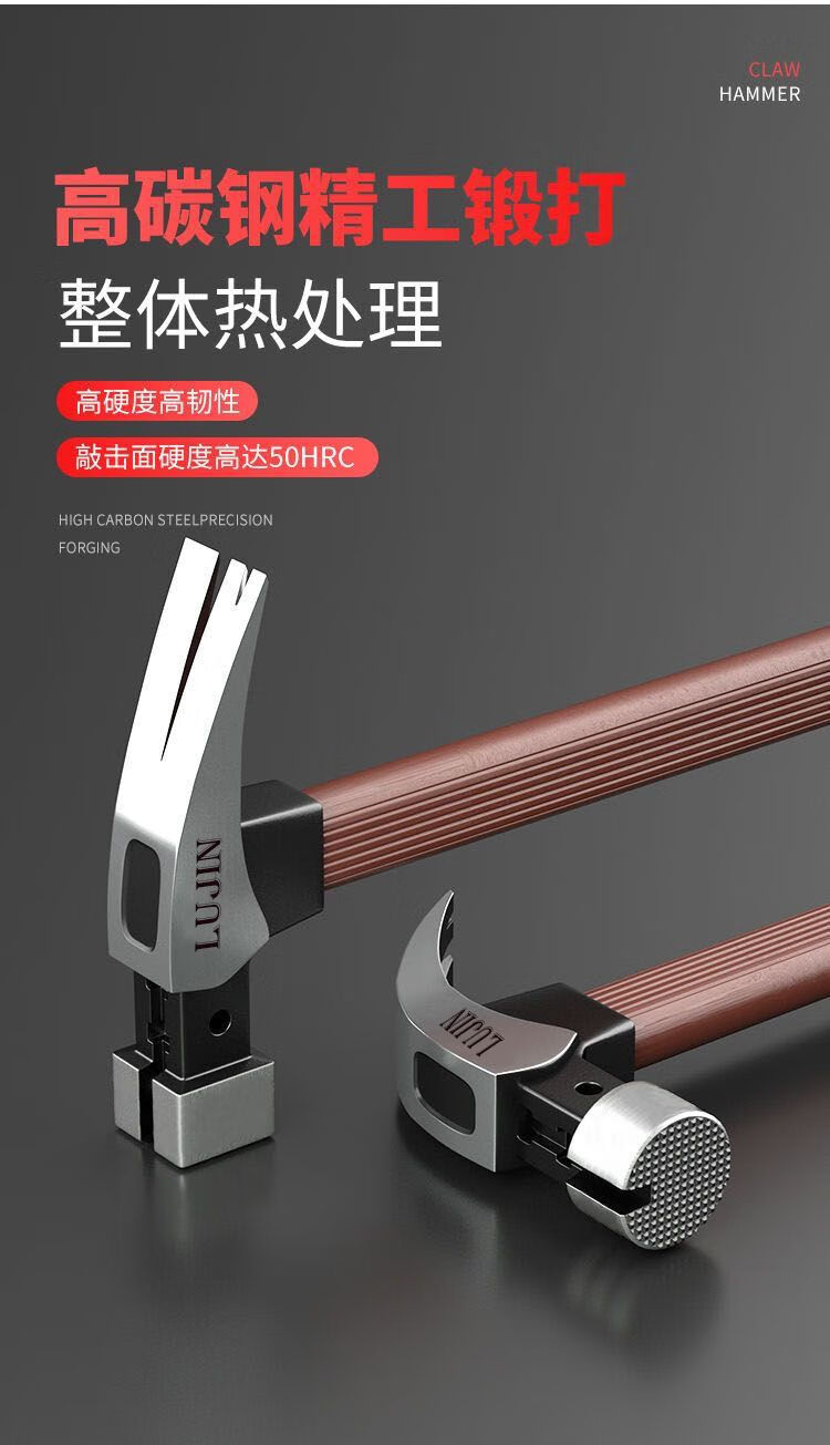 Vinoa magnetic edge claw hammer anti-slip suction nail right angle woodworking site special hammer hammer hand hammer iron hammer nail hammer round head magnetic suction high voltage bakelite handle