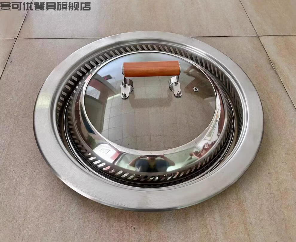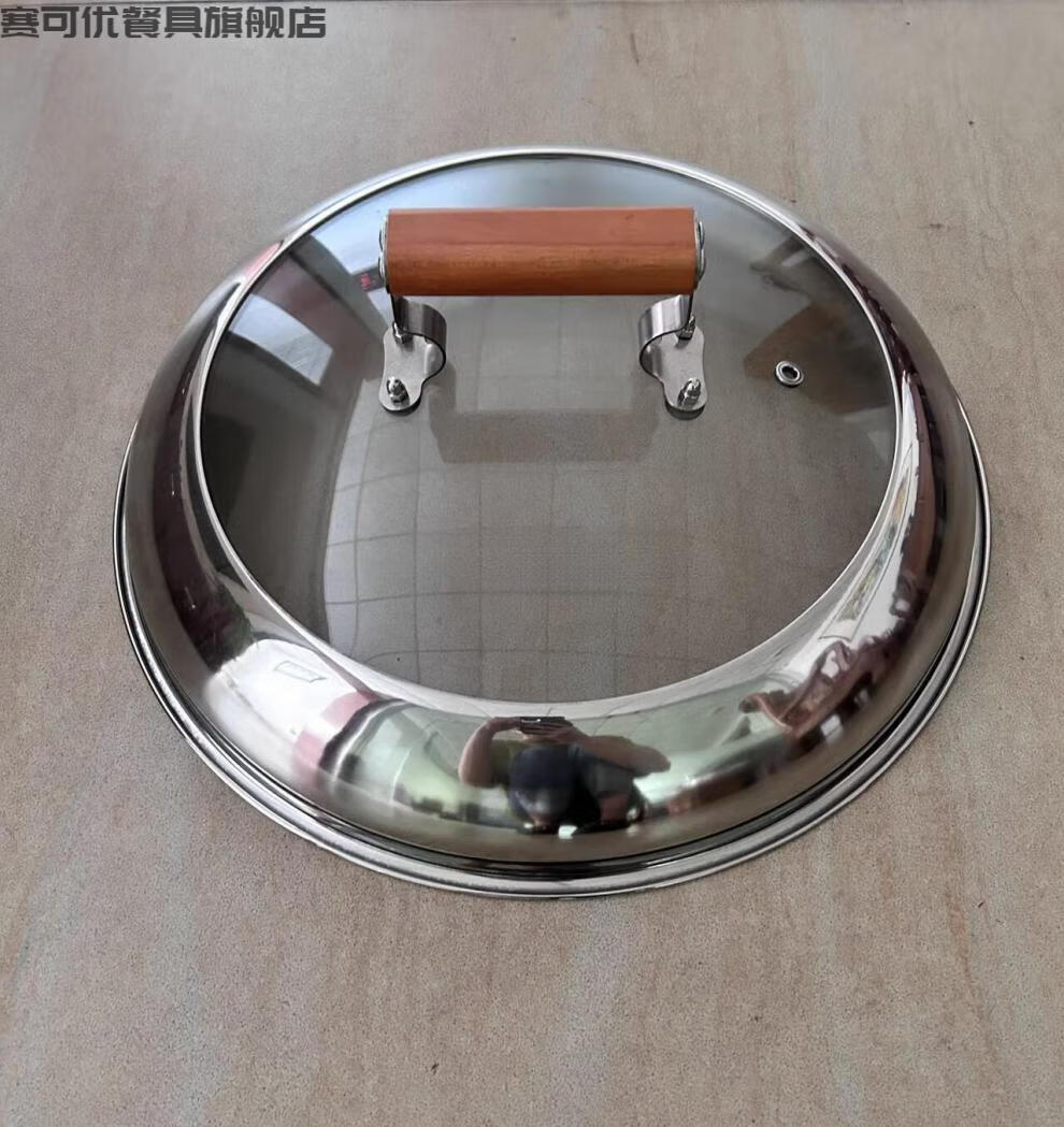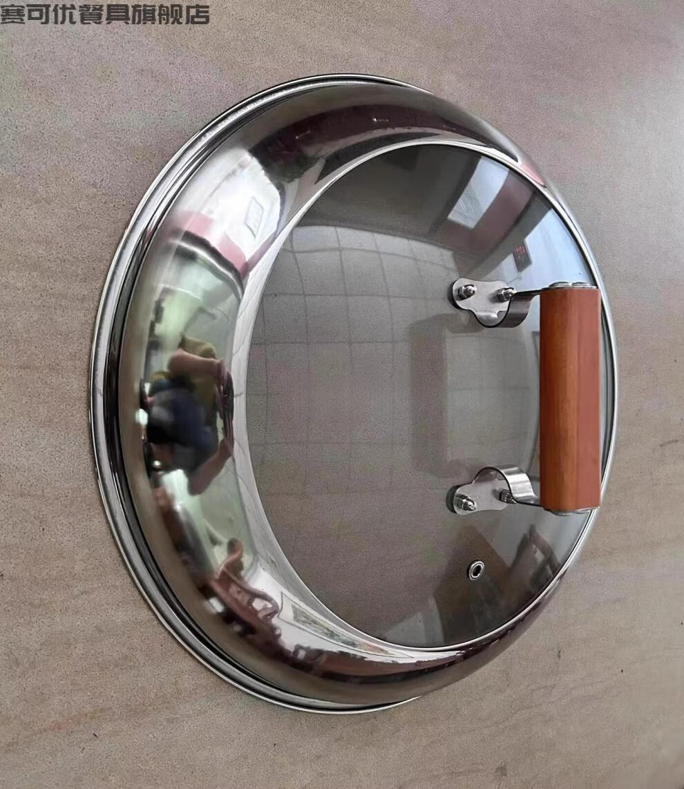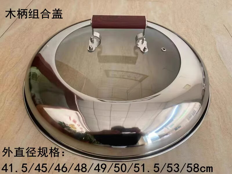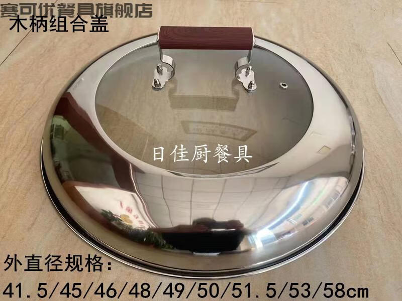 Saikoyou commercial large pot lid stainless steel stovetop pot lid large pot lid visible pot lid steam pot lid floor pot lid iron pot stew pot wooden handle combination lid 53cm