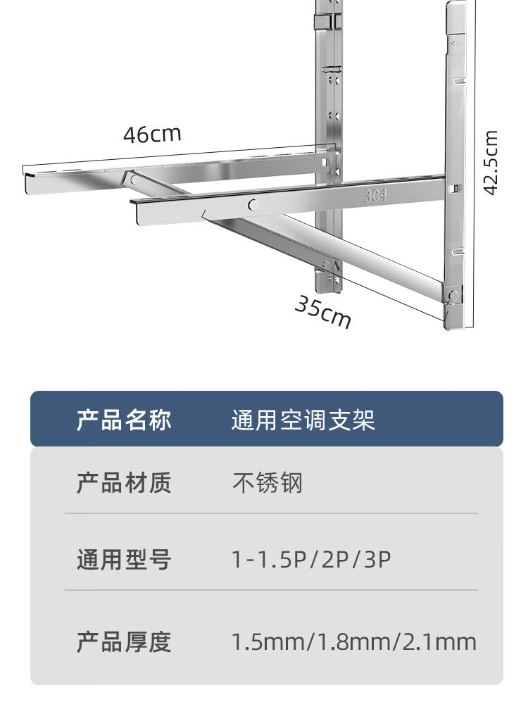 Stainless steel air conditioner outdoor unit bracket universal 1p/1.5hp/2p/3p thickened hanger floor extension bracket 1-1.5P extended 46*46 stainless steel 1.6 thick