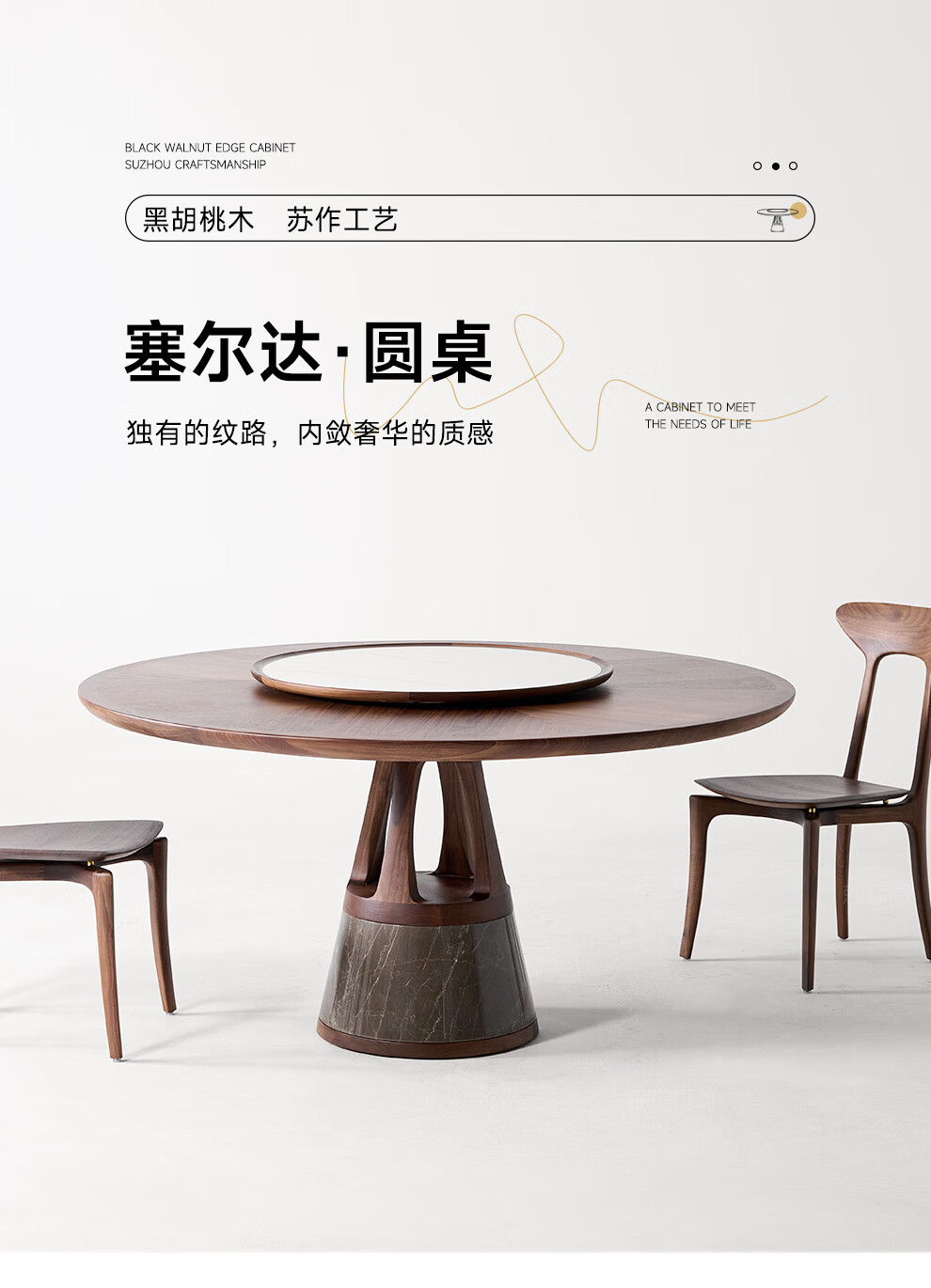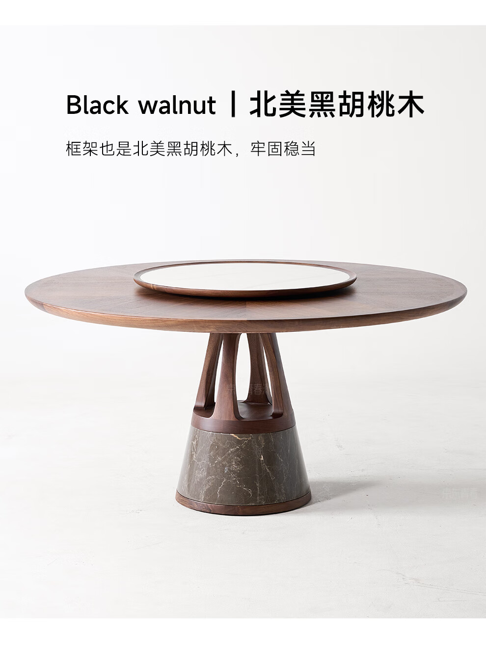 Youthful and trendy North American black walnut solid wood dining table Villa parquet round table Home round light luxury dining table 158*158*77cm single table