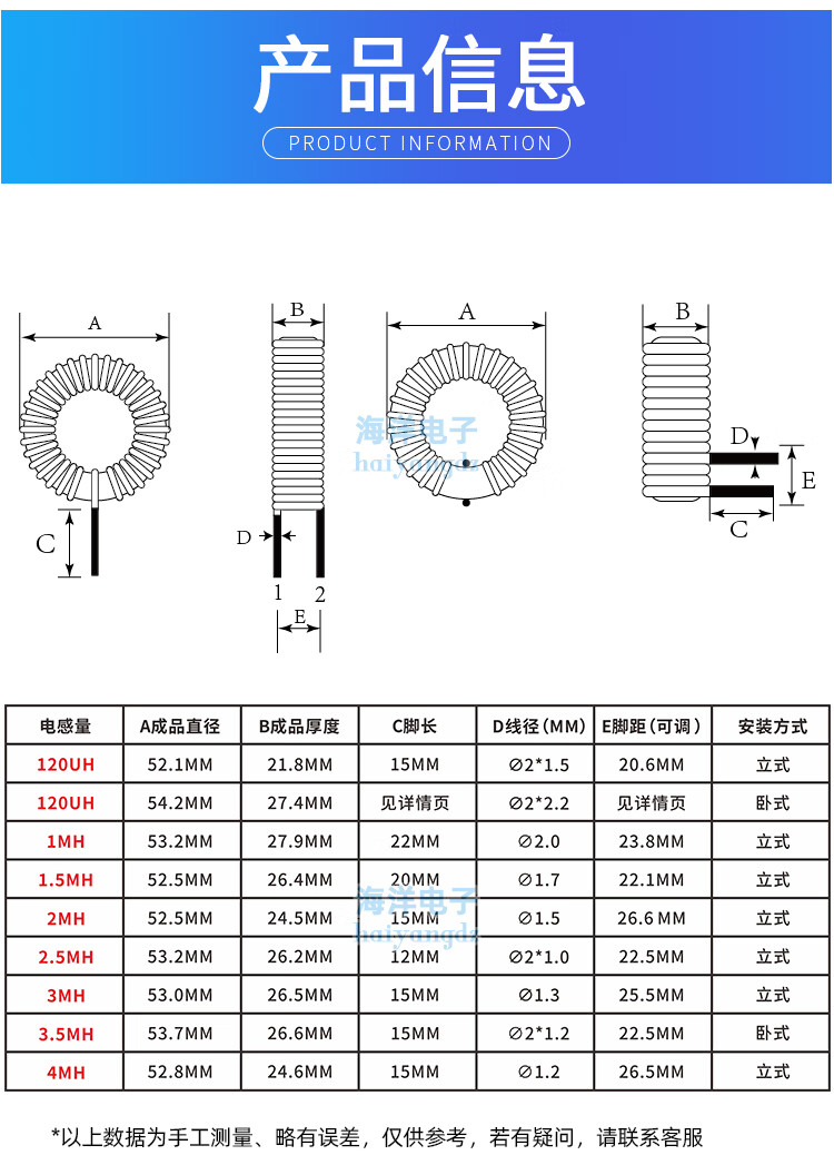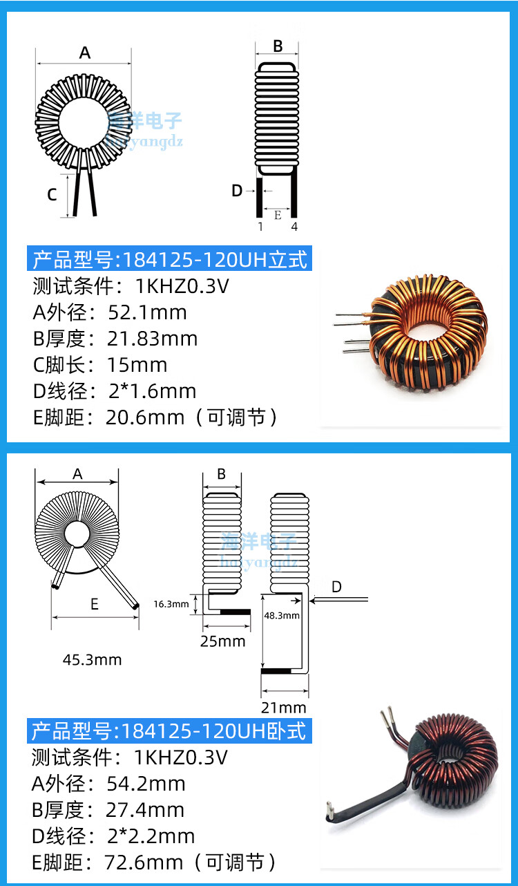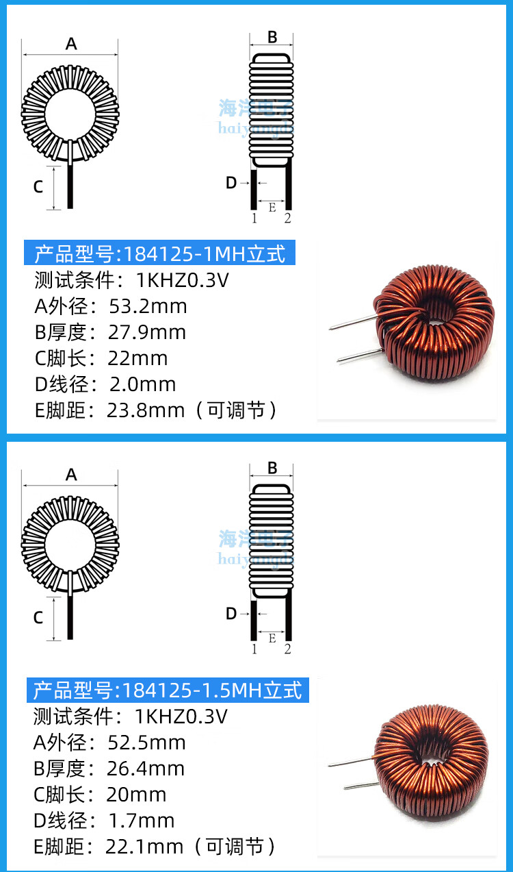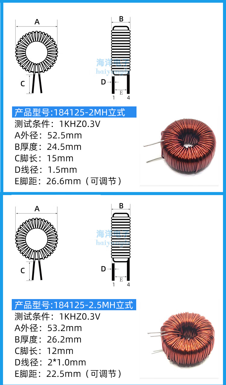 47MM iron silicon aluminum magnetic ring inductor KS184125 1MH 20A sine wave output AC filter 3.5MH dual 1.2 wire horizontal