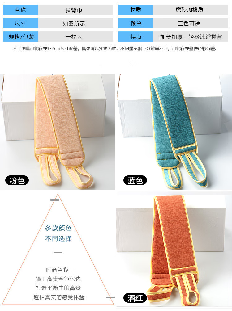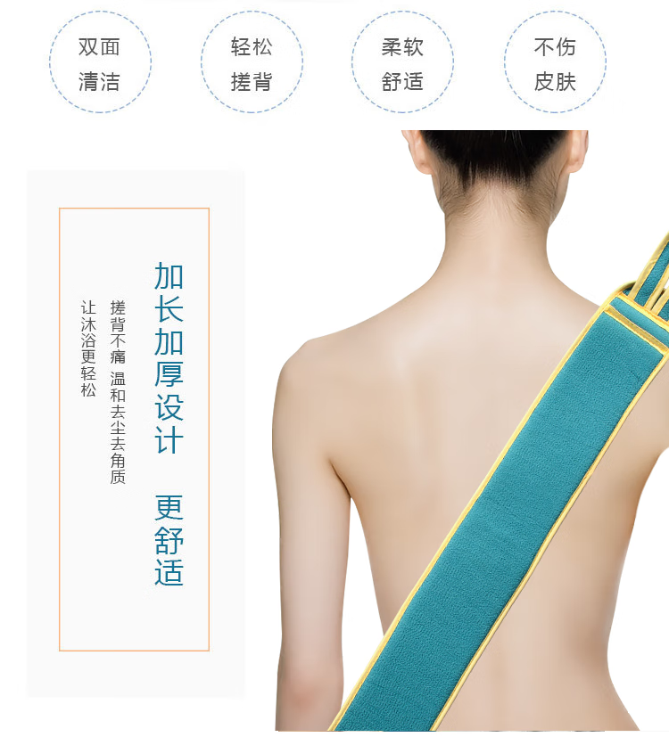 Double-sided strong back rub towel with pull back strip for men and women, back rub, decontamination and mud rub artifact, long back bath towel, extended and thickened back rub strip (blue)