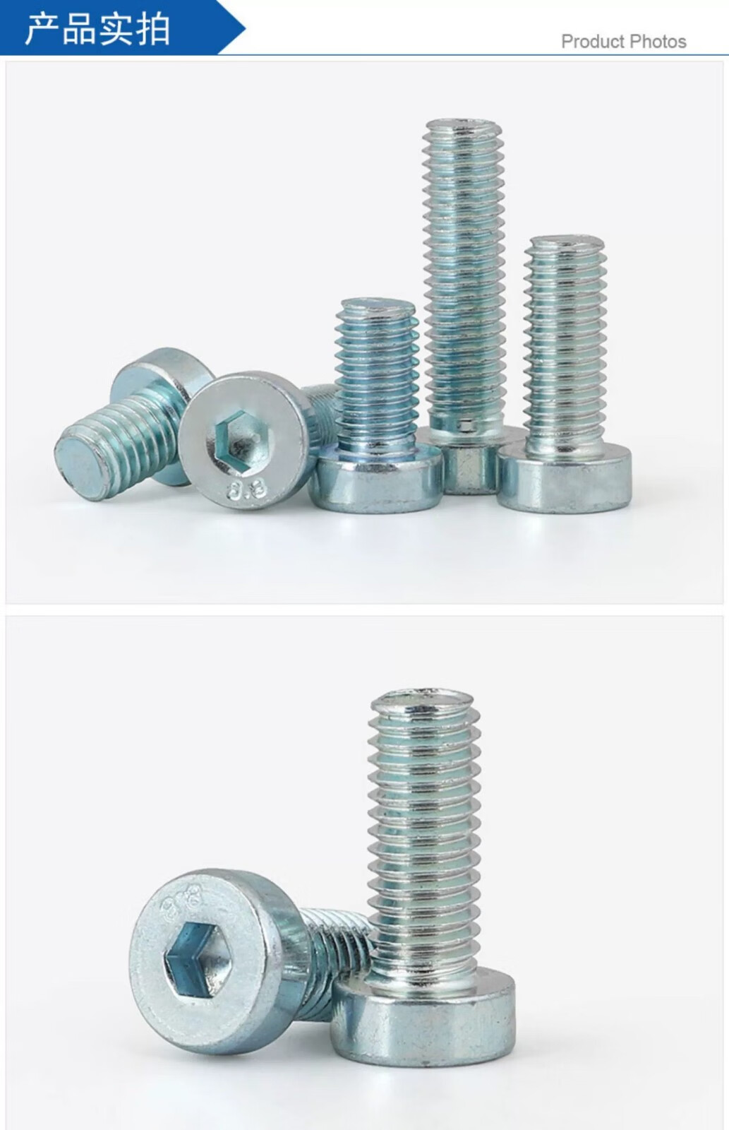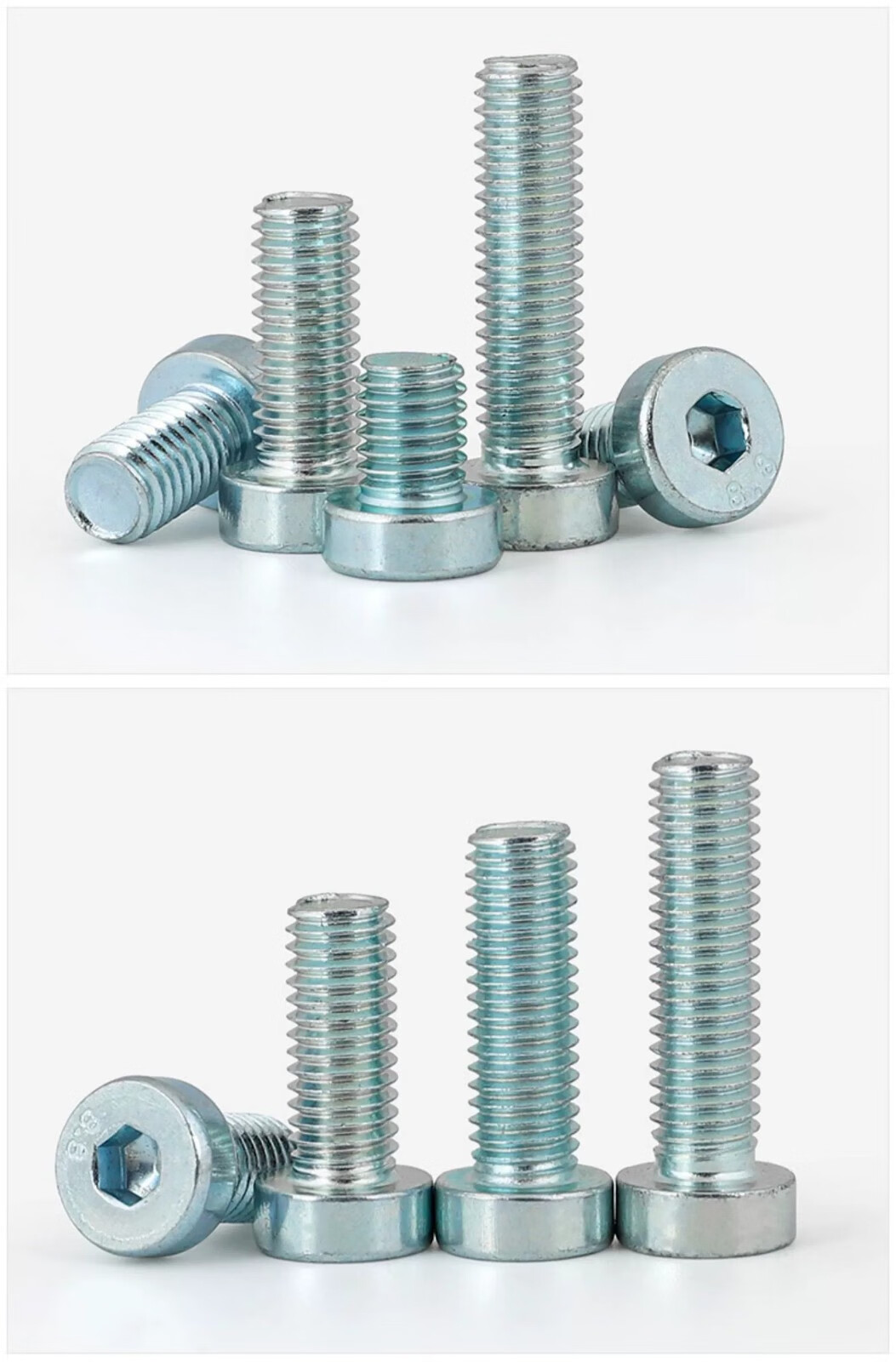 Bingneng 8.8 grade blue and white zinc trivalent short head hexagon socket screw cylindrical head thin head hexagon socket bolt screw DIN7984 M12*16 10 pieces