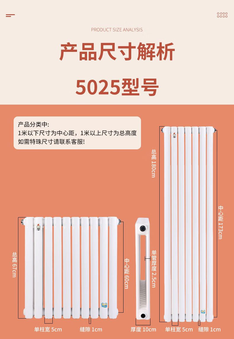Meikejie radiator household water heating radiator steel two-column central heating water circulation northern steel vertical radiator 2.0mm 5025 2nd generation upgraded corrosion-resistant king 67 cm high 30 columns 1 set