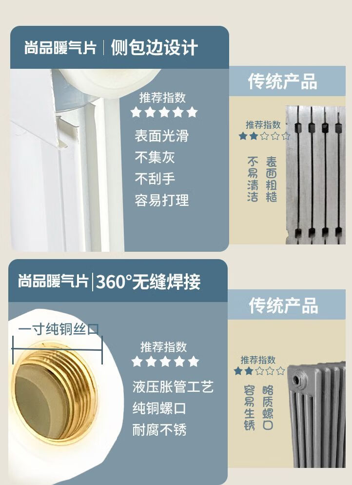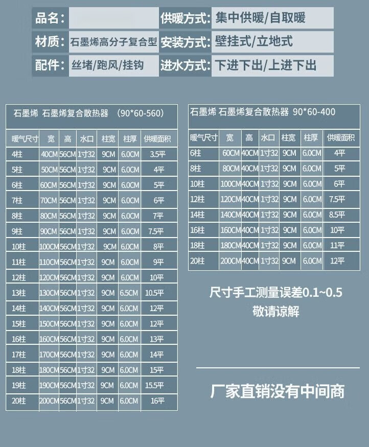 Meikejie Shangpin graphene large water channel radiator household central heating water heating radiator back basket thickened 560mm center distance 500 full height 12 columns length 1.21 meters