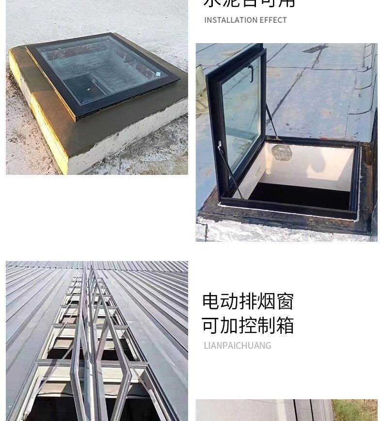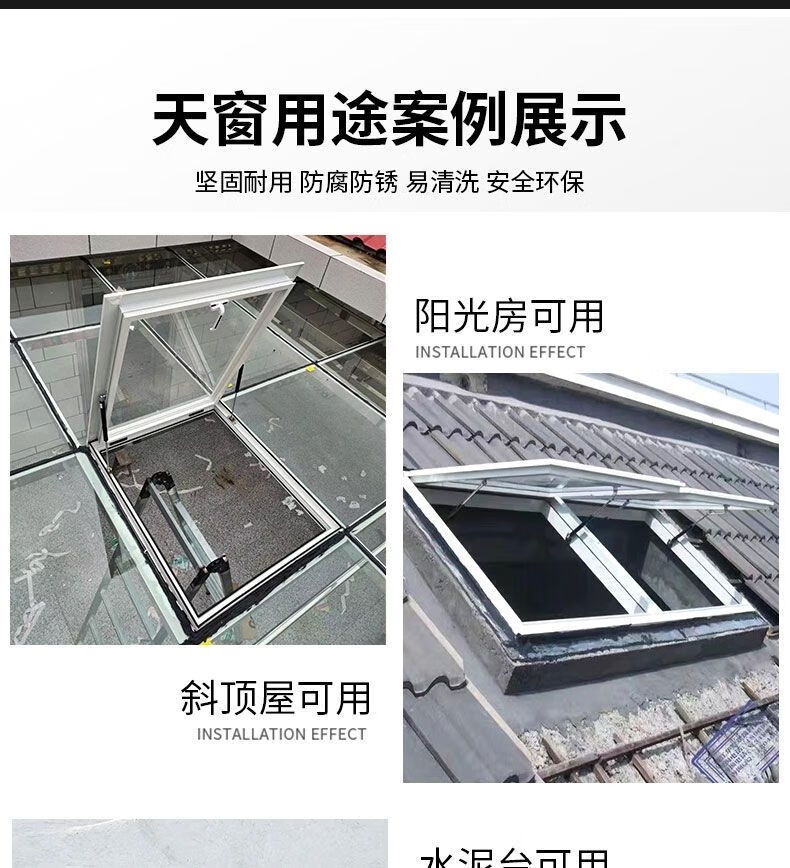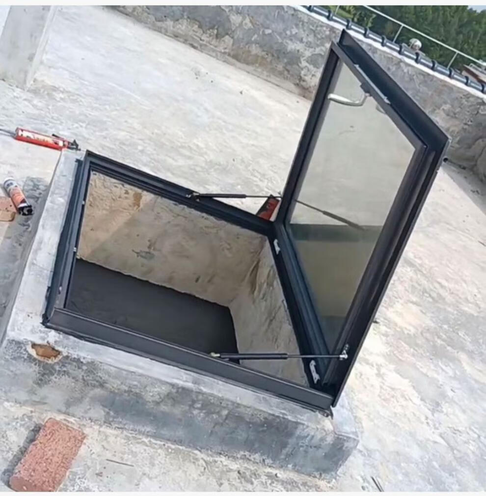 Meikejie thickened aluminum alloy electric skylight roof manual shading basement cement table sunroom pitched roof customization thickened large opening 940*940 with glass gray