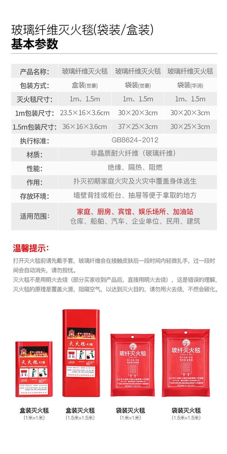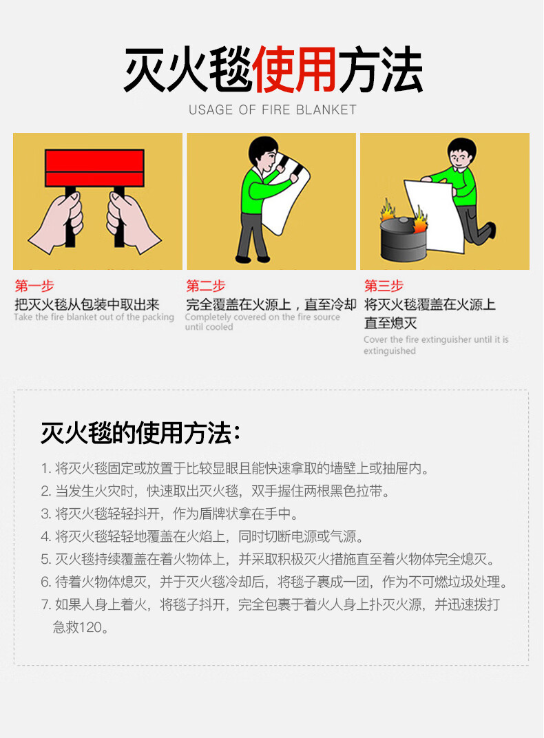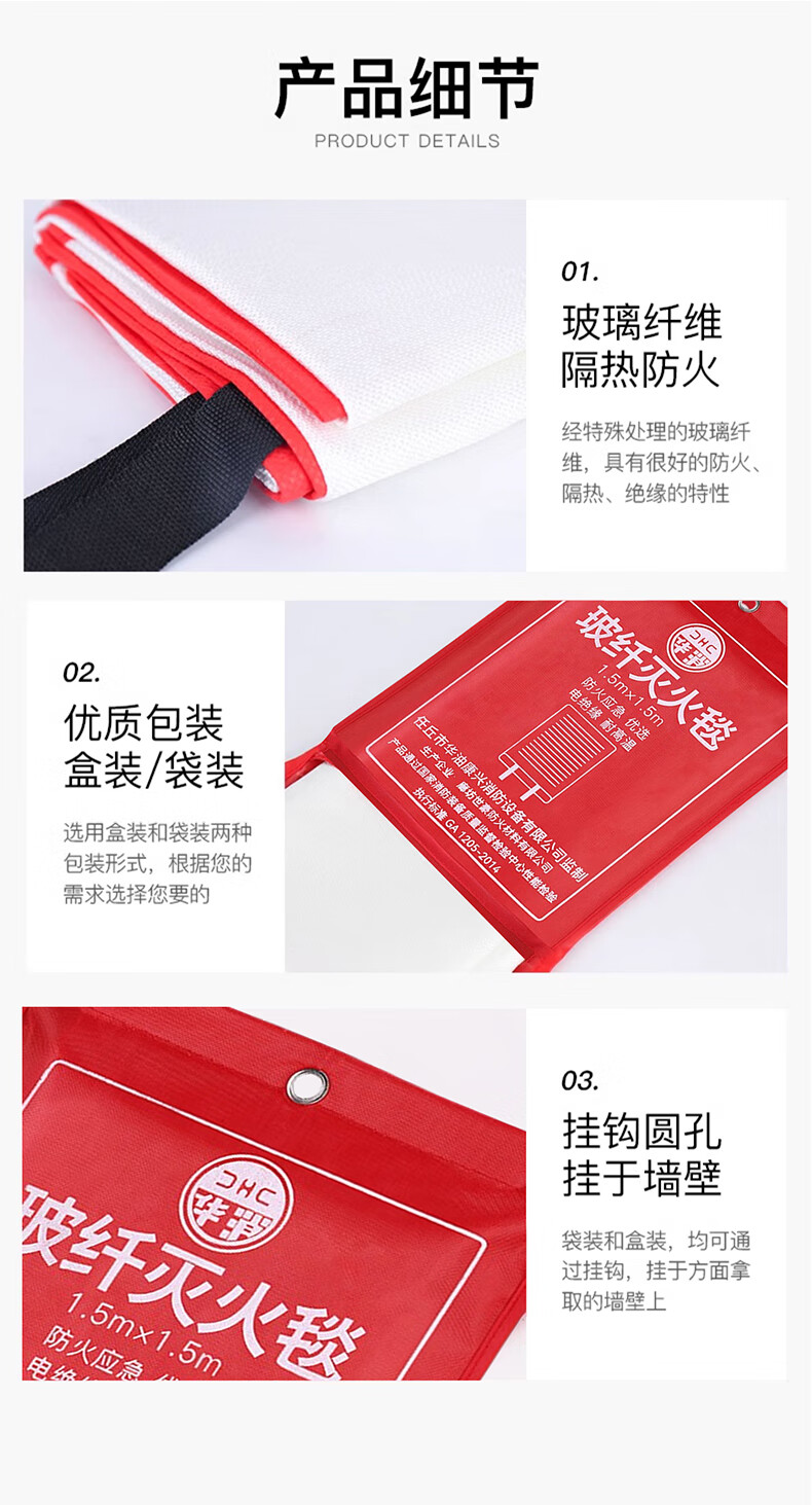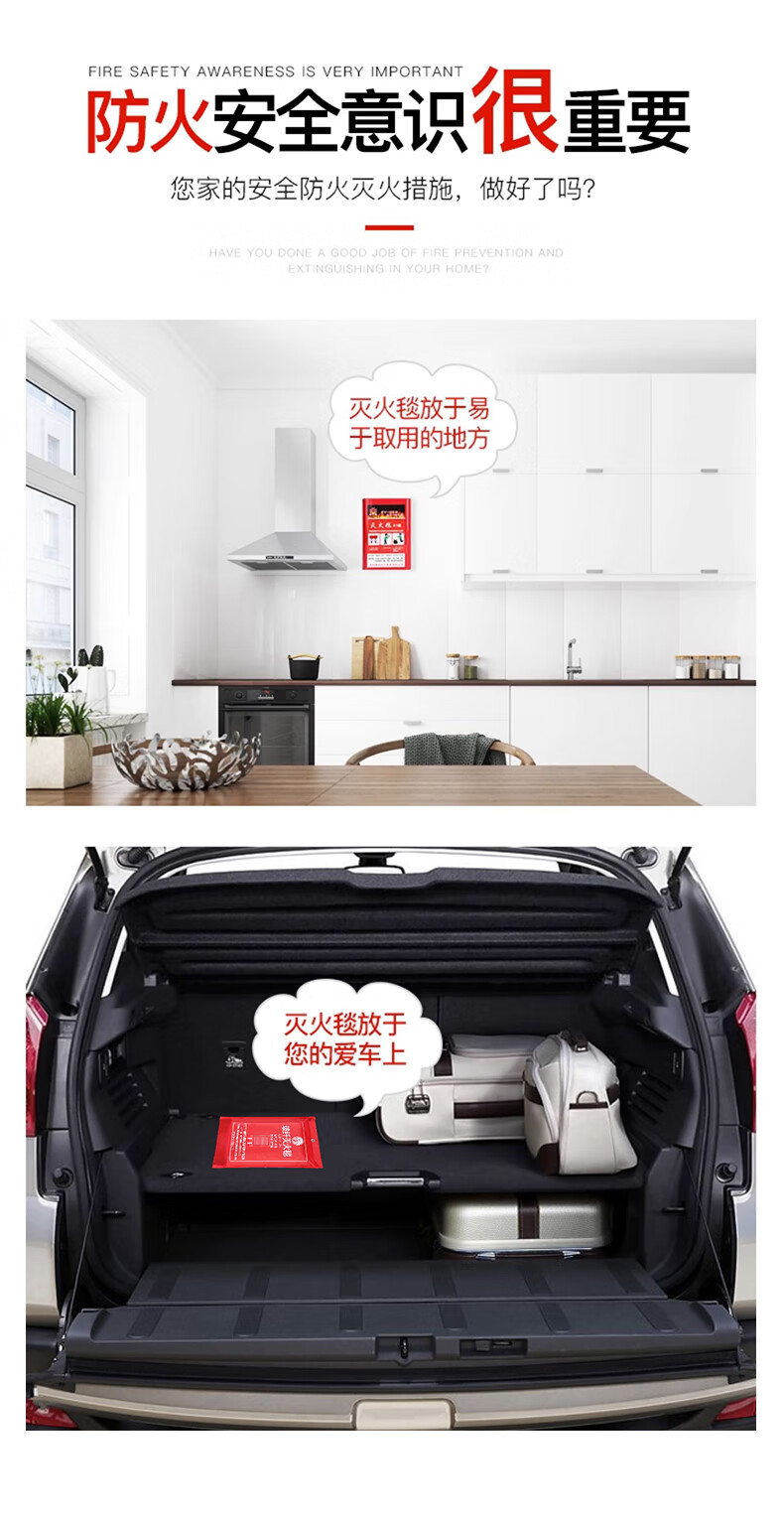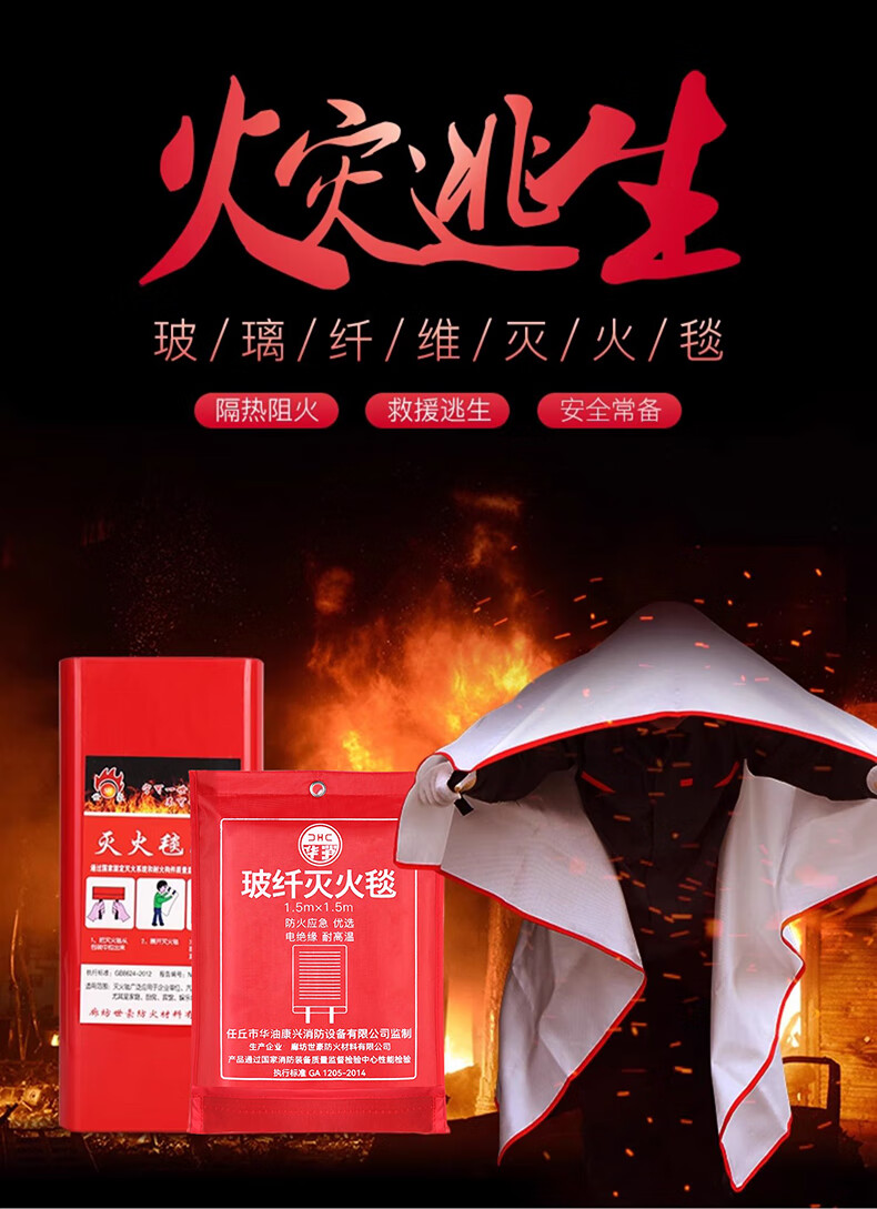 Fire blanket, household fire certified kitchen, new national standard equipment, fire blanket, school mall, hotel escape fire blanket, thickened and upgraded 1.5m fiberglass fire blanket++ glove hook A