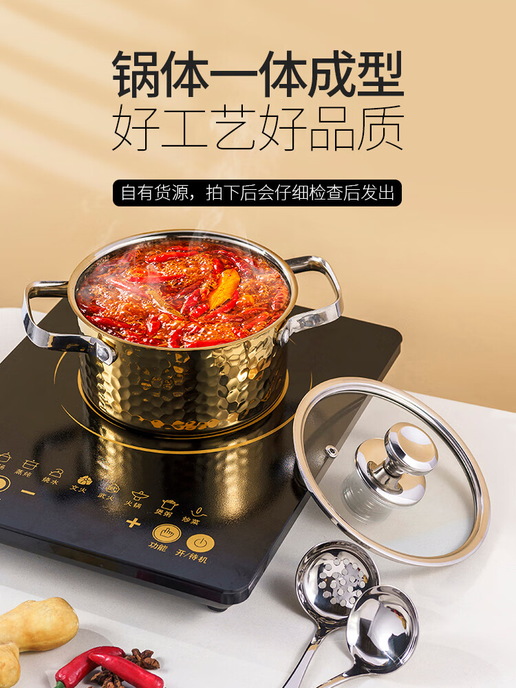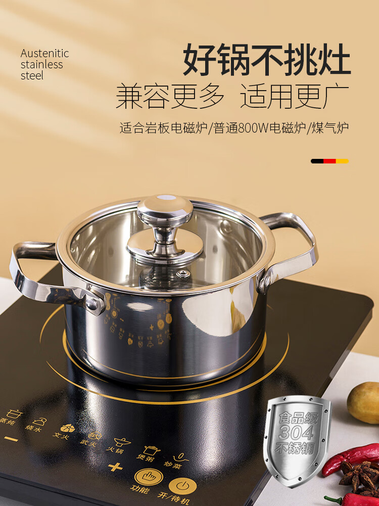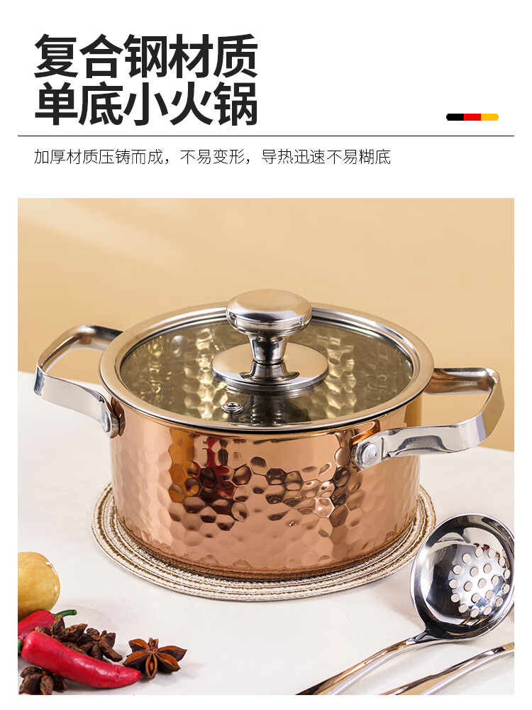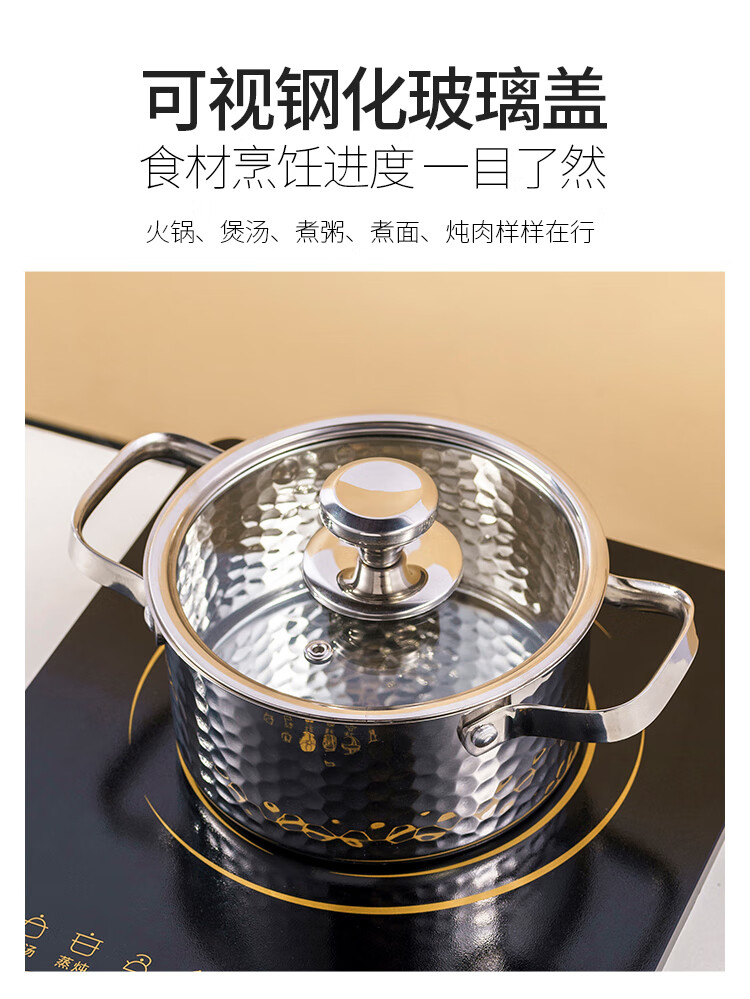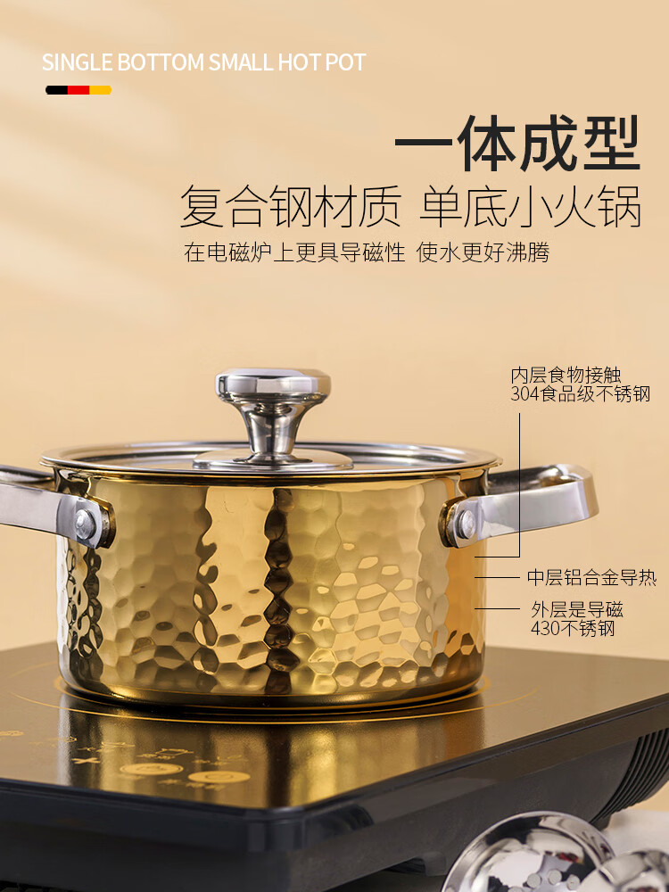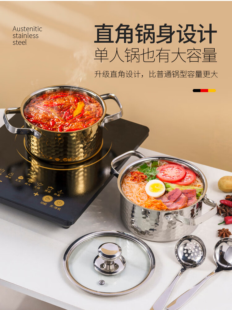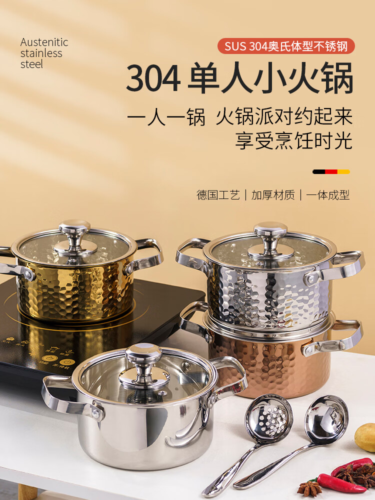 Cai Ruyi 304 stainless steel single small hot pot pot for one person, one pot shabu shabu buffet hot pot, silver light body with lid 16cm