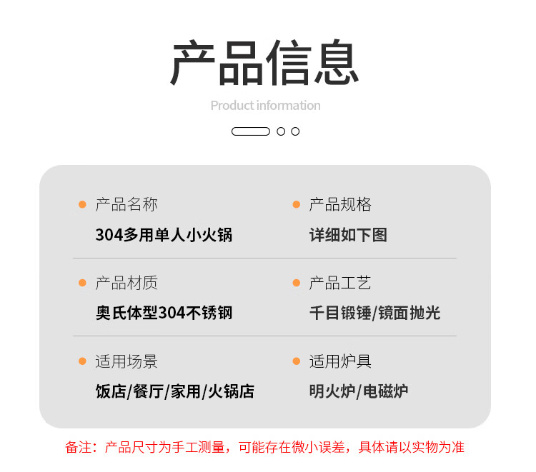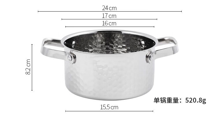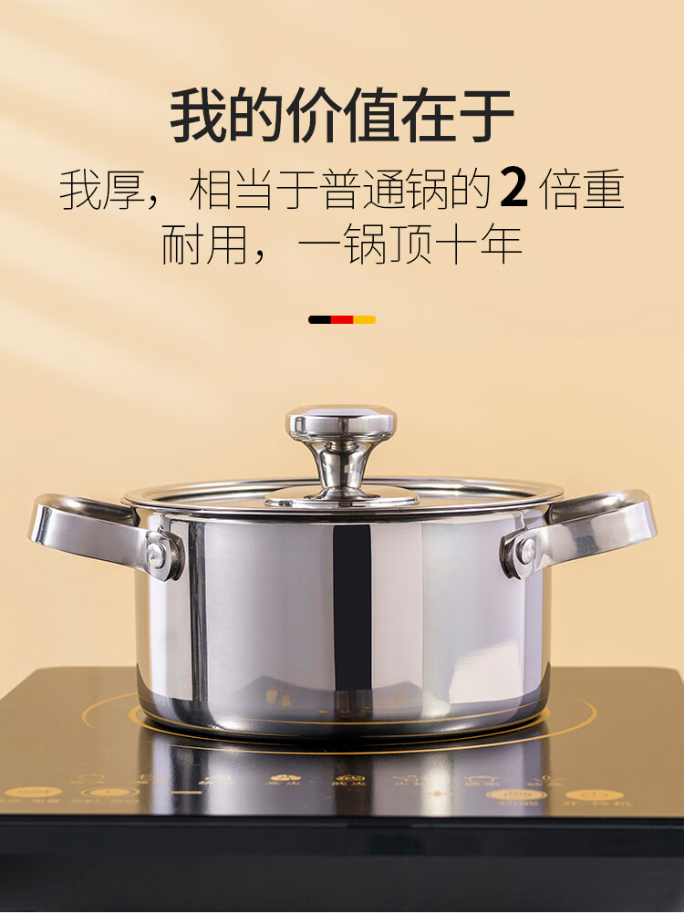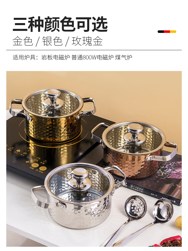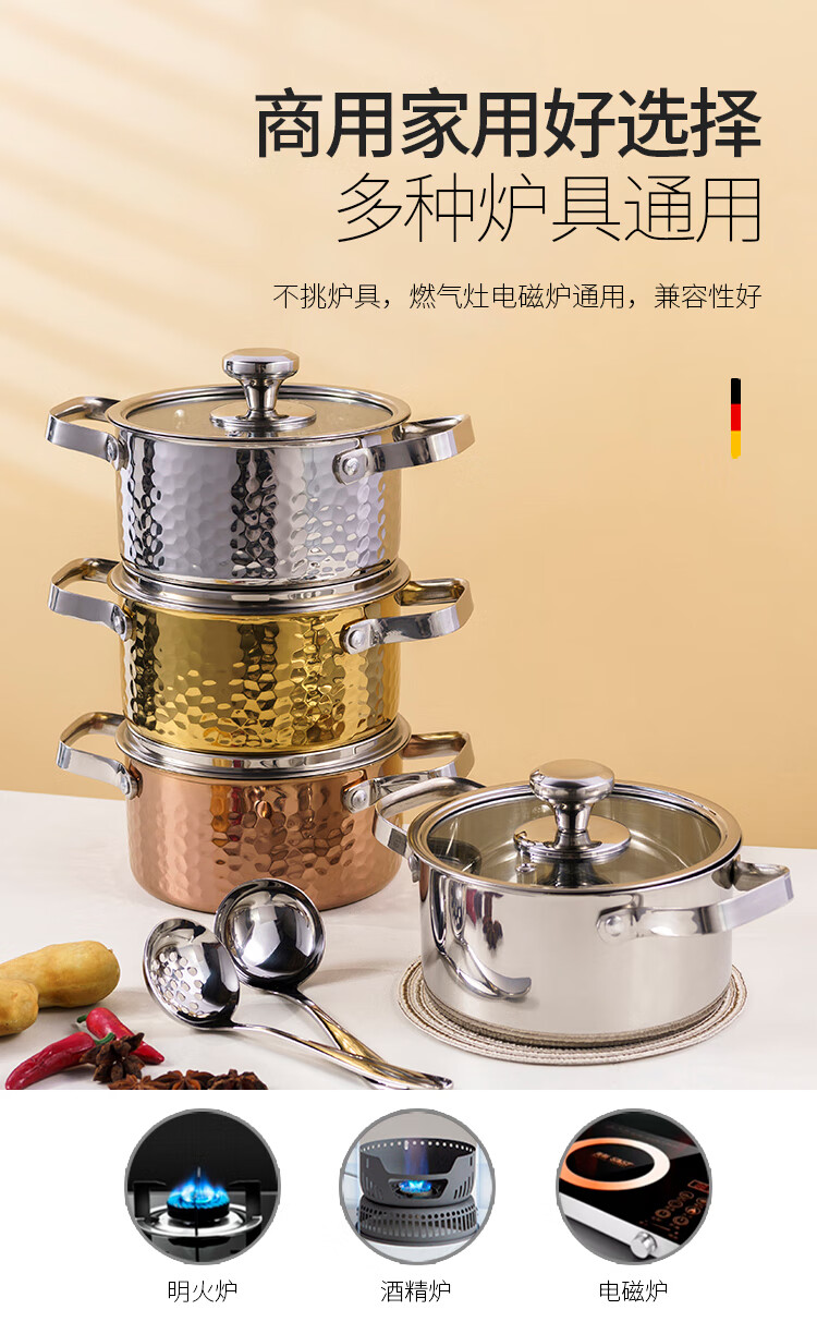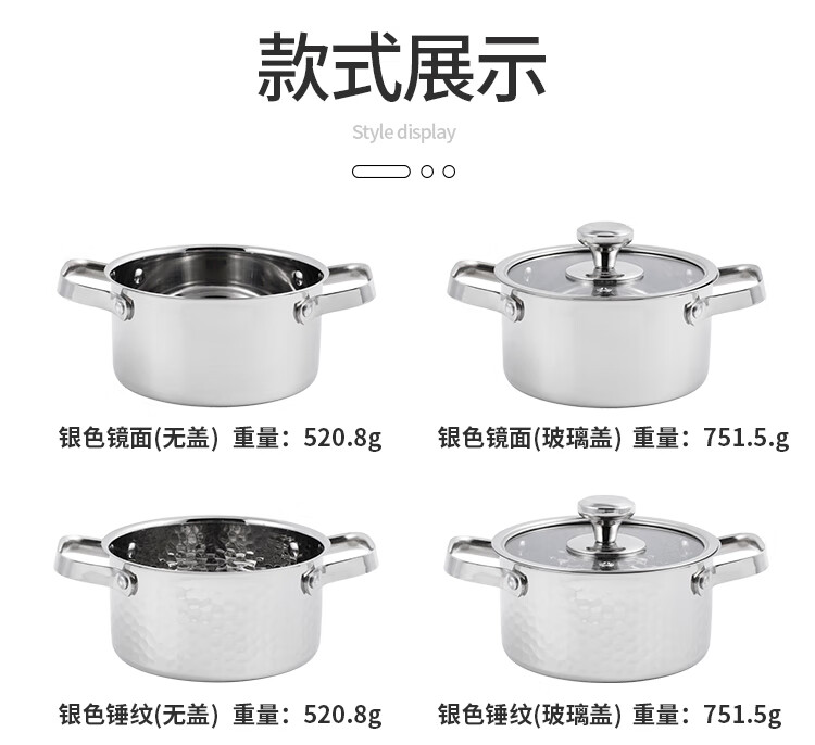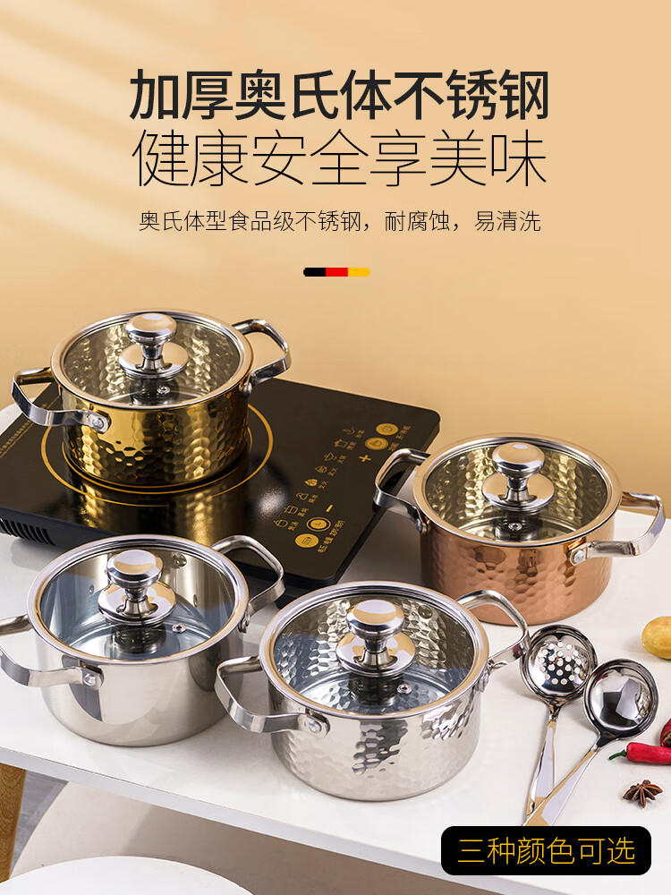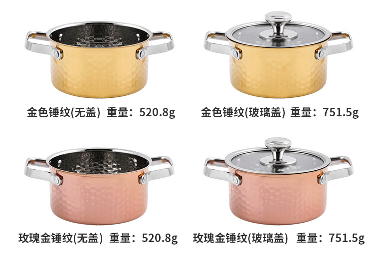 Cai Ruyi 304 stainless steel single small hot pot pot for one person, one pot shabu shabu buffet hot pot, silver light body with lid 16cm