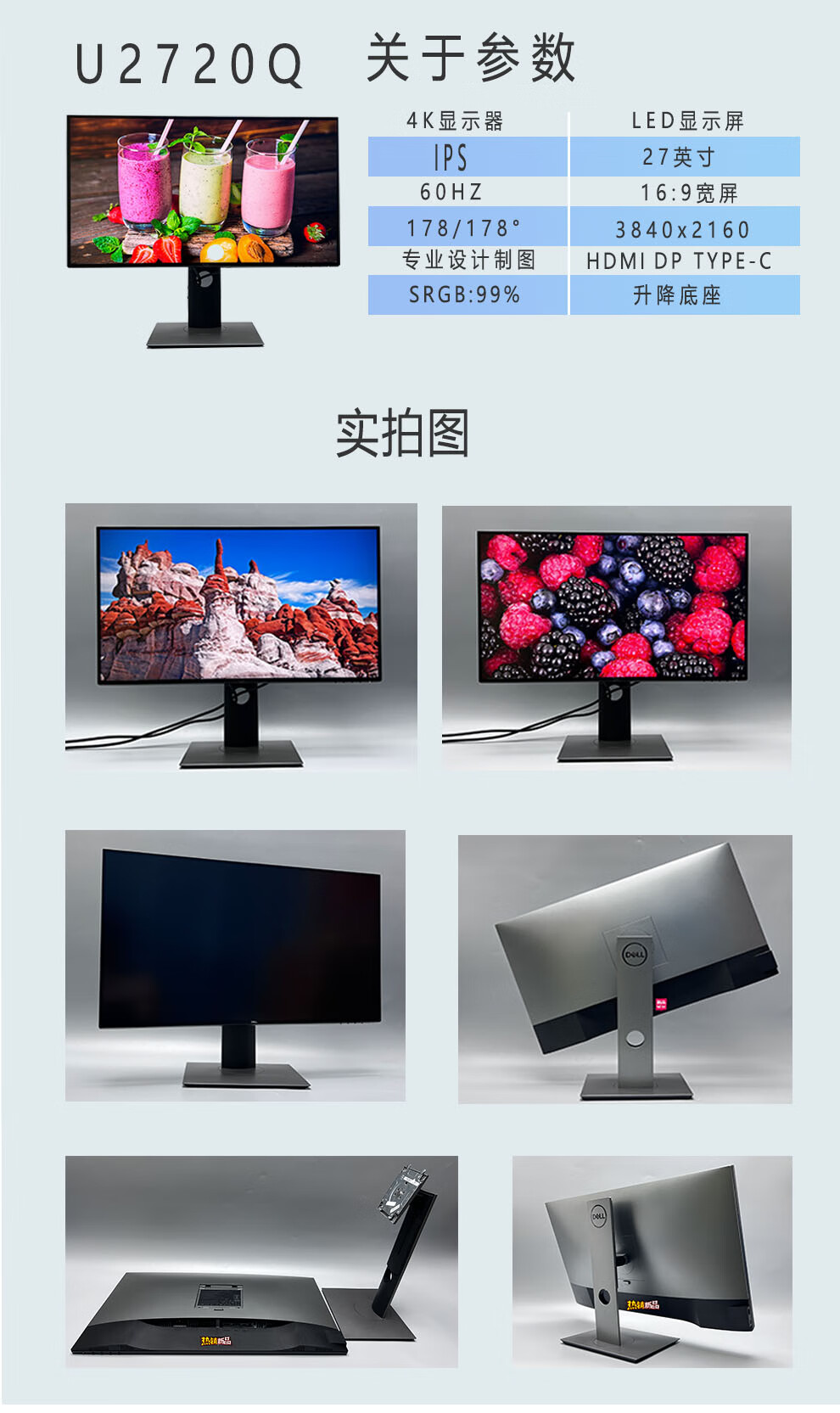 Dell/Dell u2720qm27-inch 32-inch 34-inch 42-inch 2K 4k high-definition design drawing rotating computer LCD monitor with fish screen 90% new U2723QX store warranty three months 27-inch 4K