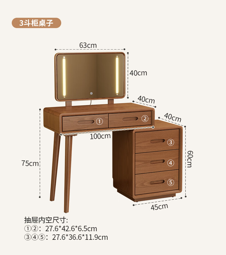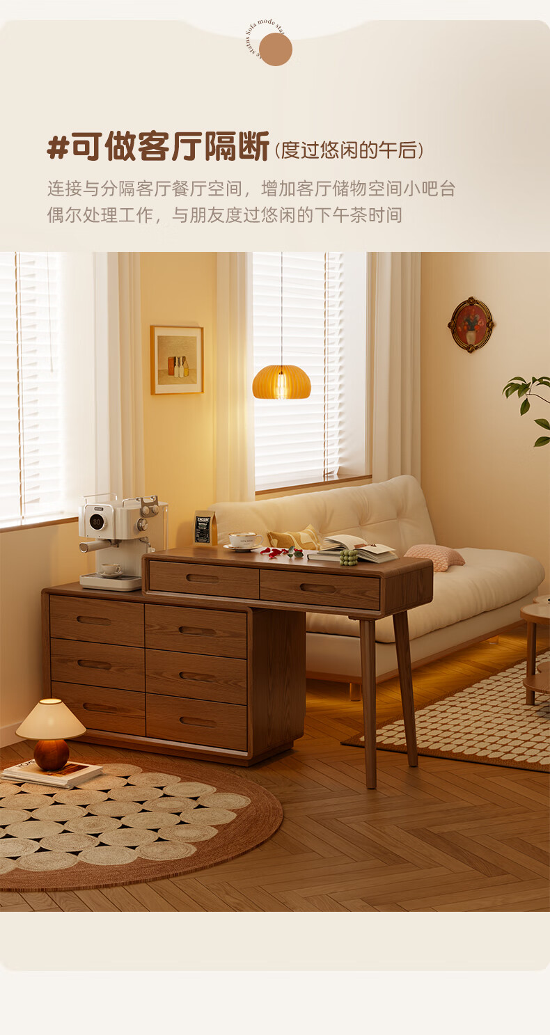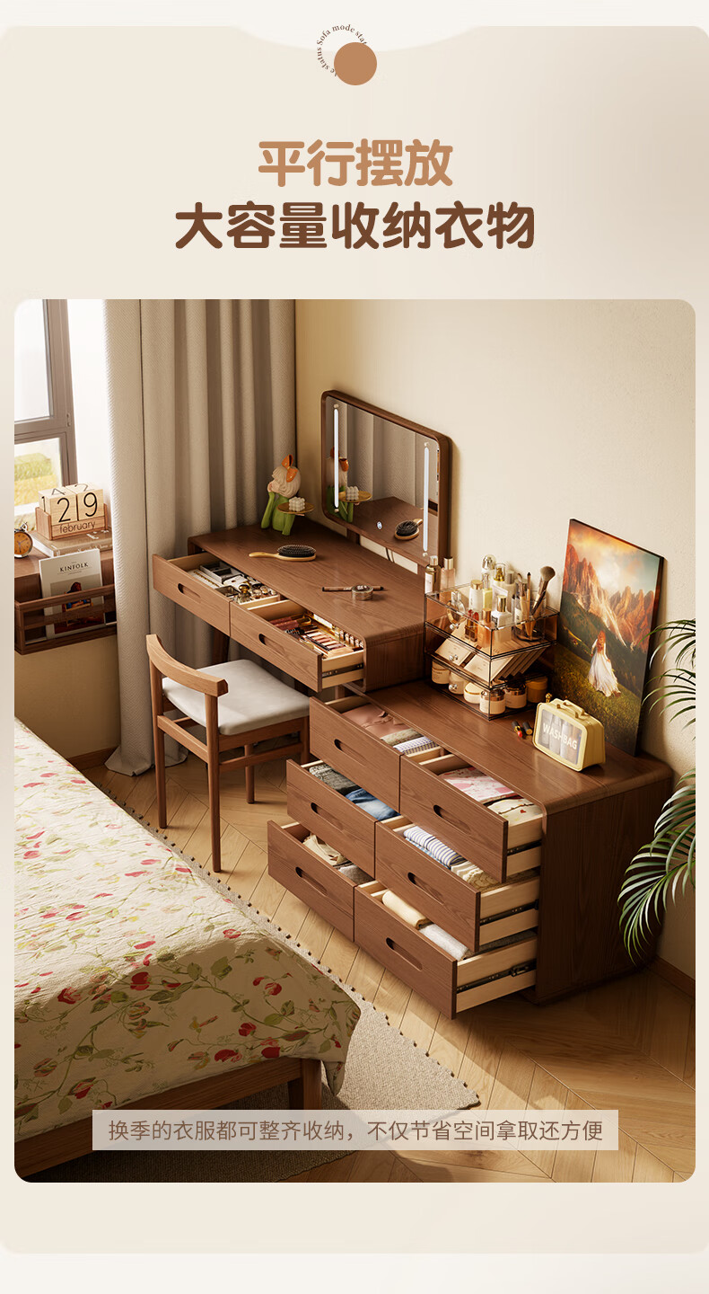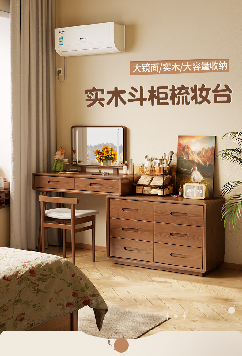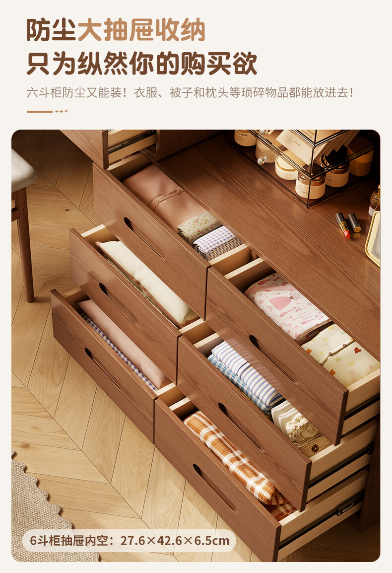Winter wood solid wood dresser and cupboard integrated bedroom simple modern master bedroom dresser desk bedside table bedside vanity table 6 cupboard table-walnut color